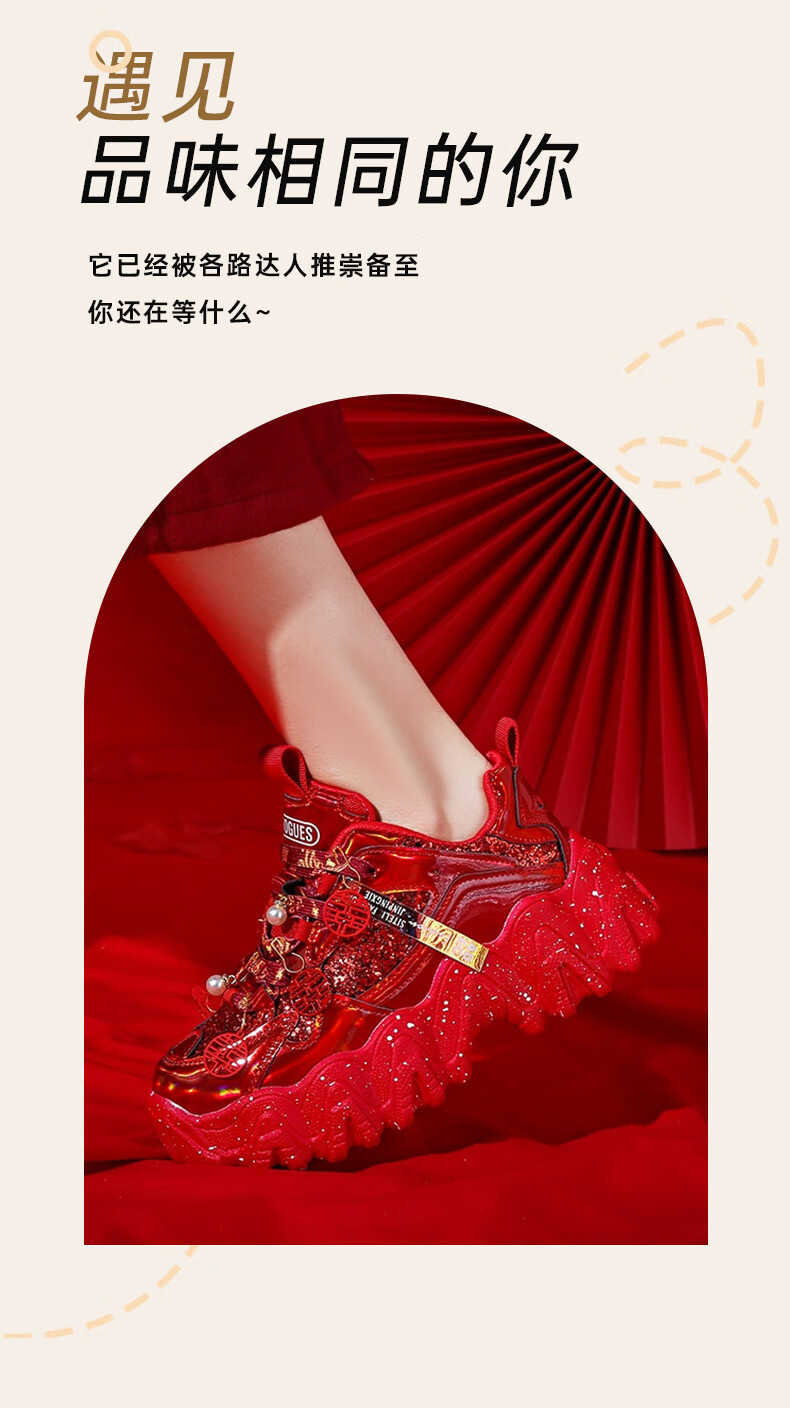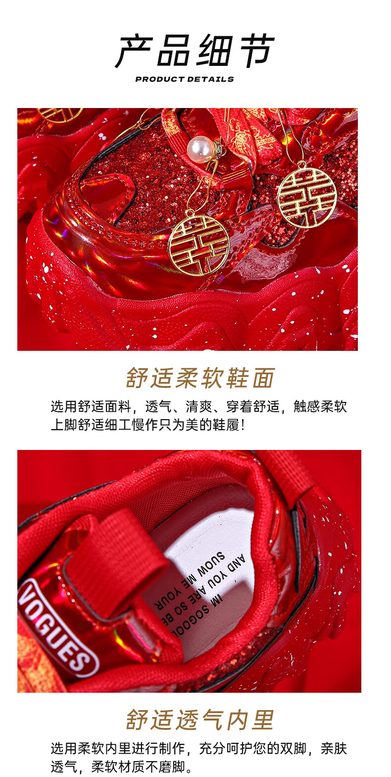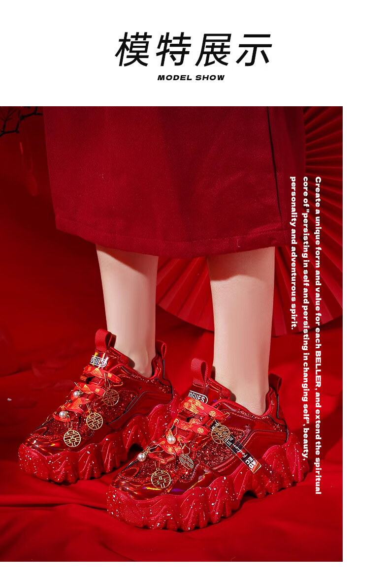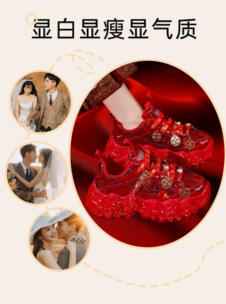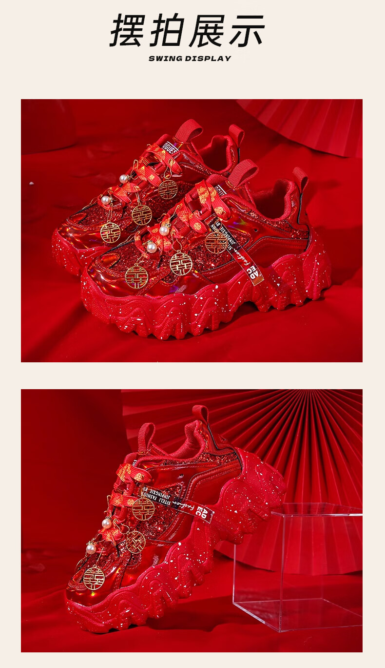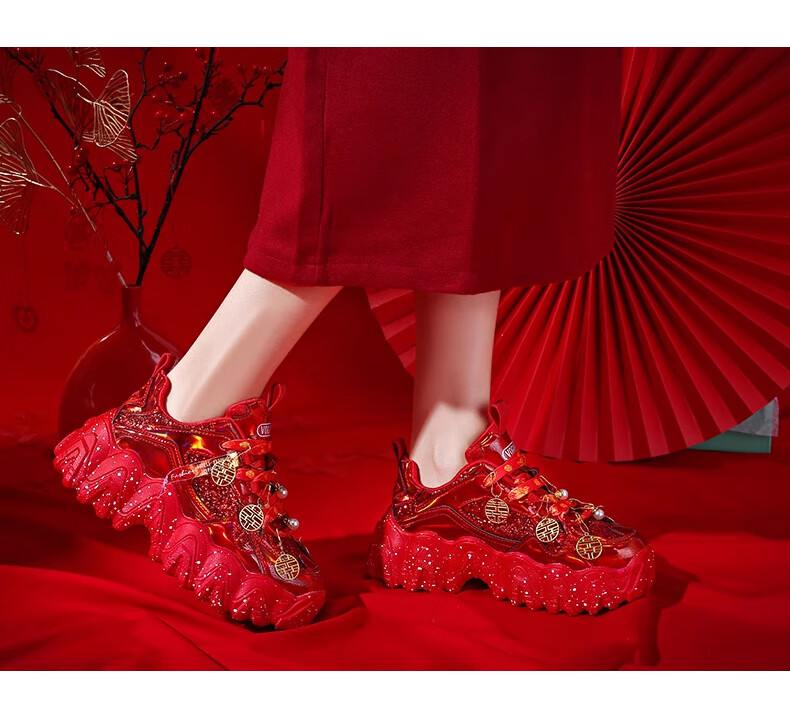 百丽香奈(BAILIXIANGNAI)婚鞋女运动鞋中式红色新娘鞋结婚不累脚平底禾秀婚纱两穿平时可穿 中国红【跟高5.5厘米】 38