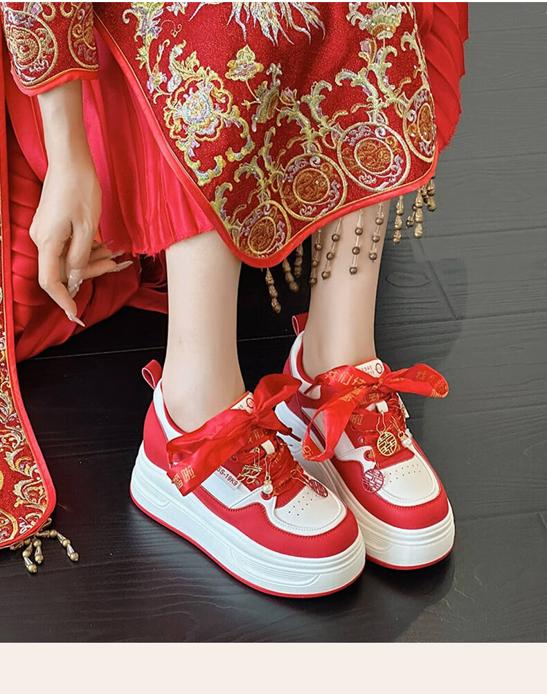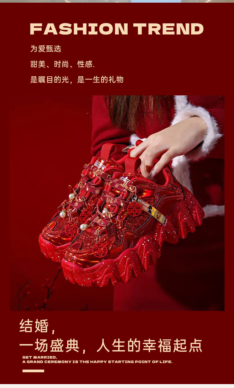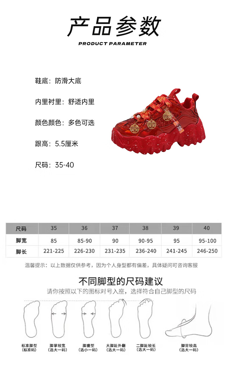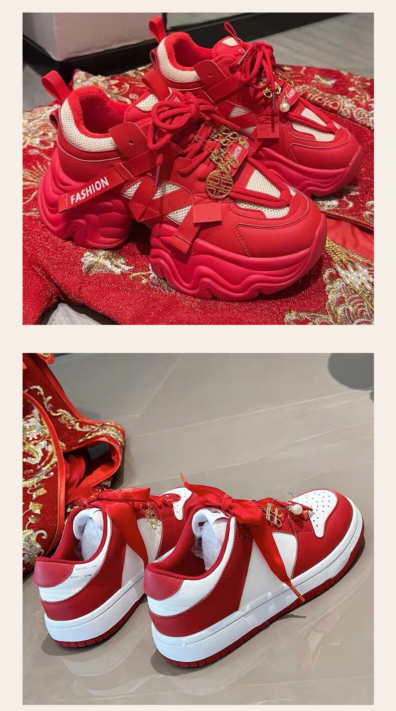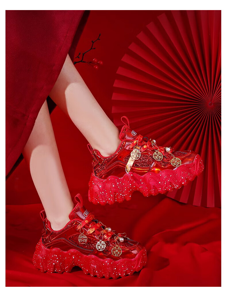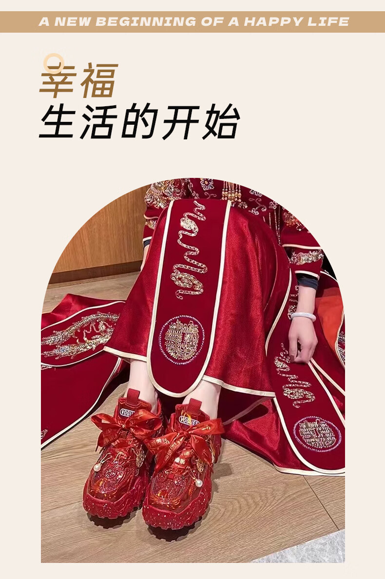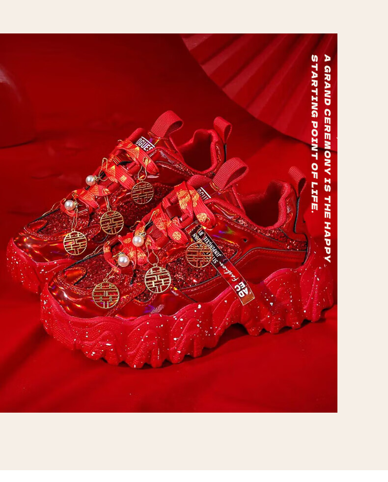 百丽香奈(BAILIXIANGNAI)婚鞋女运动鞋中式红色新娘鞋结婚不累脚平底禾秀婚纱两穿平时可穿 中国红【跟高5.5厘米】 38