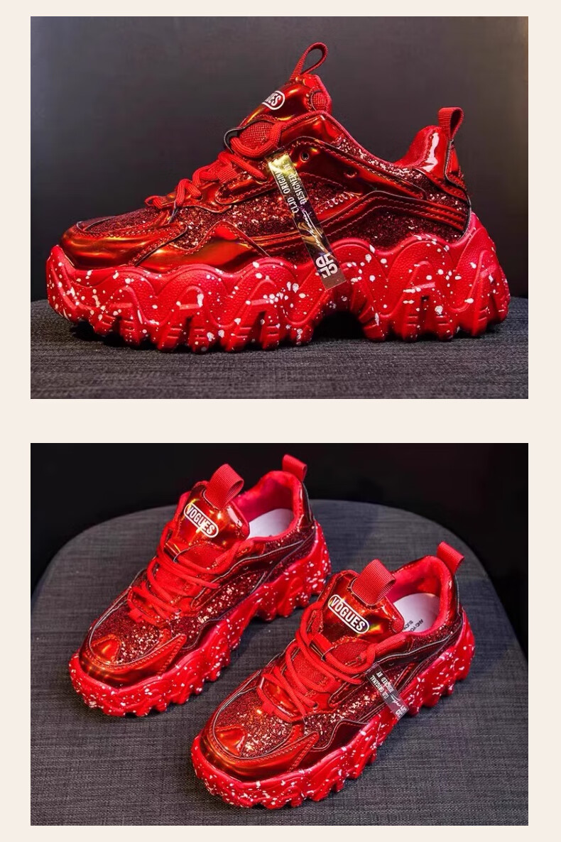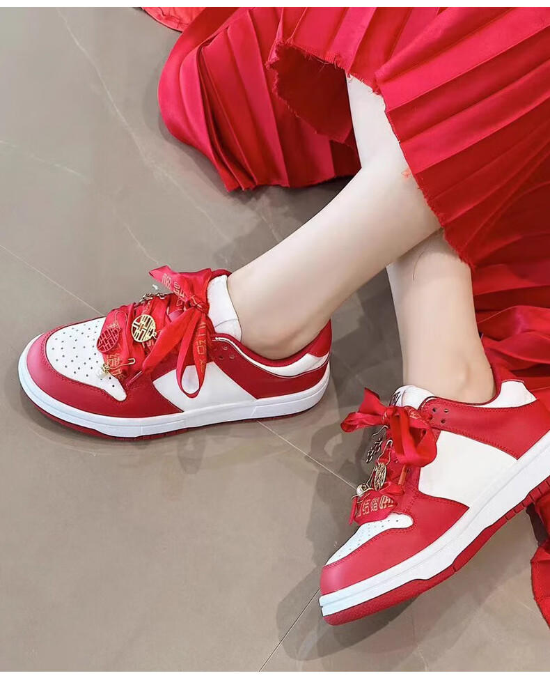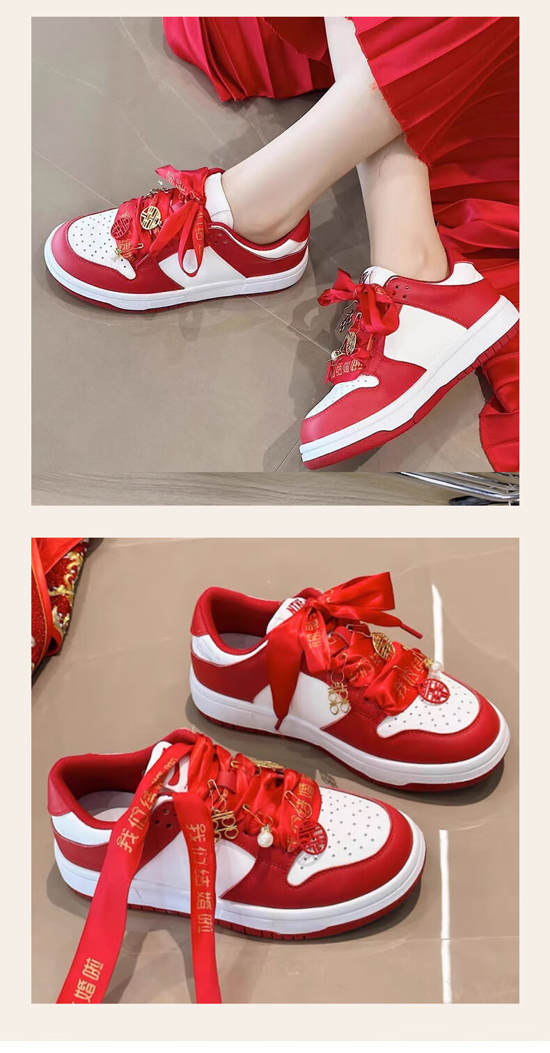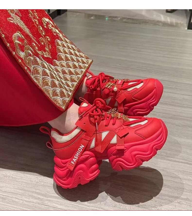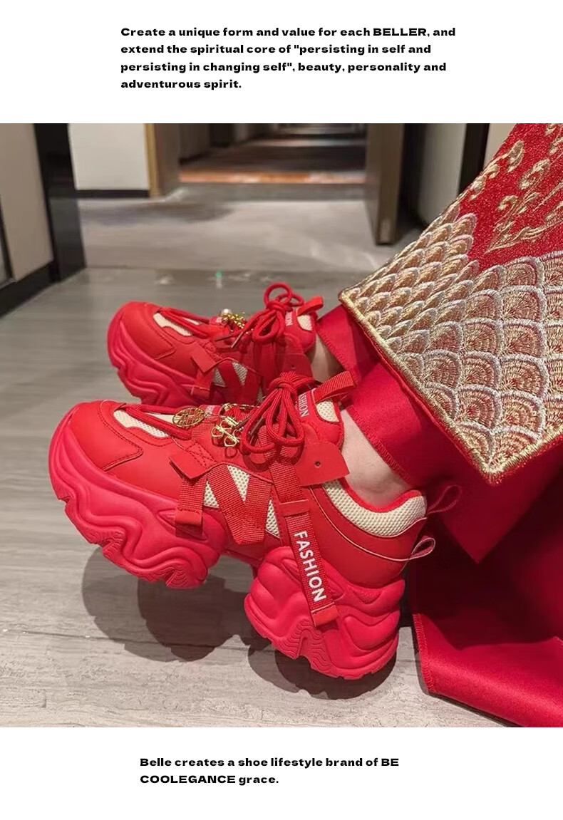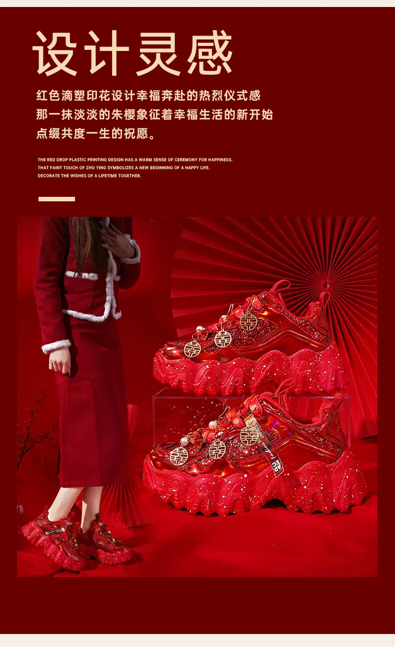 百丽香奈(BAILIXIANGNAI)婚鞋女运动鞋中式红色新娘鞋结婚不累脚平底禾秀婚纱两穿平时可穿 中国红【跟高5.5厘米】 38