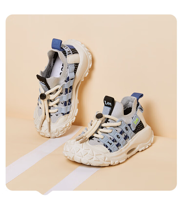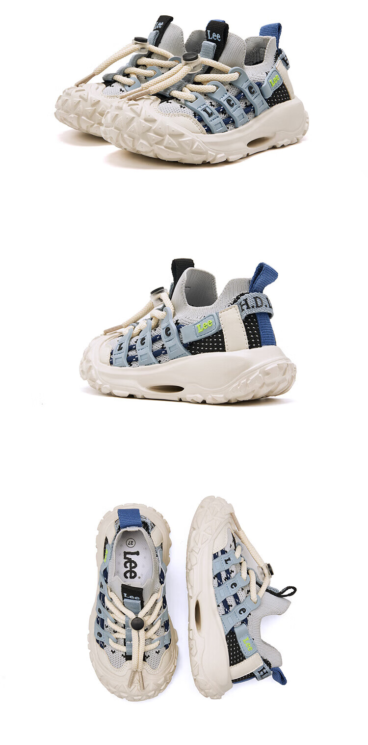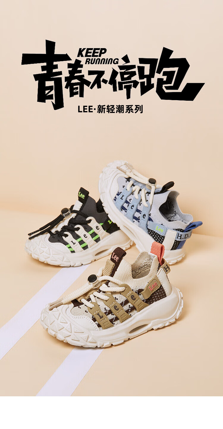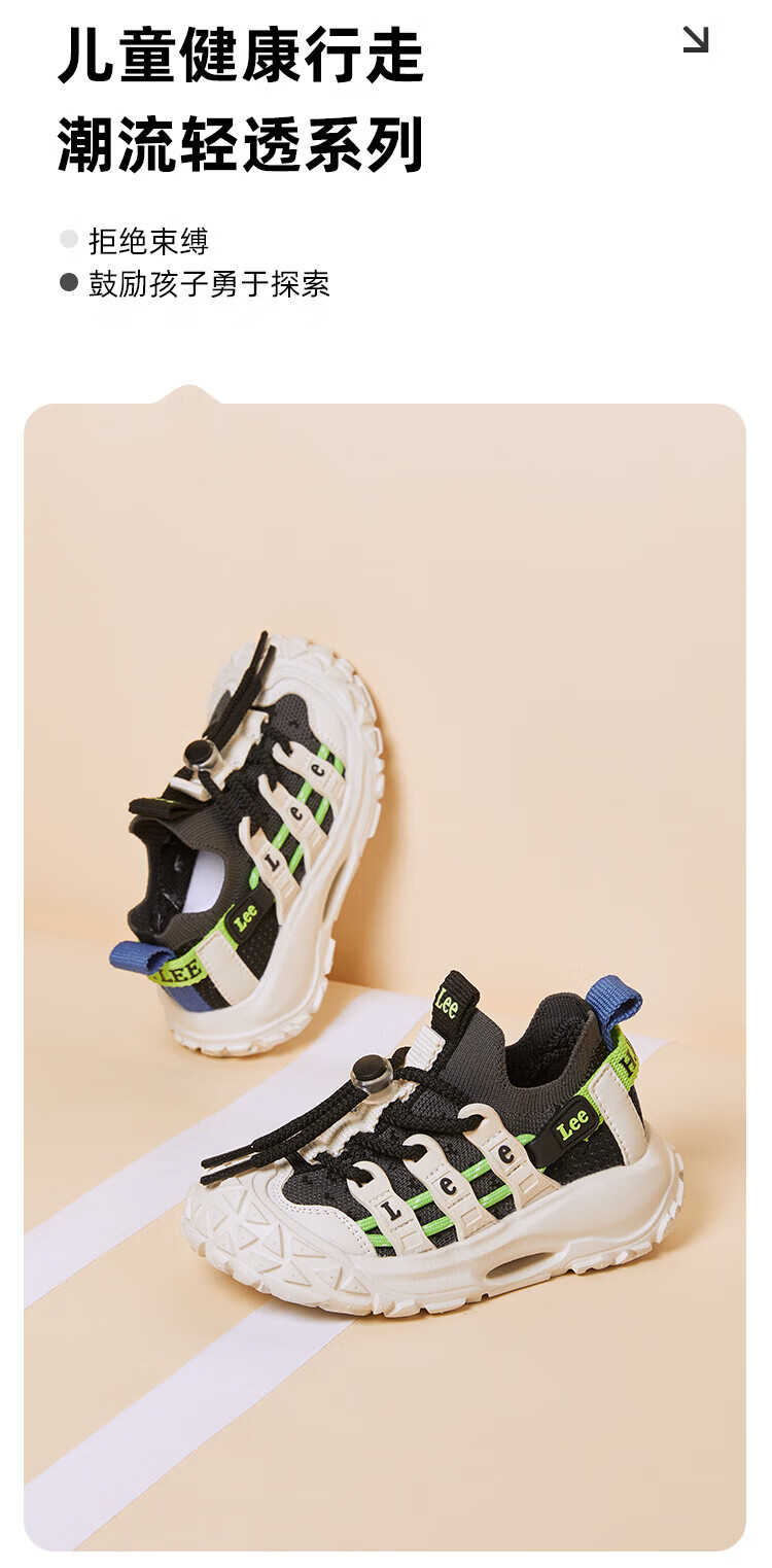Lee儿童运动鞋透气网面软底防滑户外跑步鞋男女童鞋 黑灰 36 【建议脚长223-228mm】