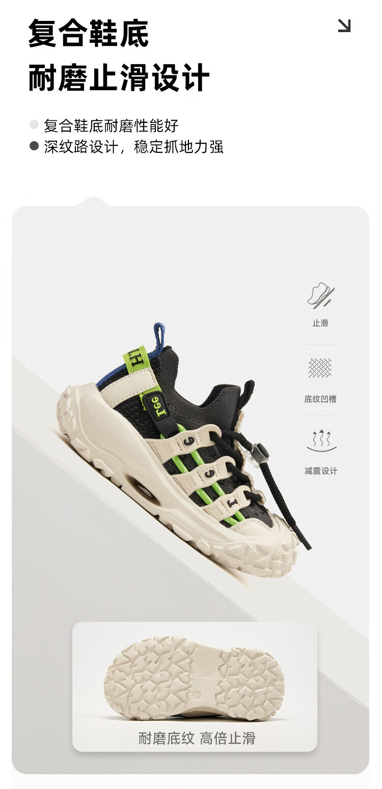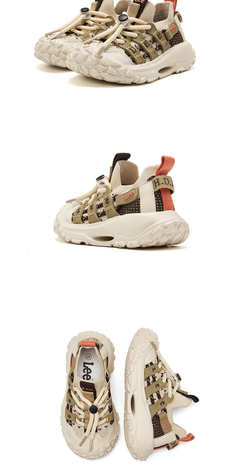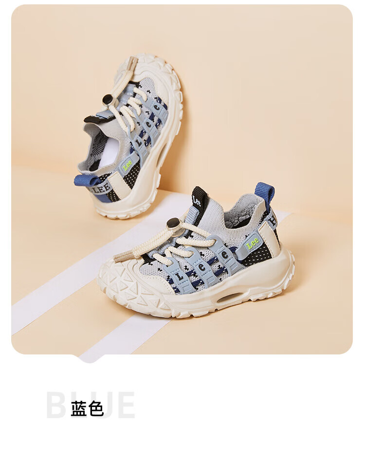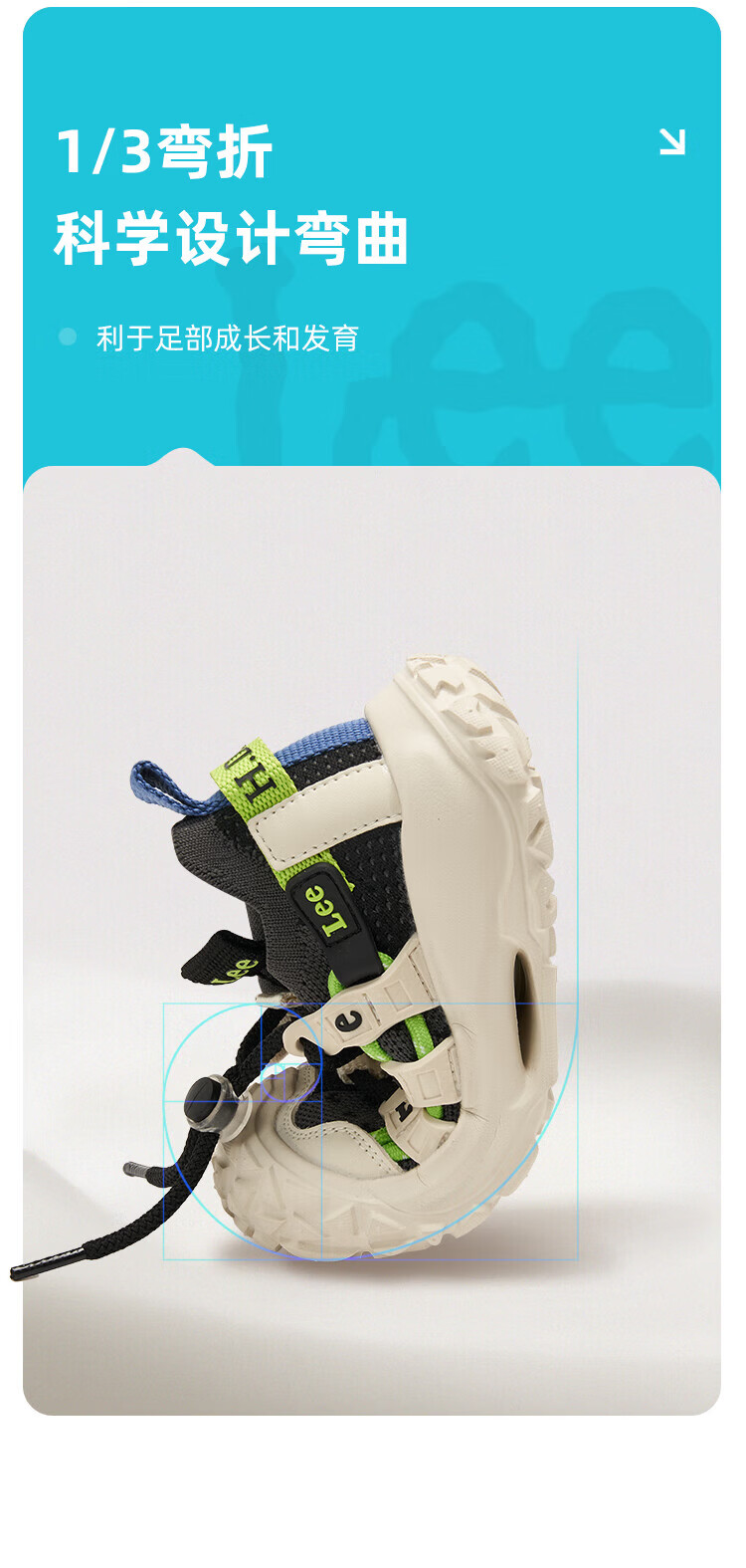 Lee儿童运动鞋透气网面软底防滑户外跑步鞋男女童鞋 黑灰 36 【建议脚长223-228mm】