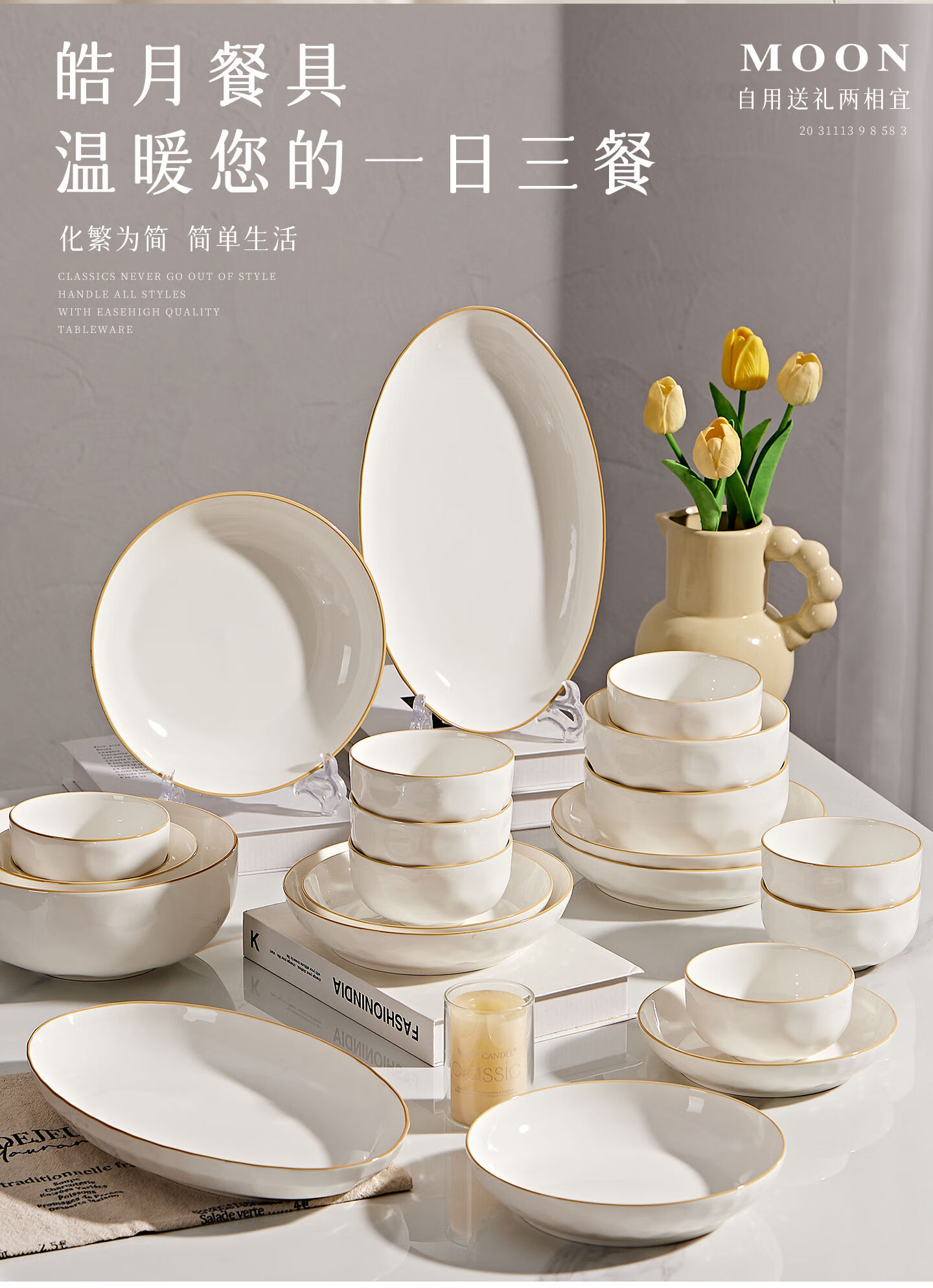 咏幻碗碟套装家用2026新款高级感餐具碗盘套装乔迁新居碗具碗筷简约 【四人食基础配置】4人19件套