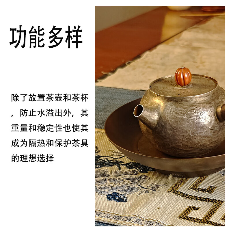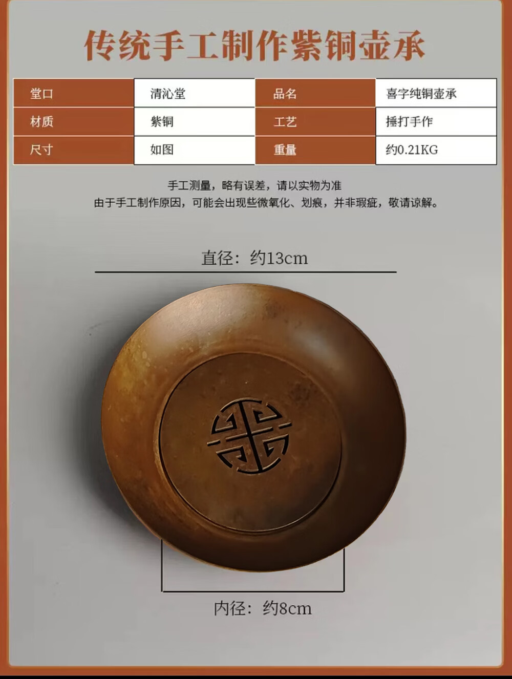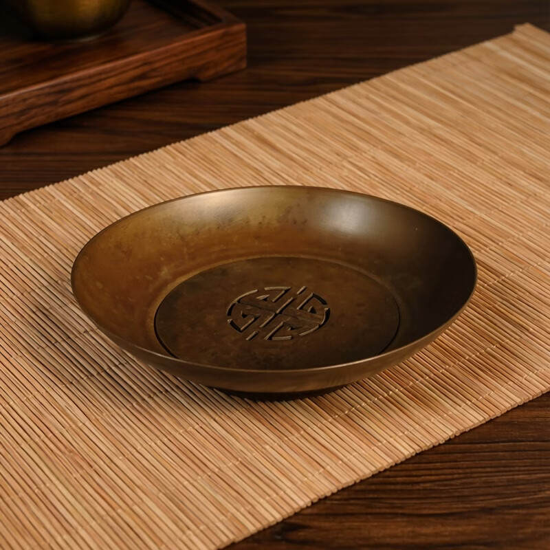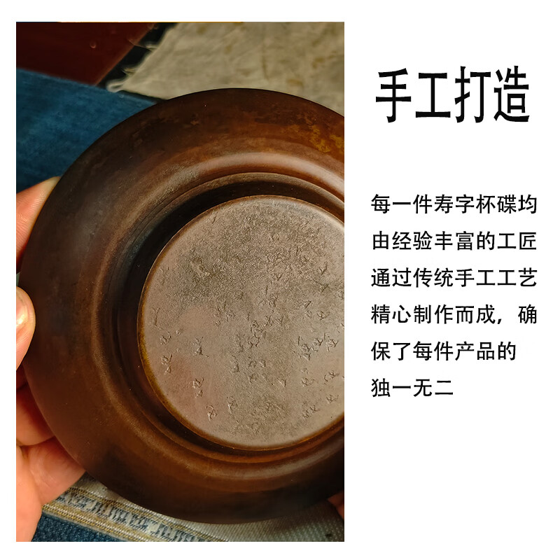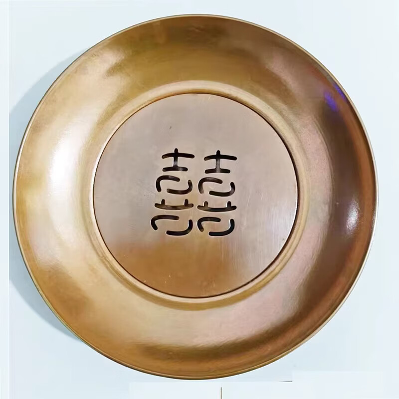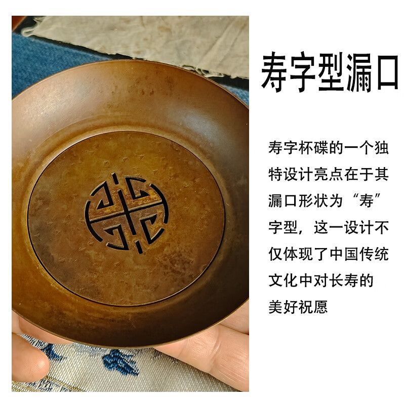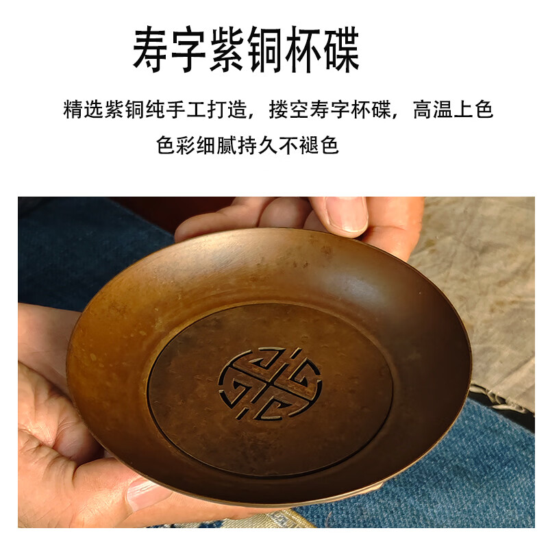 日式纯紫铜喜字双层小壶承干泡台茶垫锤纹做旧茶室防烫圆形杯垫 紫铜小寿字建水(咖色)
