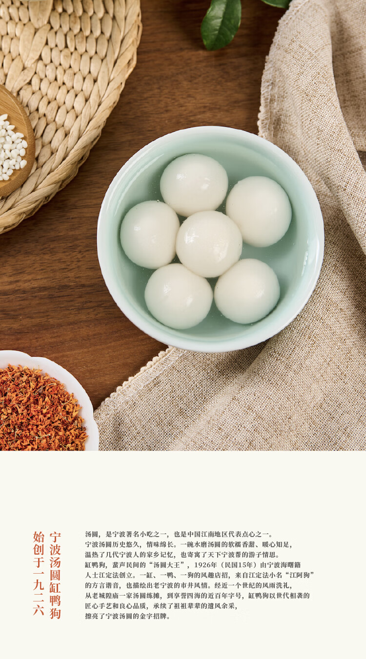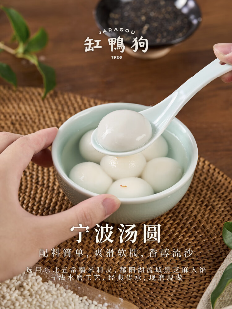 缸鸭狗 1926 宁波汤圆经典黑芝麻榴莲高粱豆沙汤圆元宵节甜点花生大黄米汤圆 纯净版黑芝麻240g*4袋