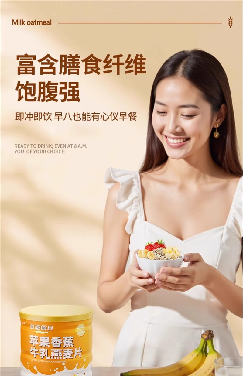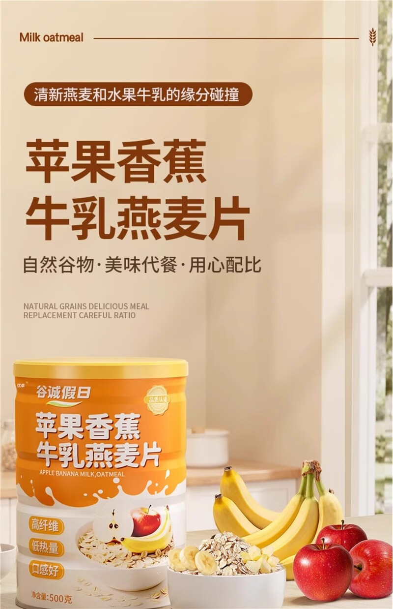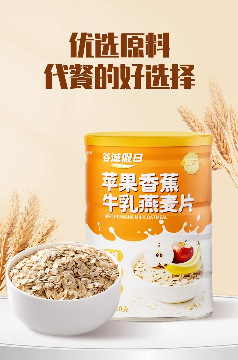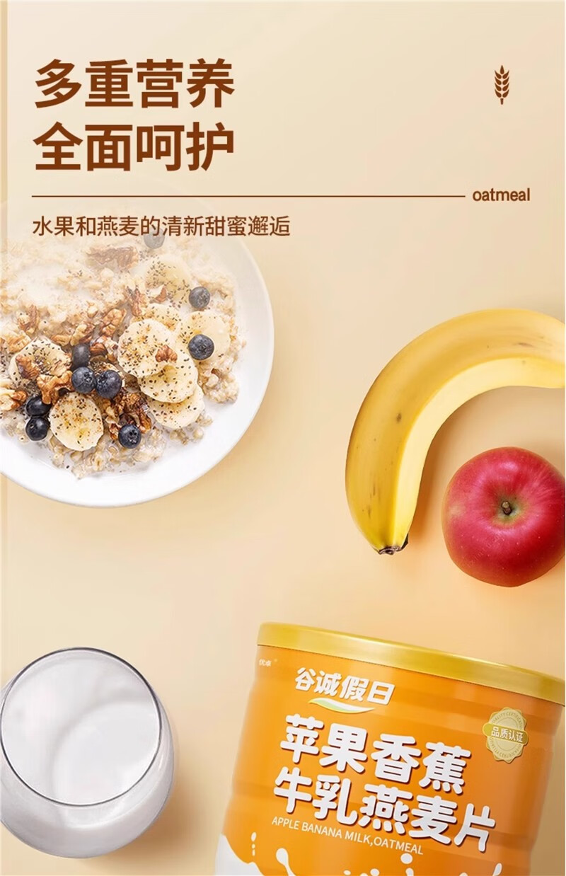 谷诚假日苹果香蕉牛乳燕麦片0添加糖减肥代餐 醇香即食营养早餐 购买三罐及以上赠送杯勺套装【赠品勿拍】