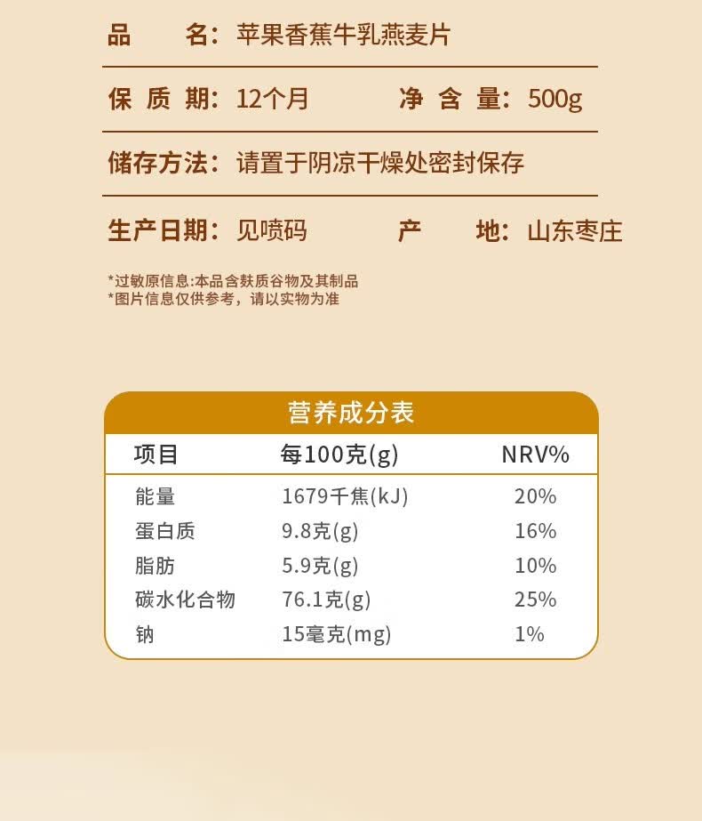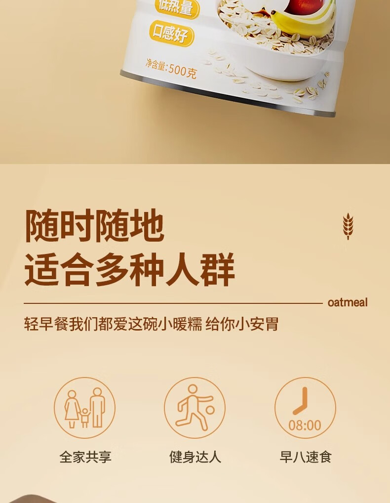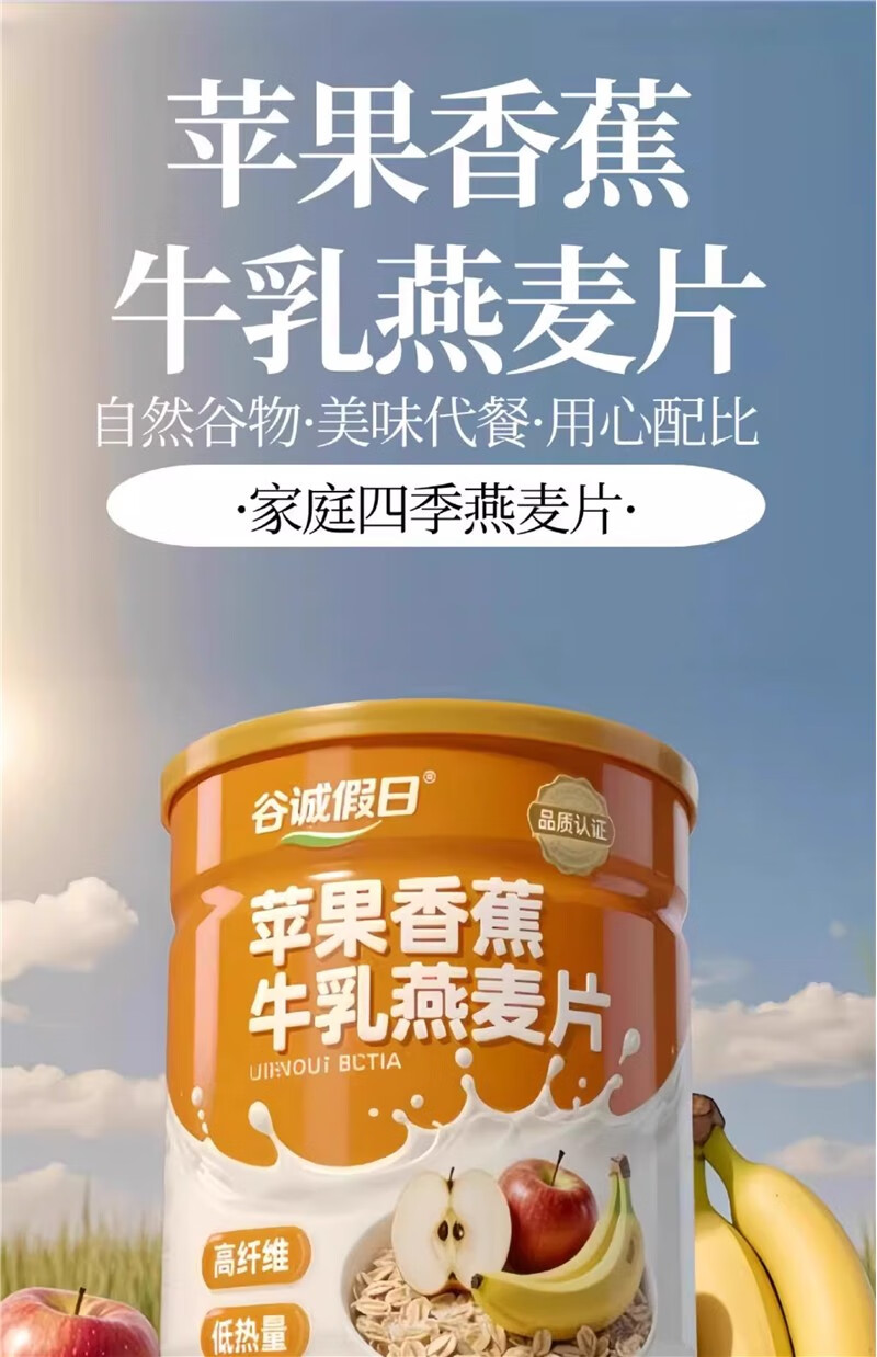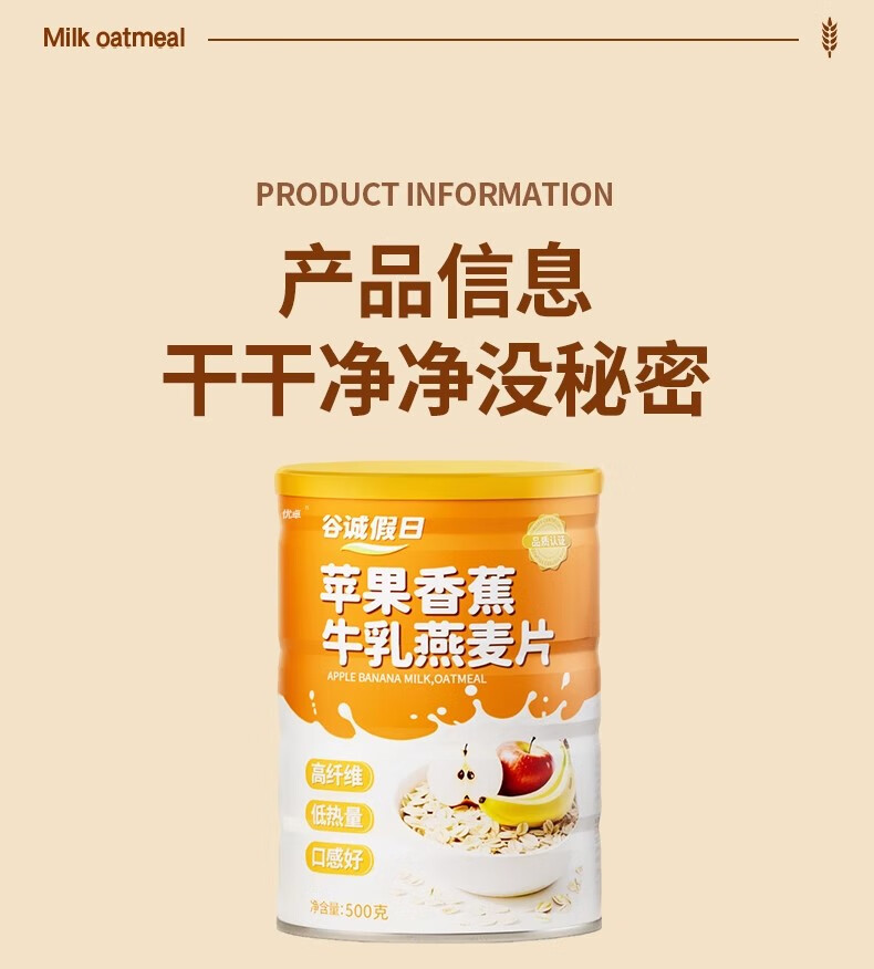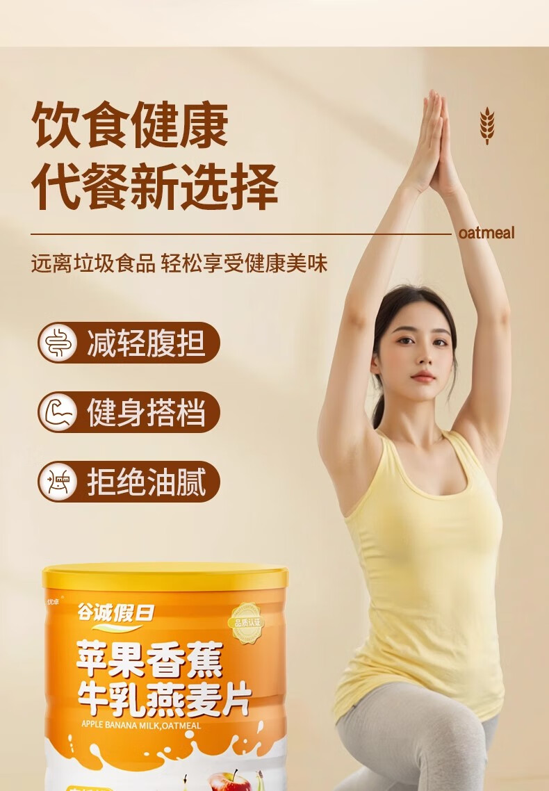 谷诚假日苹果香蕉牛乳燕麦片0添加糖减肥代餐 醇香即食营养早餐 购买三罐及以上赠送杯勺套装【赠品勿拍】