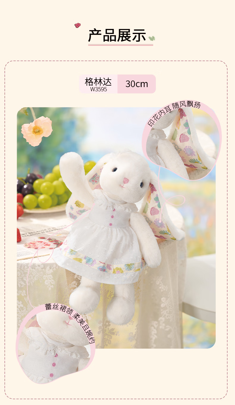 伽百利毛绒玩具可爱兔子公仔玩偶礼物摆件抱枕陪伴生日礼物送女生送儿童 W3595格林达30cm