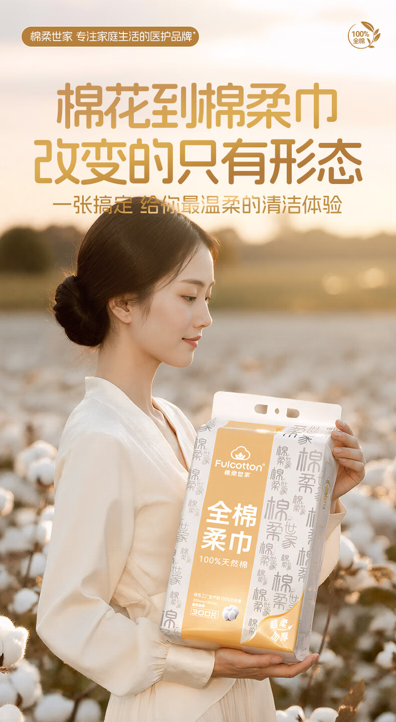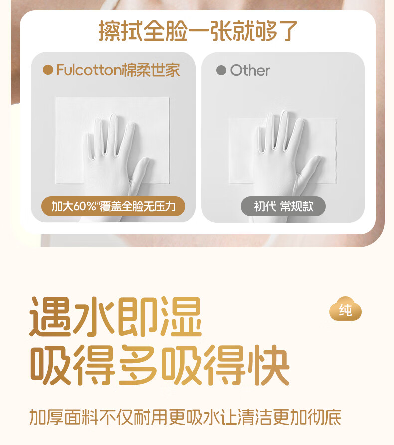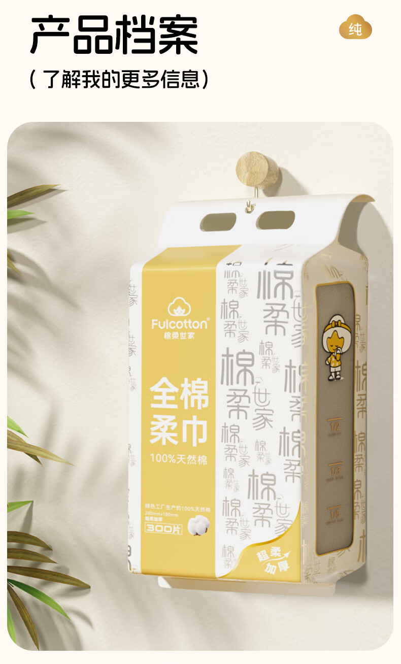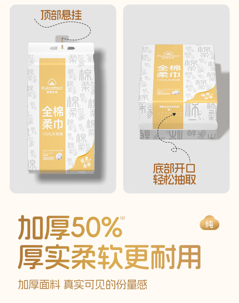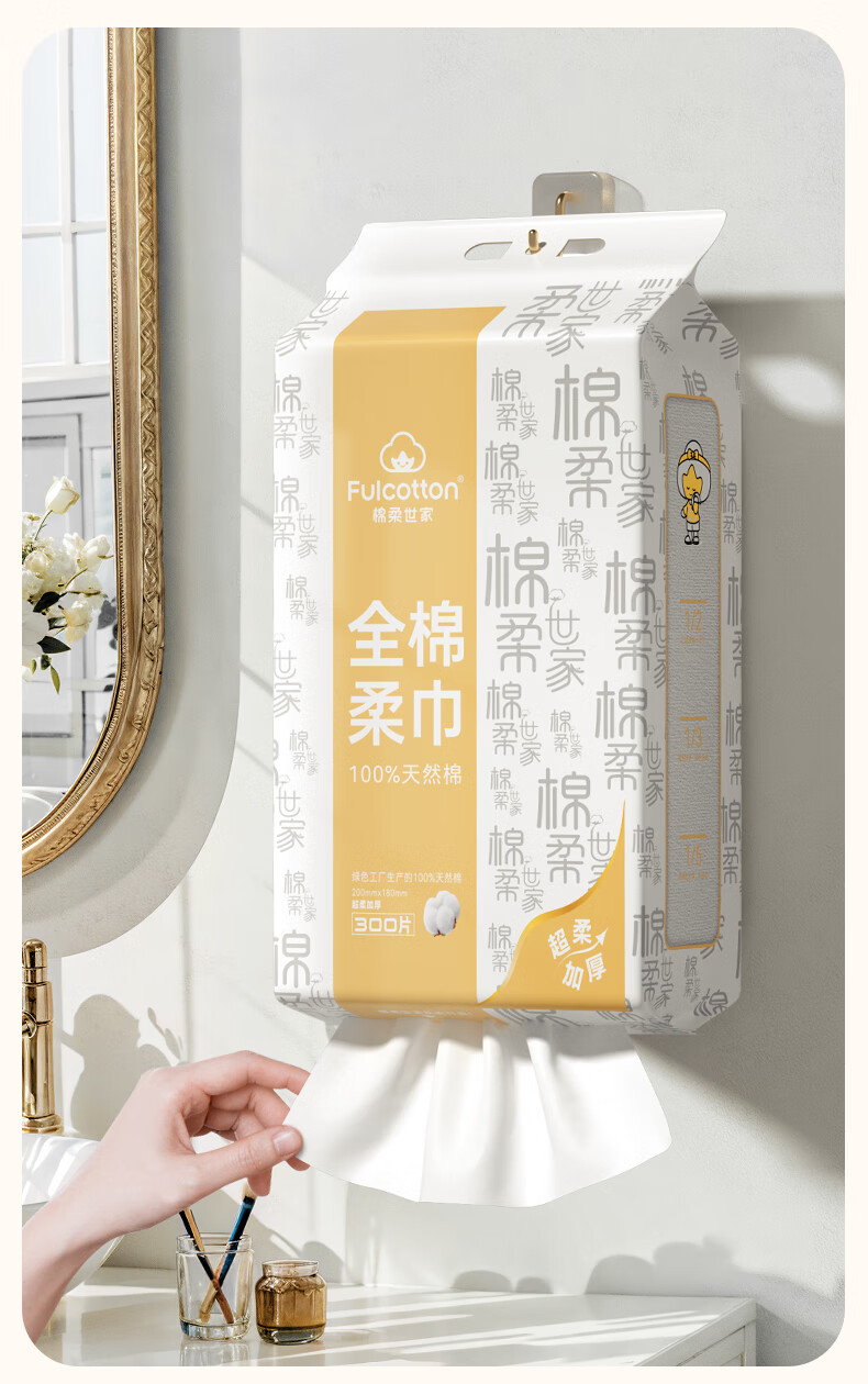 棉柔世家(FulCotton)一次性洗脸巾壁挂悬挂式婴儿擦脸巾加大加厚干湿两用洁面巾 【平纹100%全棉】L码160抽*1包