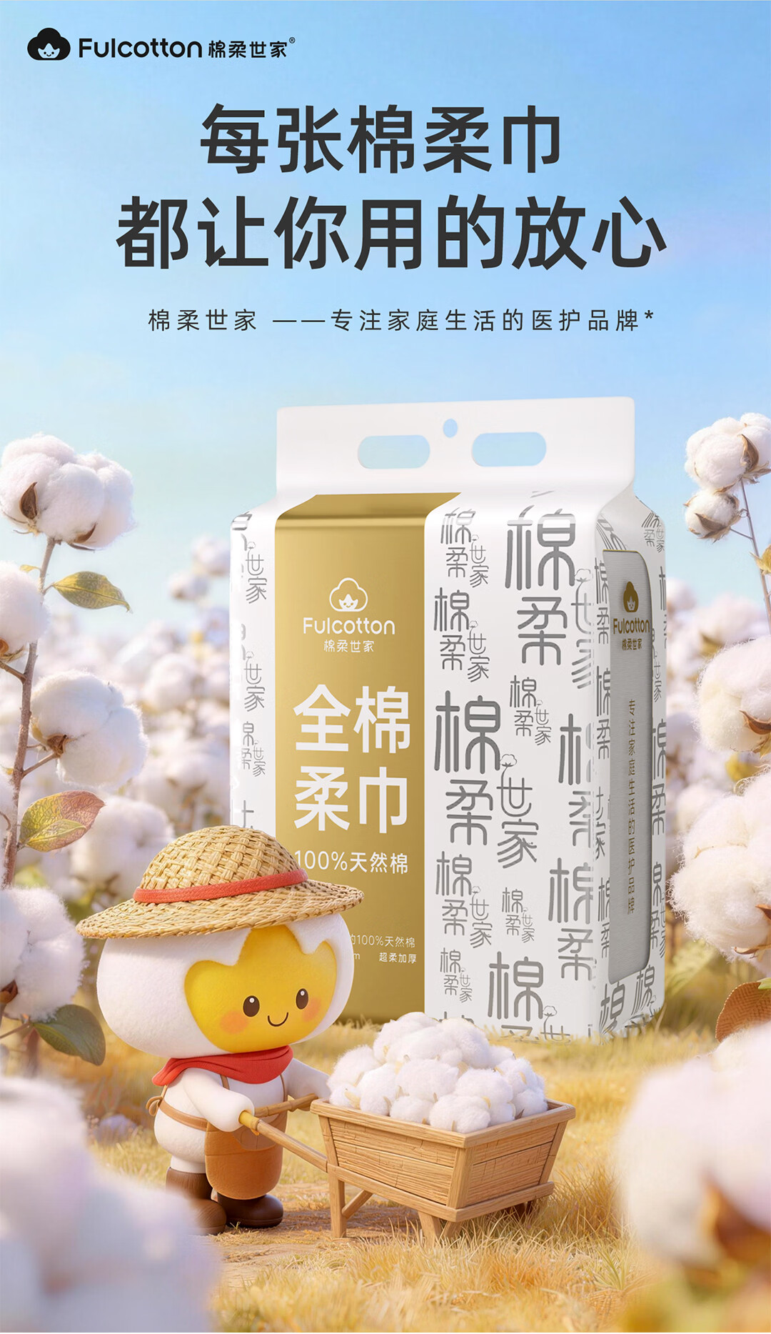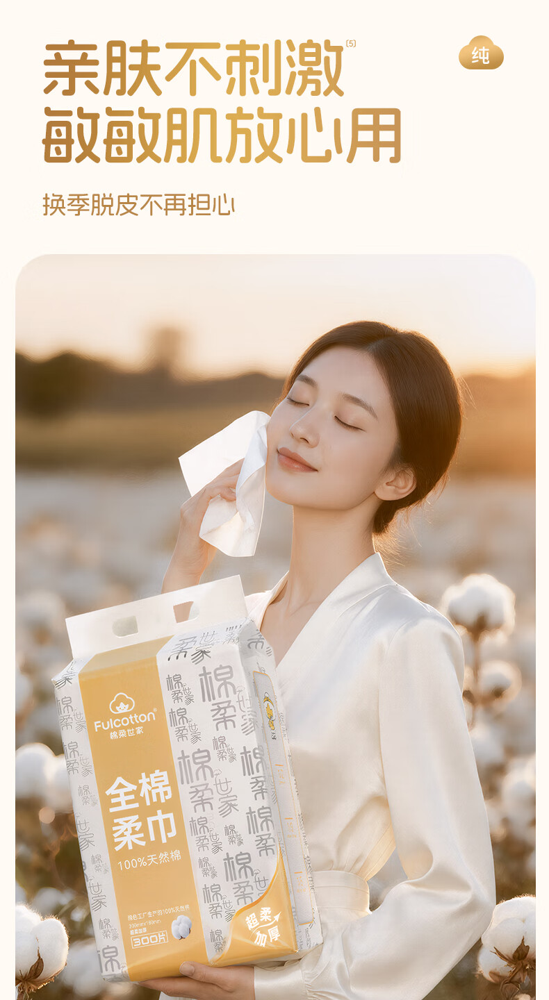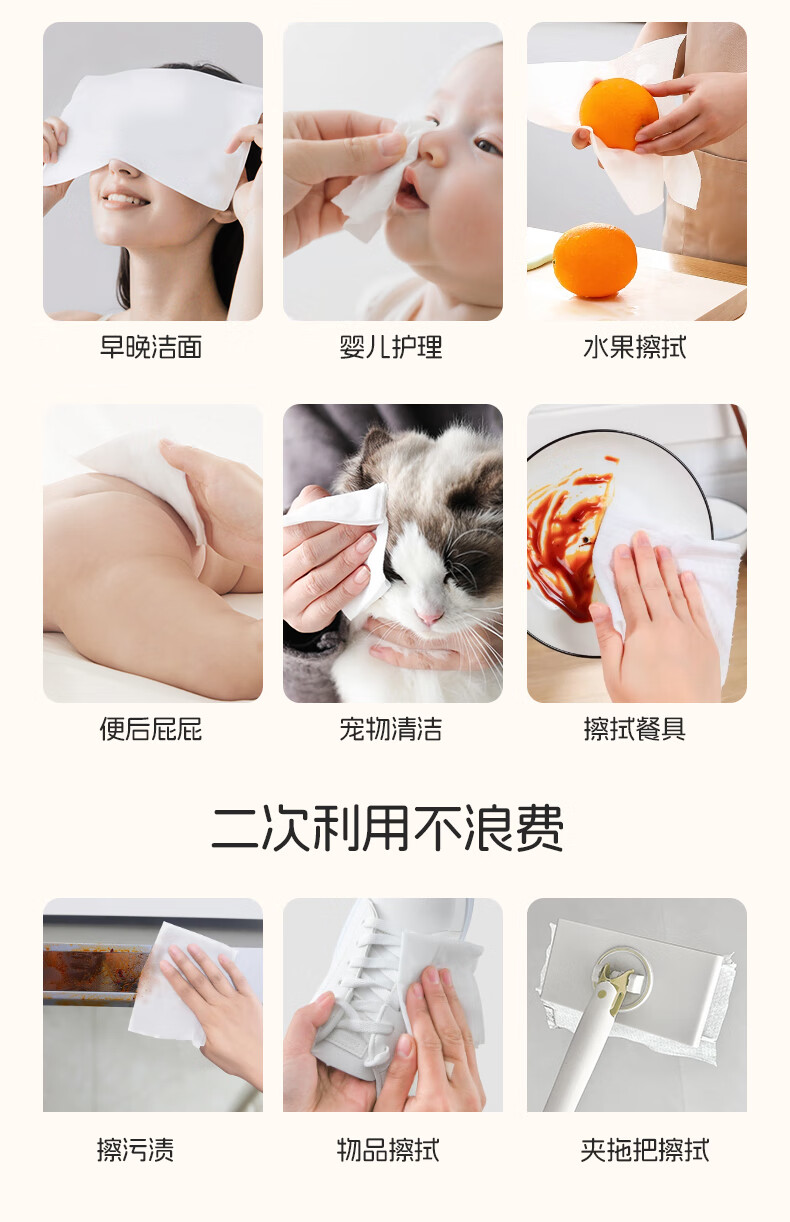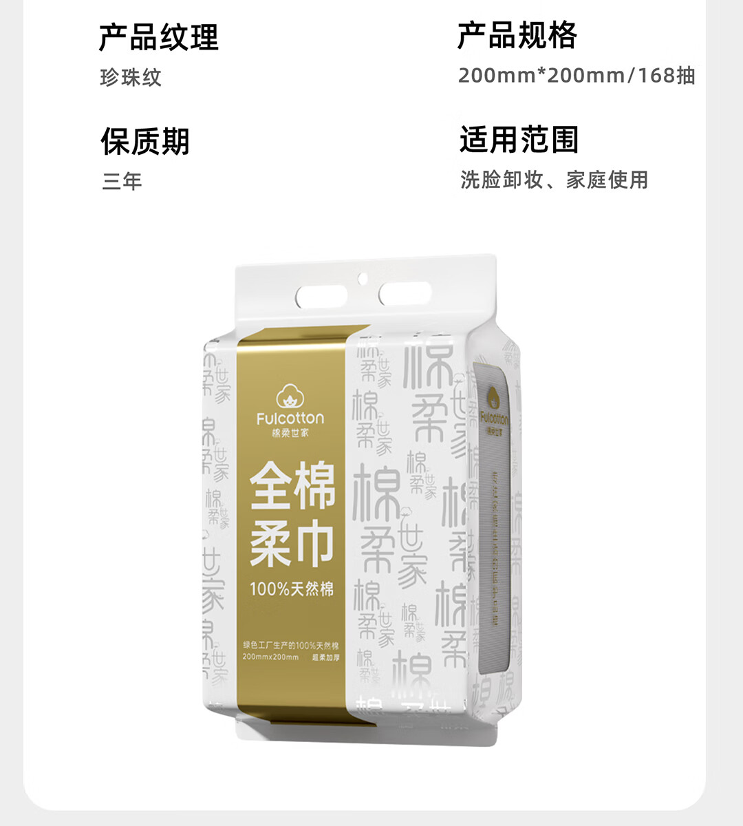 棉柔世家(FulCotton)一次性洗脸巾壁挂悬挂式婴儿擦脸巾加大加厚干湿两用洁面巾 【平纹100%全棉】L码160抽*1包