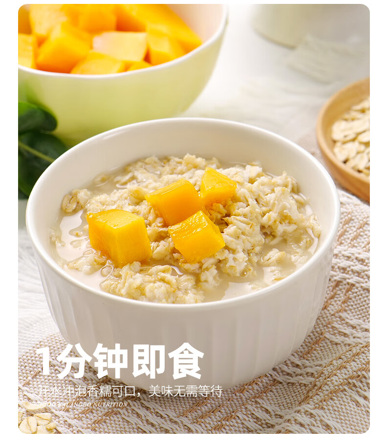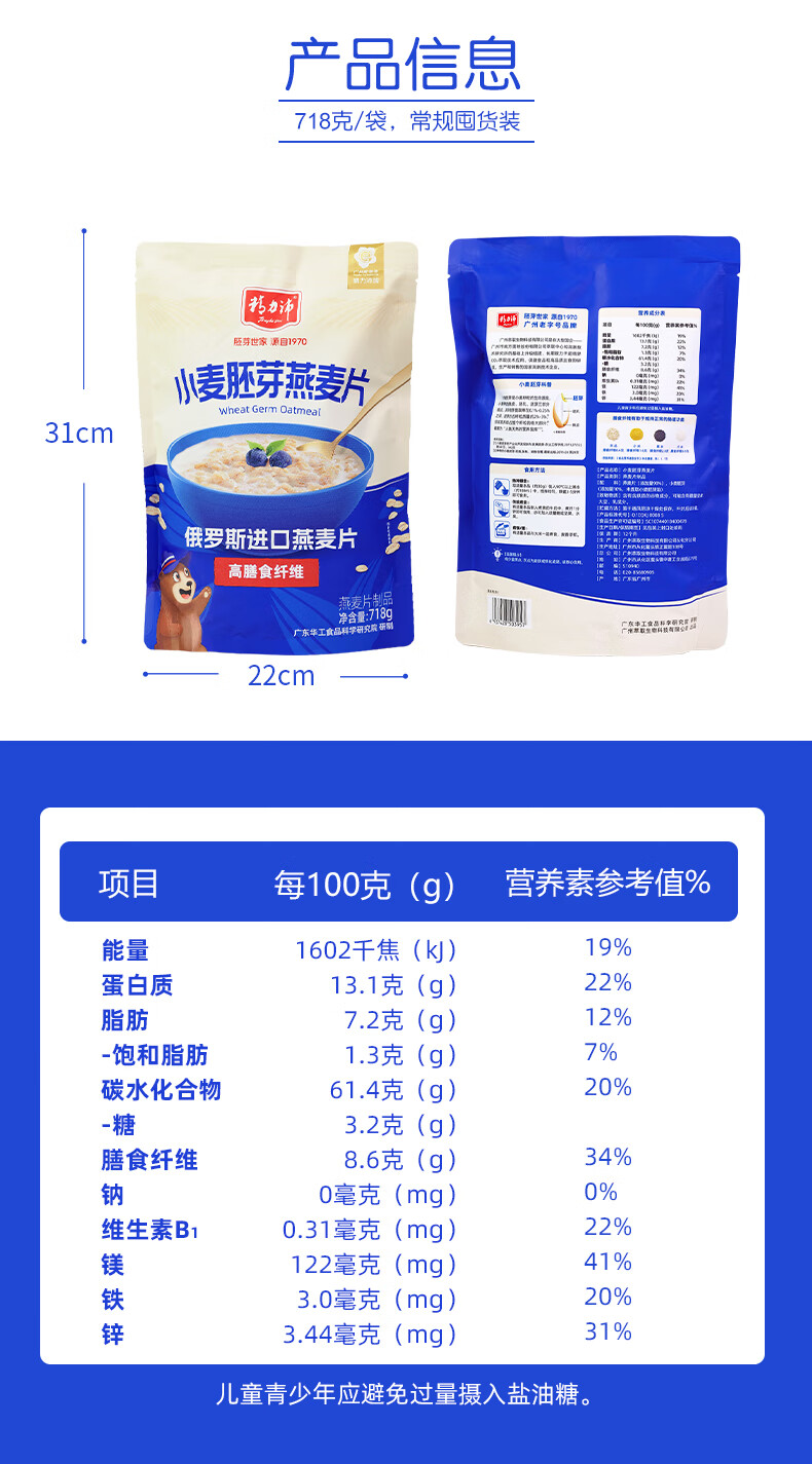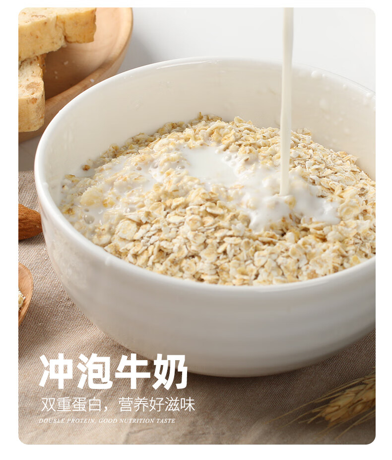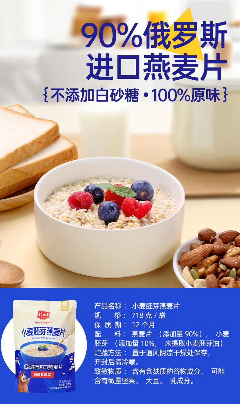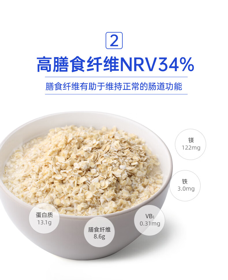 精力沛 燕麦片免煮即食原味高纤维高蛋白代餐谷物俄罗斯进口原料 原味高纤 718g*2袋 (俄罗斯进口原料)