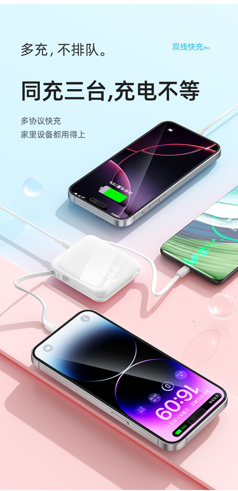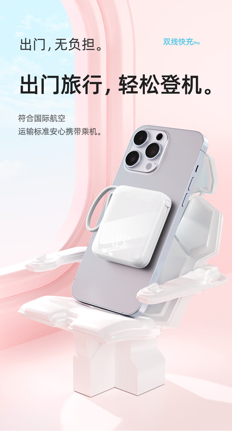 品胜【3C认证上飞机】小魔方充电宝45W快充自带双线20000毫安便携移动电源40W适用苹果17户外储能电源