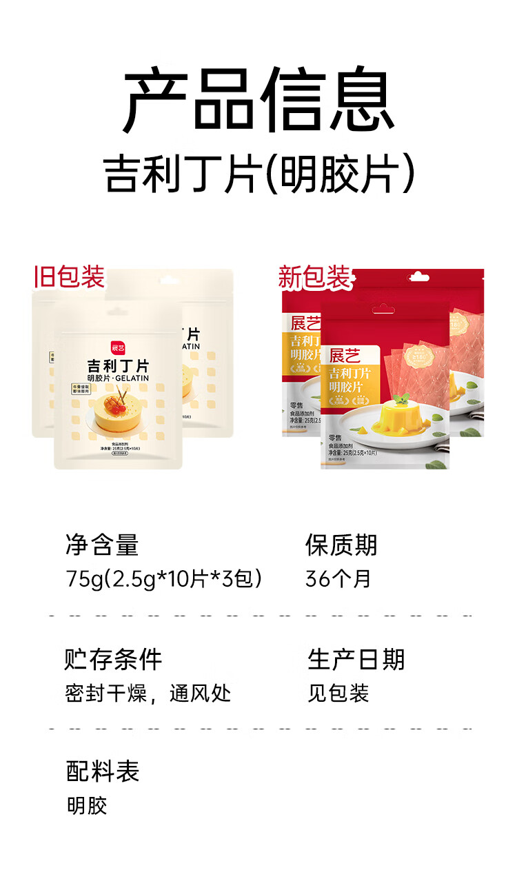展艺吉利丁片75g 食用明胶片家用布丁提拉米苏慕斯蛋糕材料烘焙原料