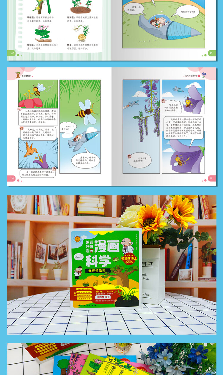 24册越看越想看的漫画科学儿童科普绘本自然百科知识 科学-疯狂植物园 漫画全4册