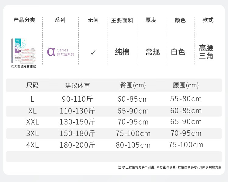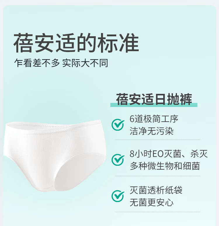 蓓安适一次性内裤女士高腰纯棉无菌旅行日抛孕产妇独立包装 8条装L码