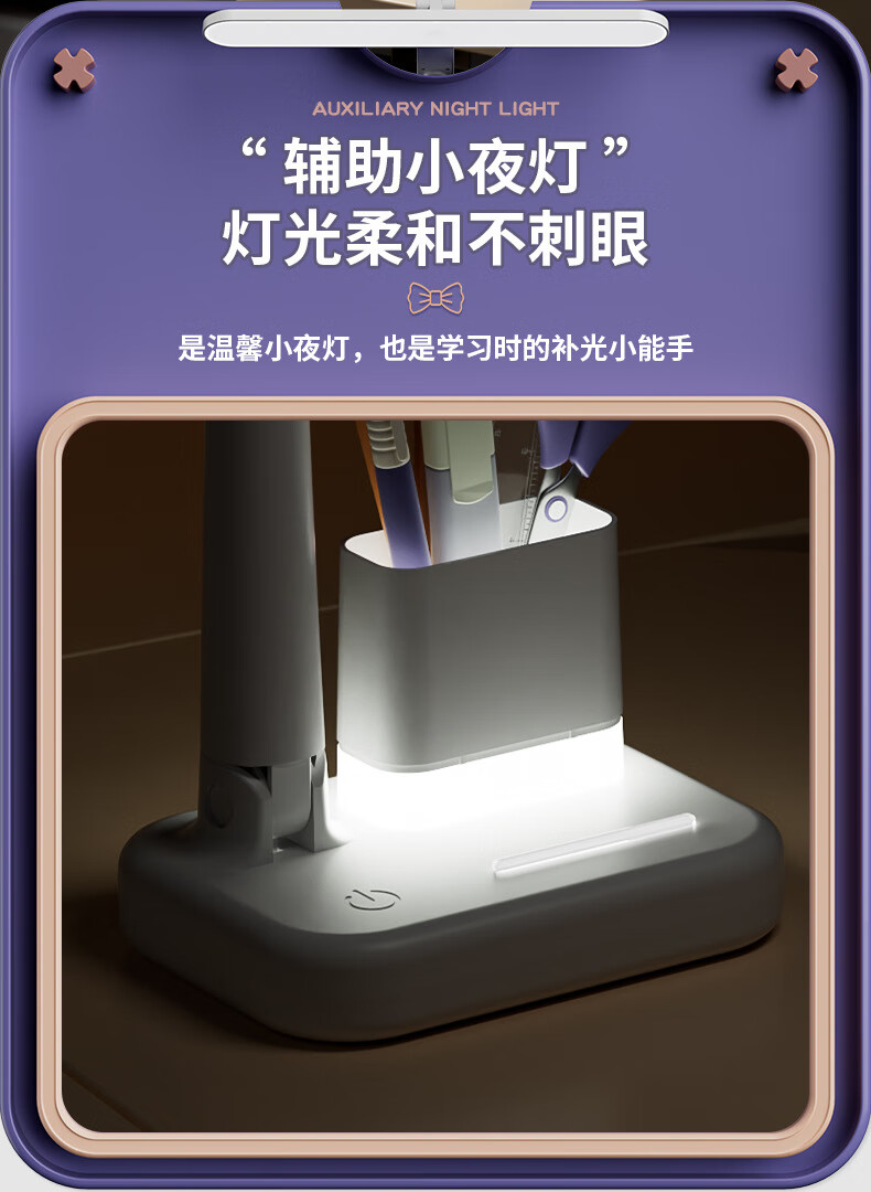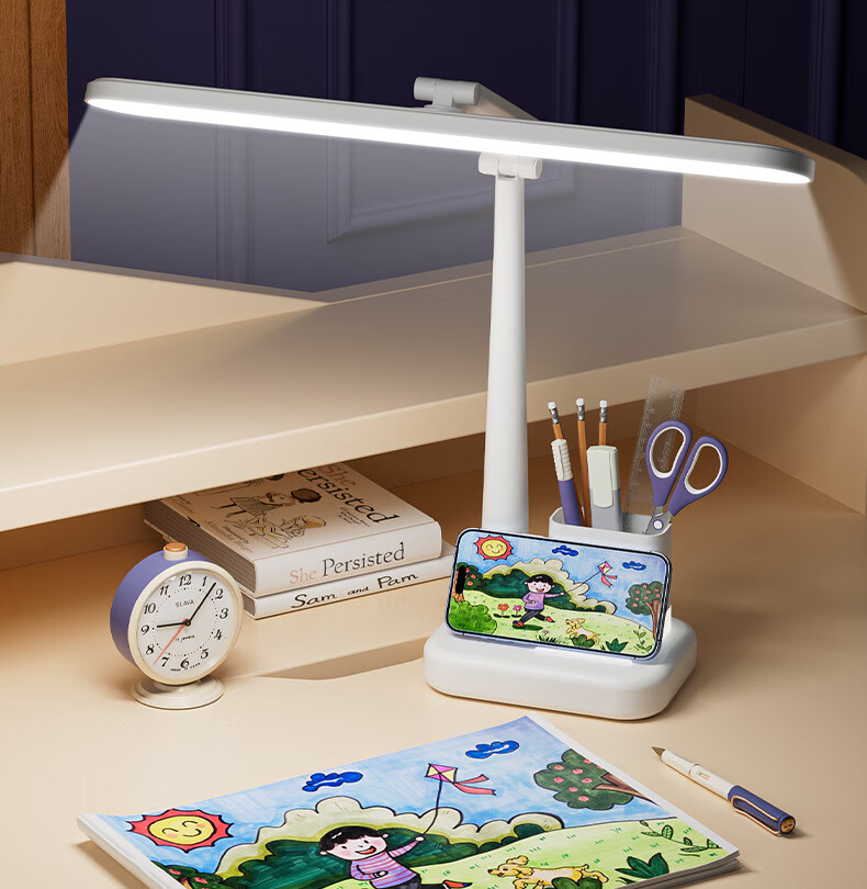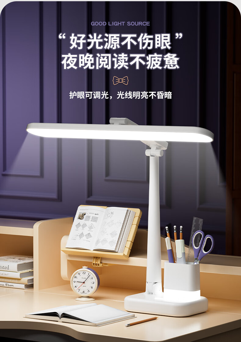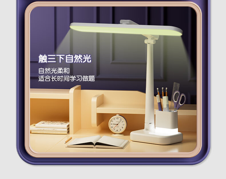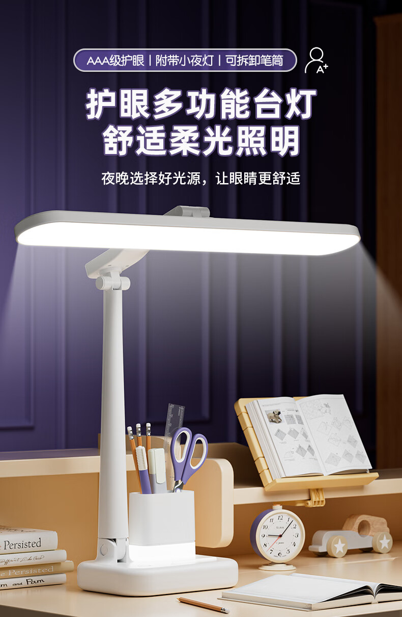 明羽MYU 国AAA台灯护眼学习LED充插两用学生儿童书桌宿舍阅读灯 【充电款】1200毫安带笔筒 带充电头/三色光+无极调光