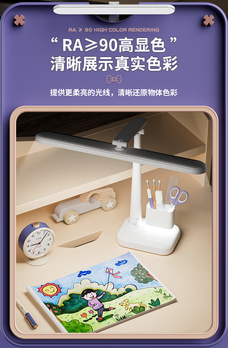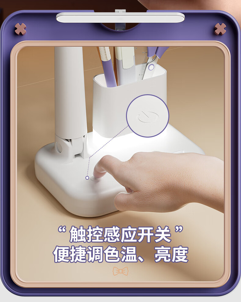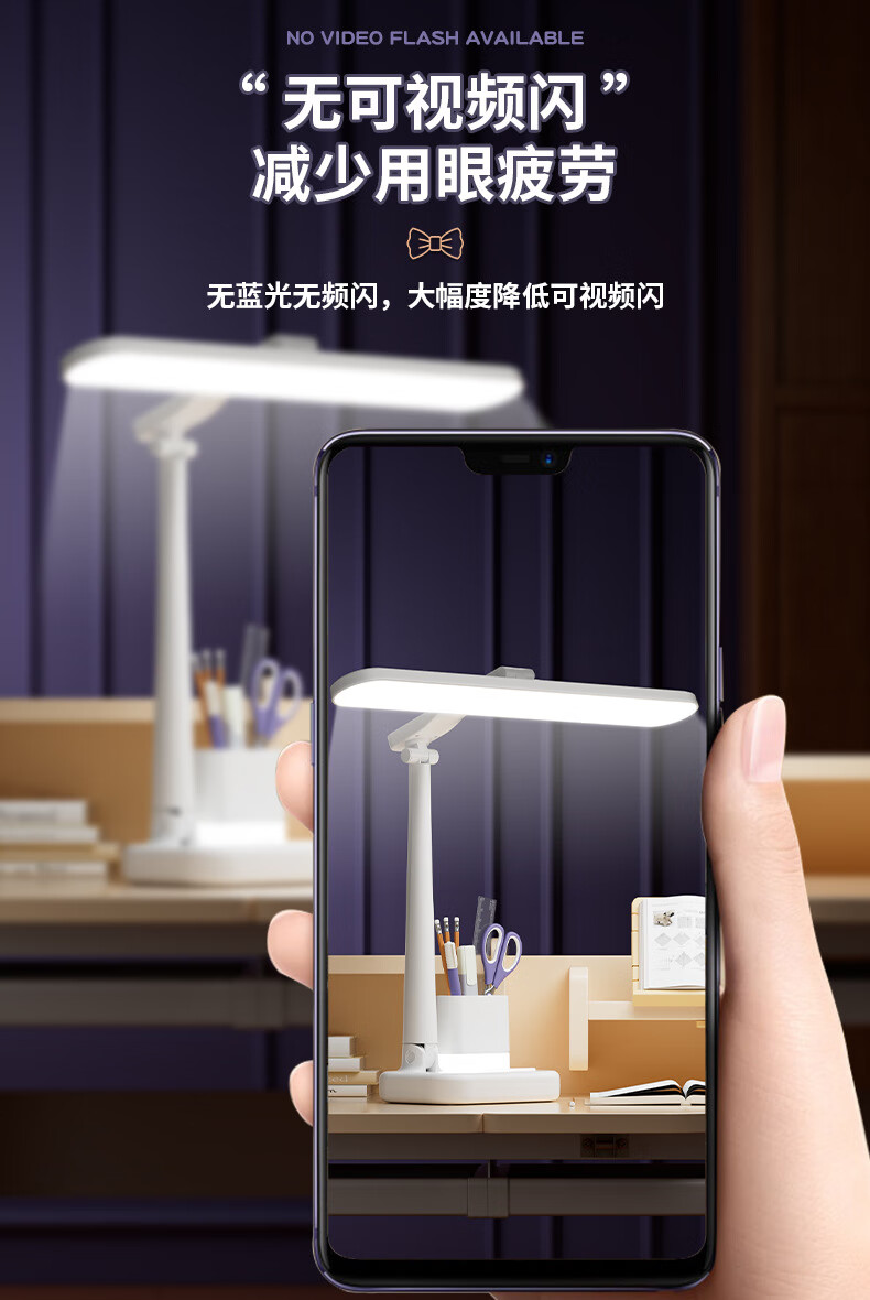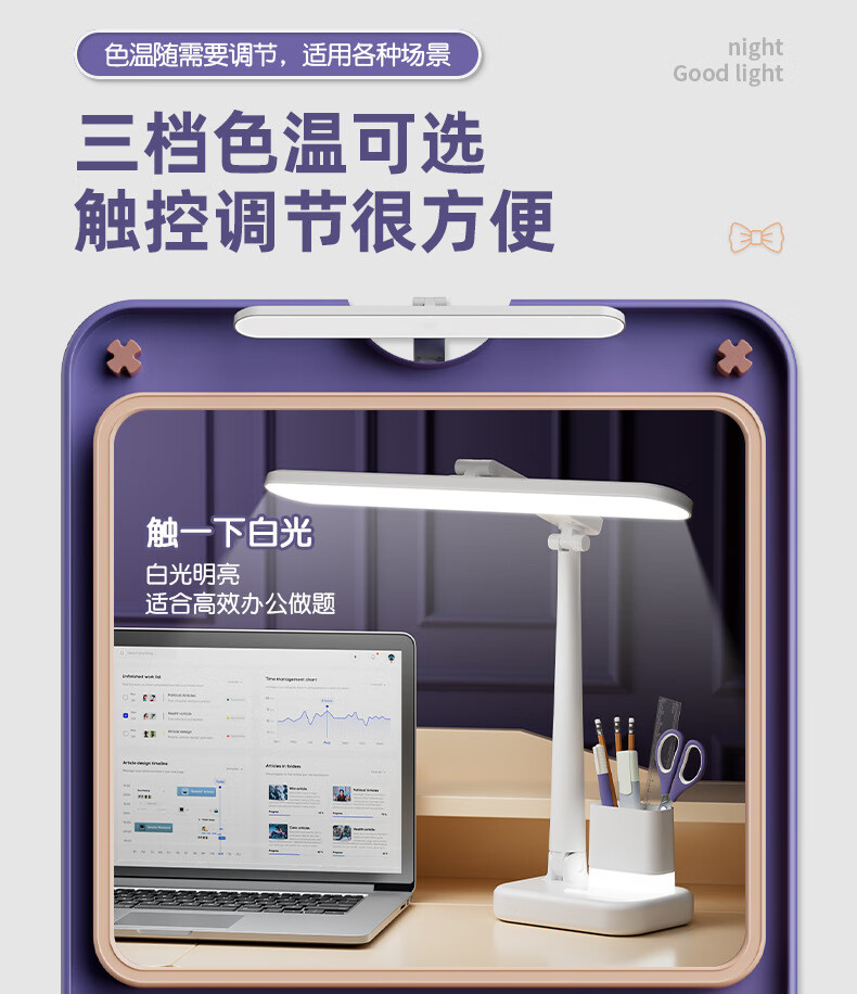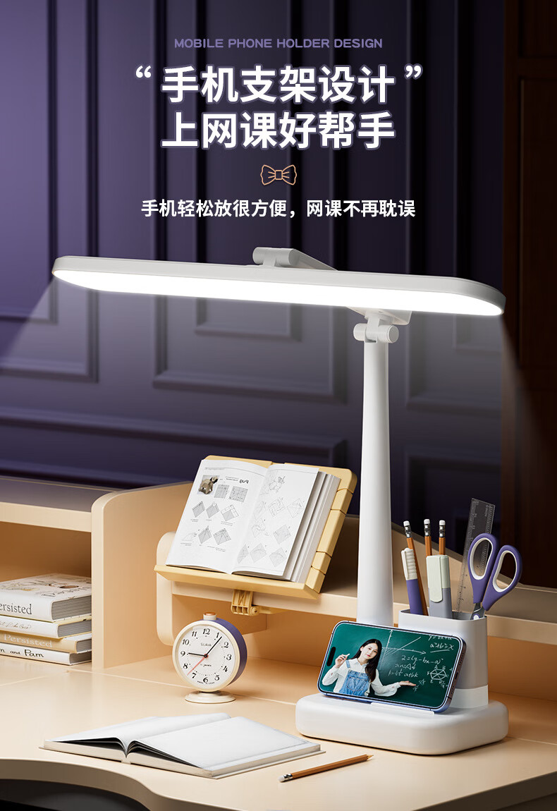 明羽MYU 国AAA台灯护眼学习LED充插两用学生儿童书桌宿舍阅读灯 【充电款】1200毫安带笔筒 带充电头/三色光+无极调光