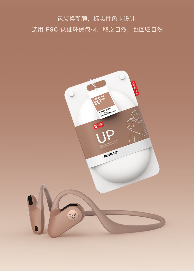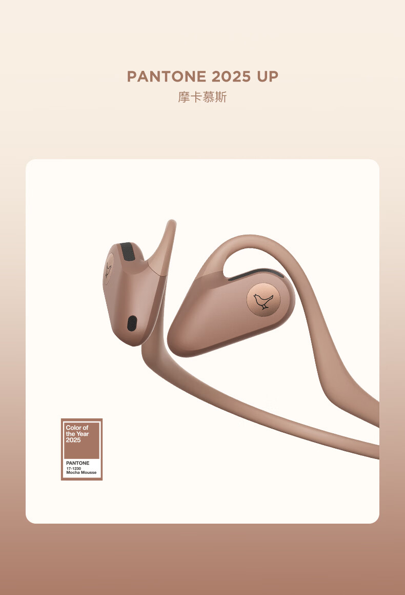 LIBRATONE小鸟UP耳机PANTONE限定版开放式蓝牙耳机不入耳后挂式跑步运动骑行轻便时尚无线耳机 摩卡慕斯(PANTONE限定版)