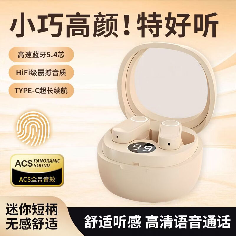 华强北蓝牙耳机新款蓝牙耳机半入耳式超长续航游戏运动降噪舒适男女款新迷你豆真无线蓝牙耳机 高音质防水运动 象牙白 短柄轻巧 舒适佩戴 M400L 高清立体音质标准续航蓝牙5.1芯