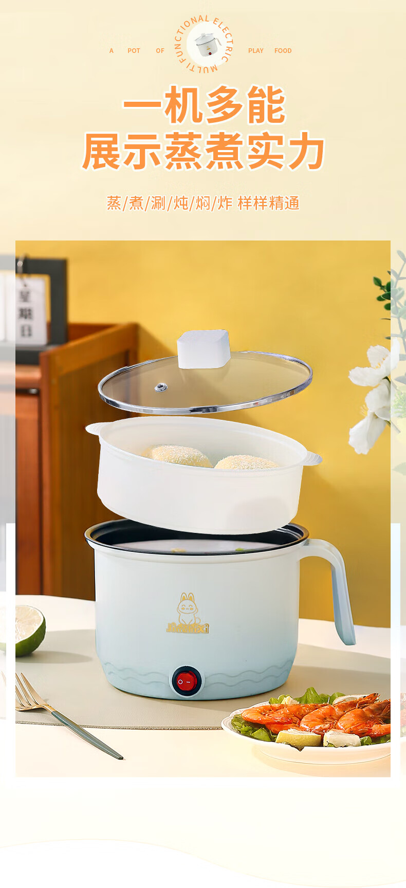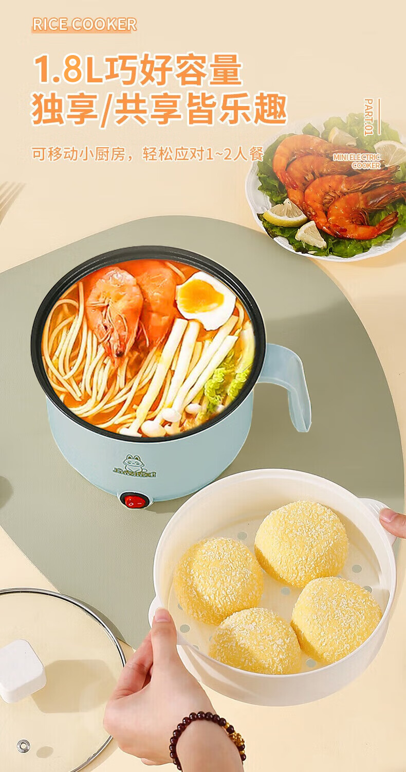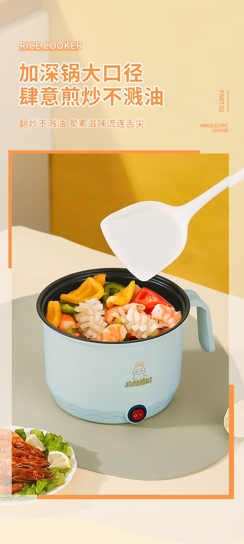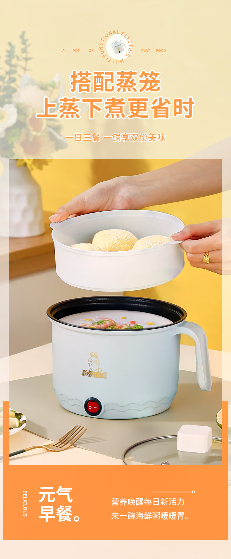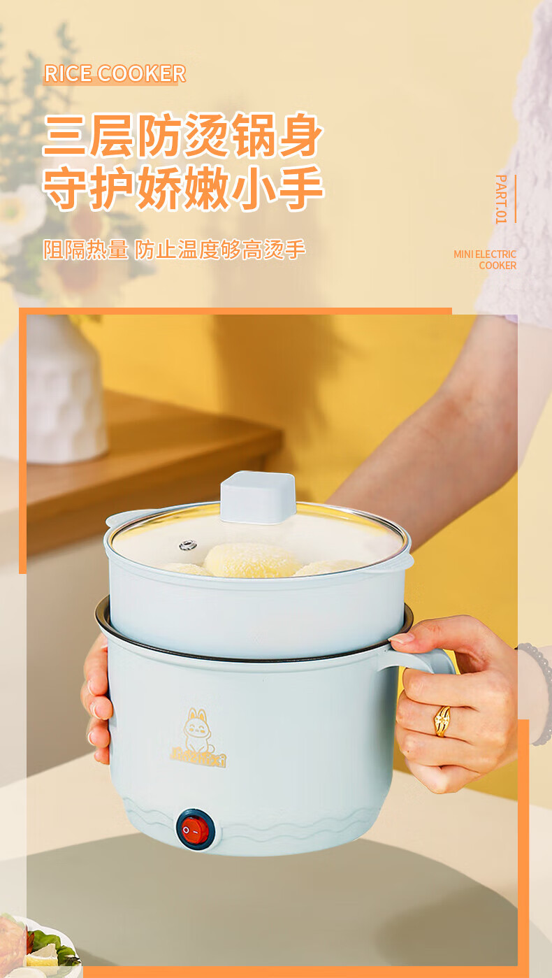宿舍小电锅电饭煲一体学生家用多功能电炒锅蒸煮电热锅 升级防漏电【单锅】+长线+质保三年