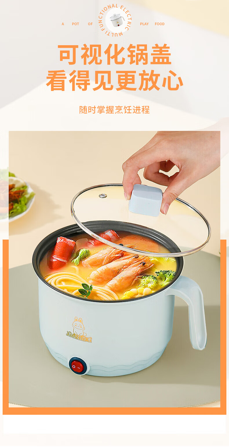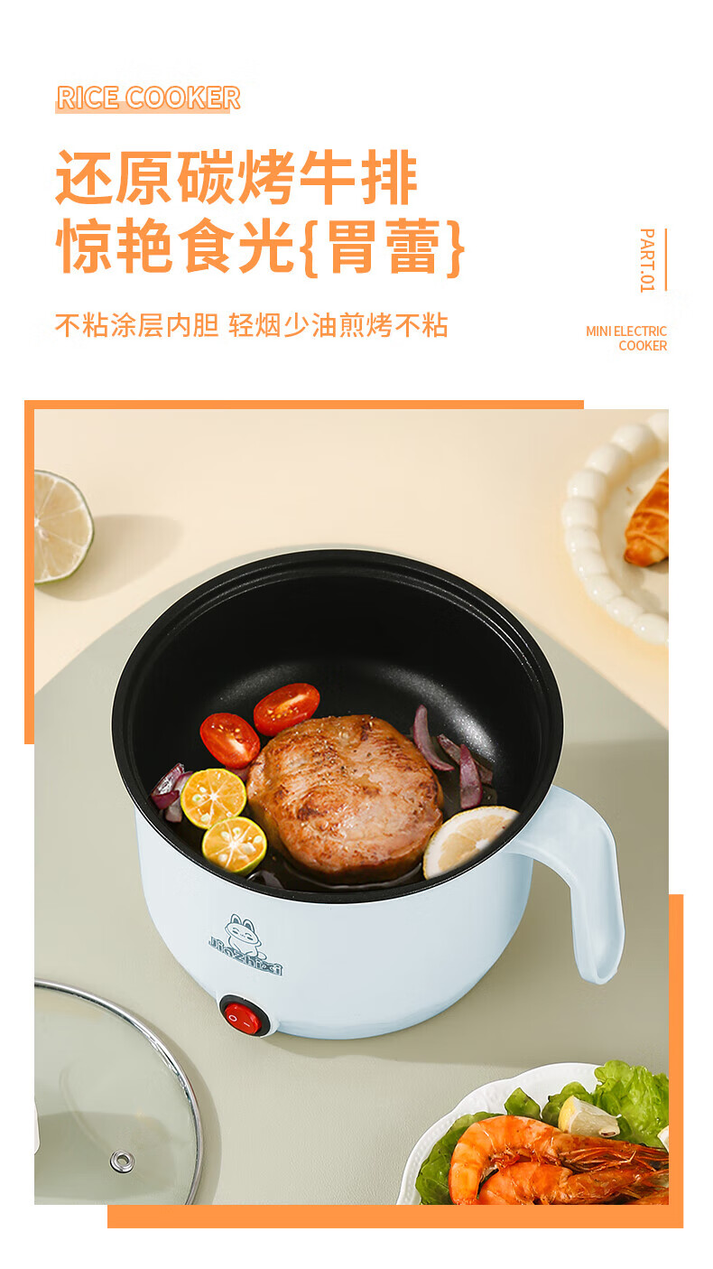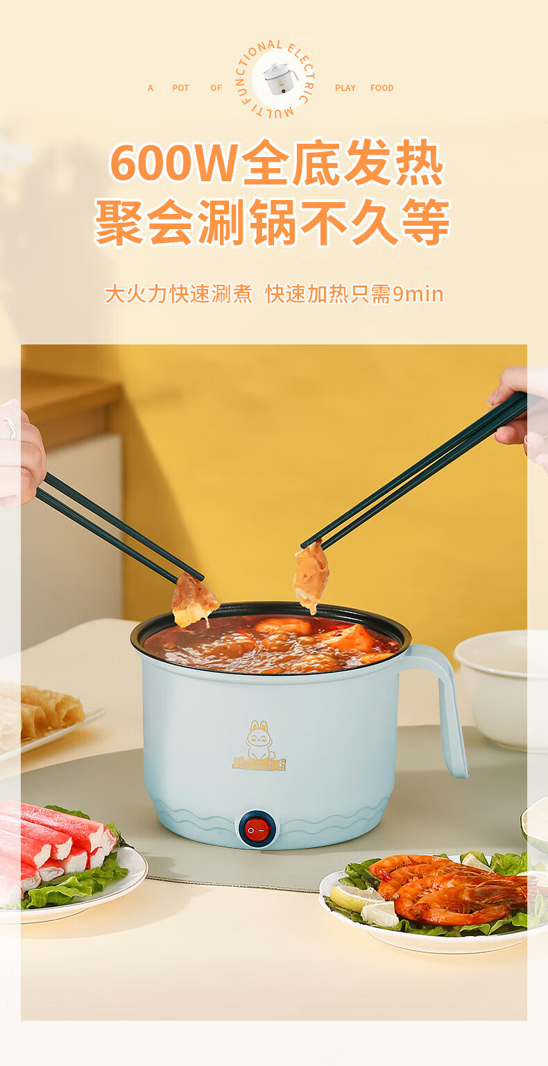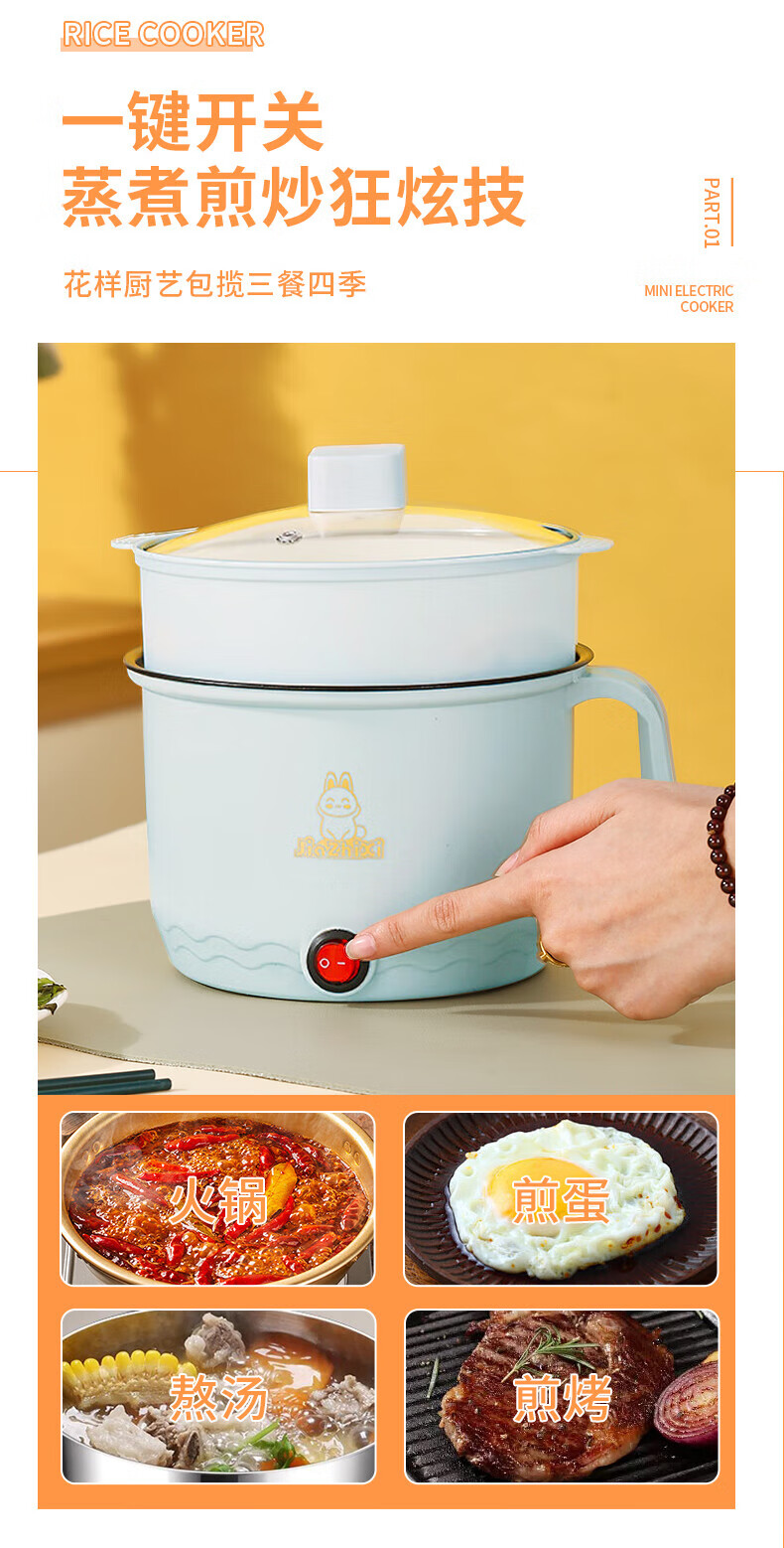 宿舍小电锅电饭煲一体学生家用多功能电炒锅蒸煮电热锅 升级防漏电【单锅】+长线+质保三年