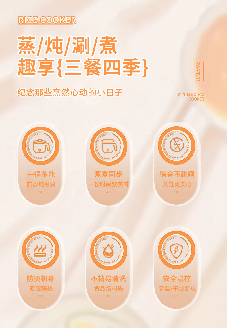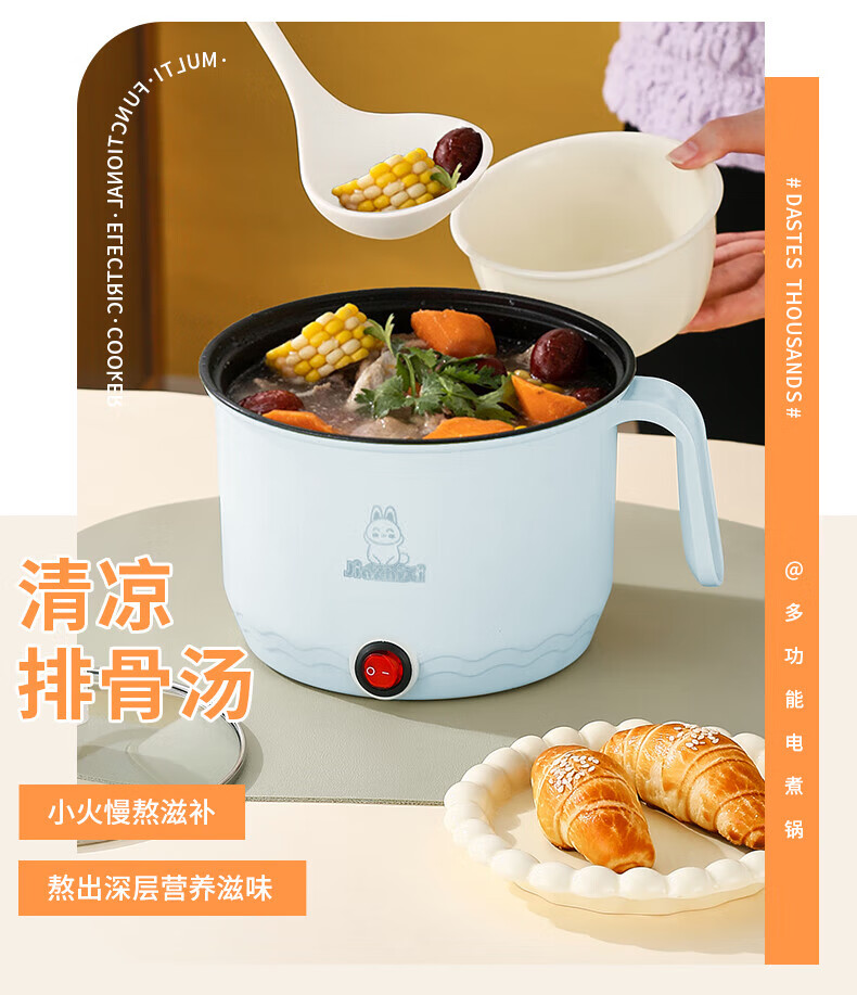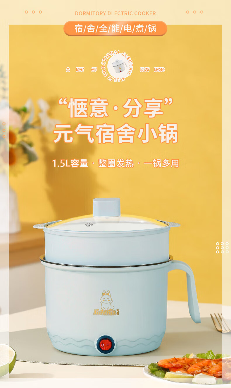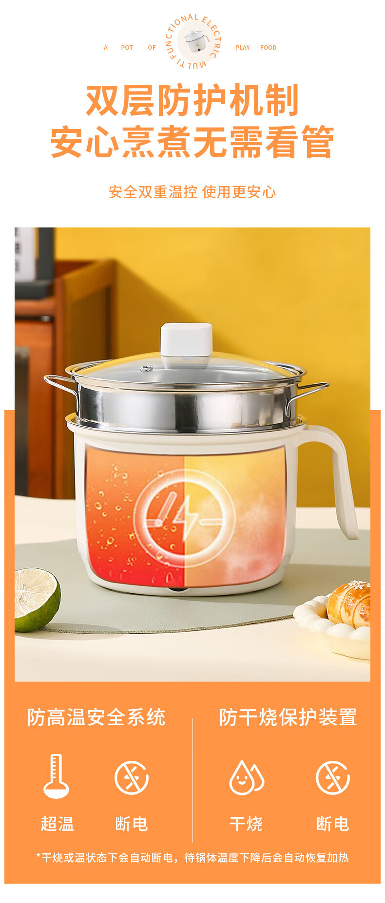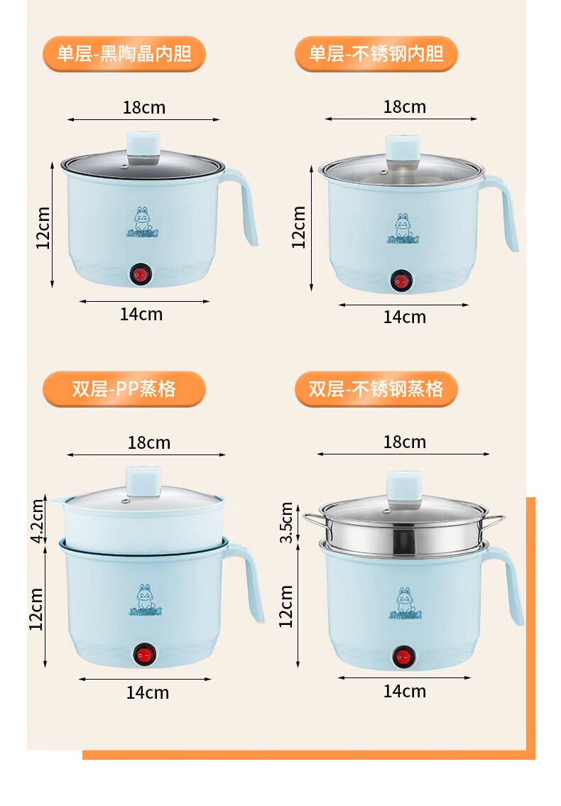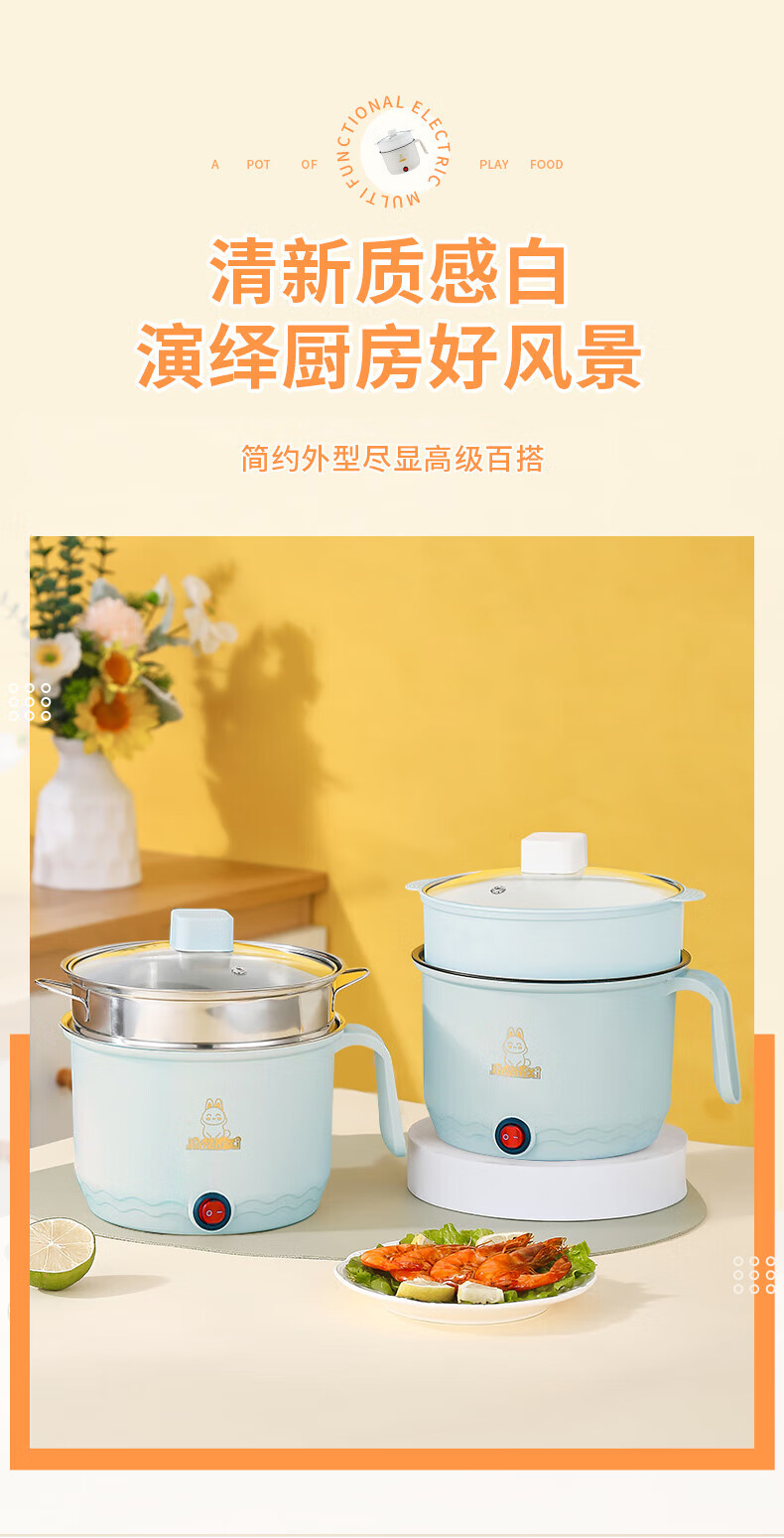 宿舍小电锅电饭煲一体学生家用多功能电炒锅蒸煮电热锅 升级防漏电【单锅】+长线+质保三年