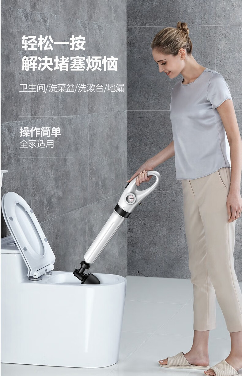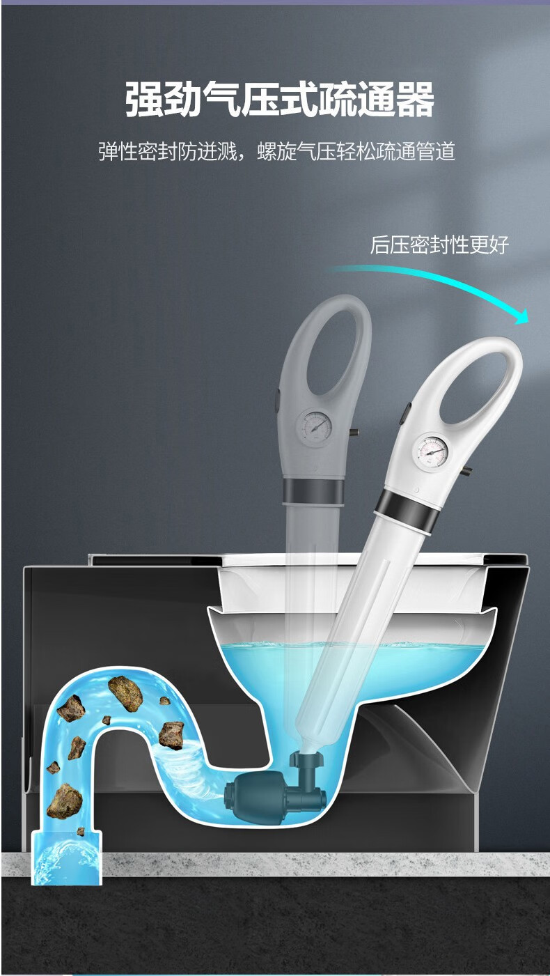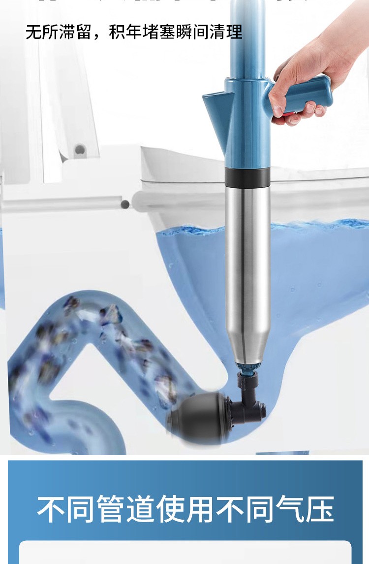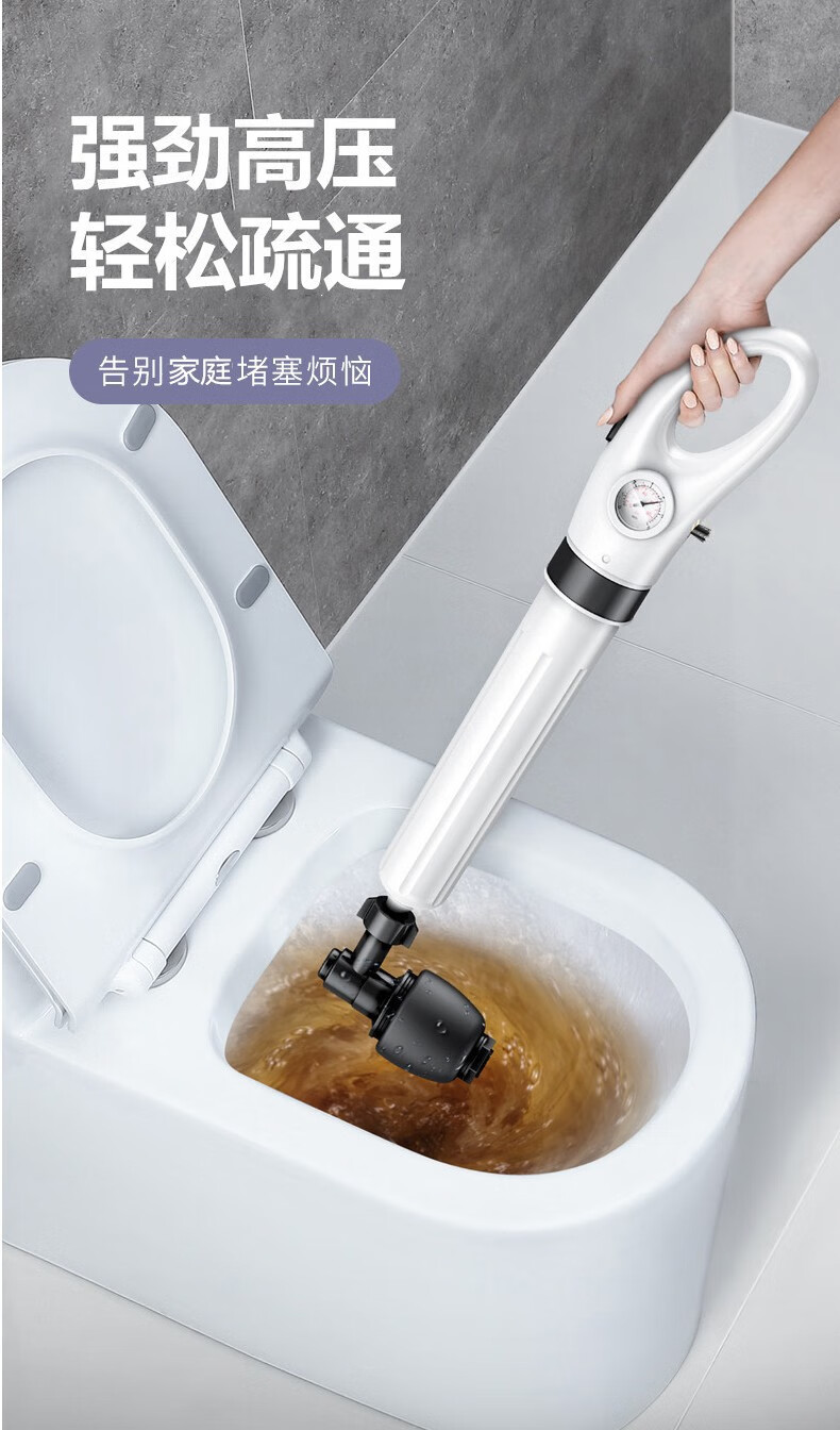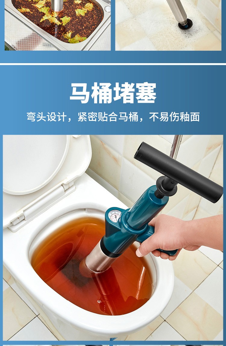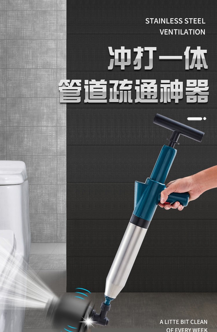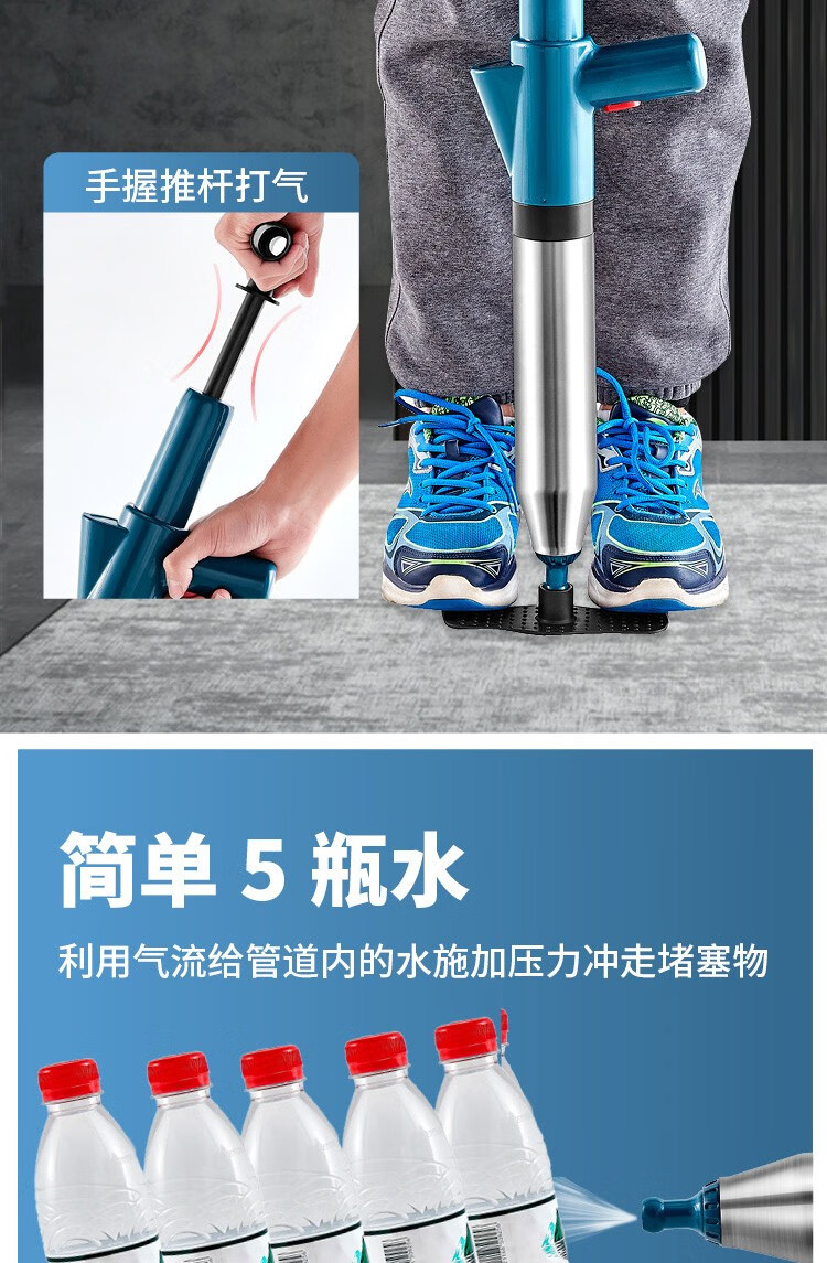 艾森林马桶疏通器通厕所通马桶神器下水道管道疏通器一体充打一炮通 新款28代不锈钢一体式