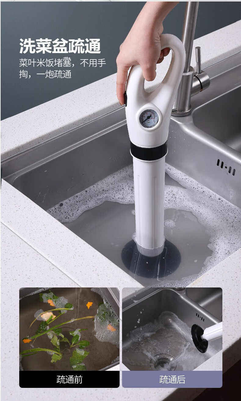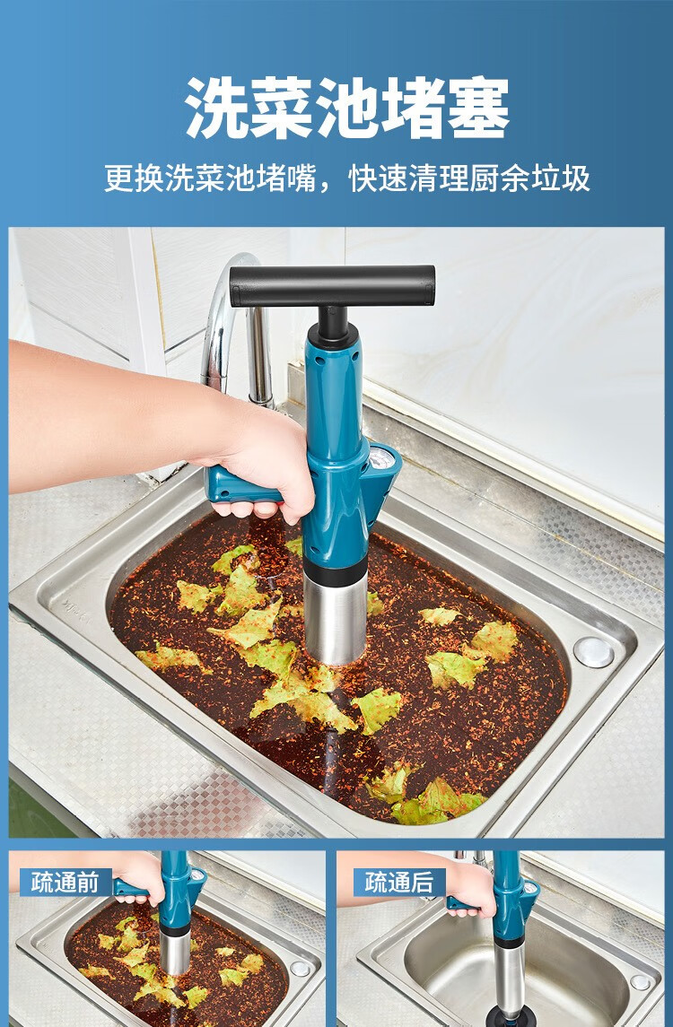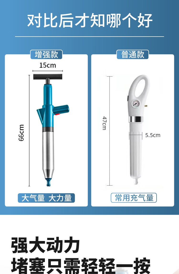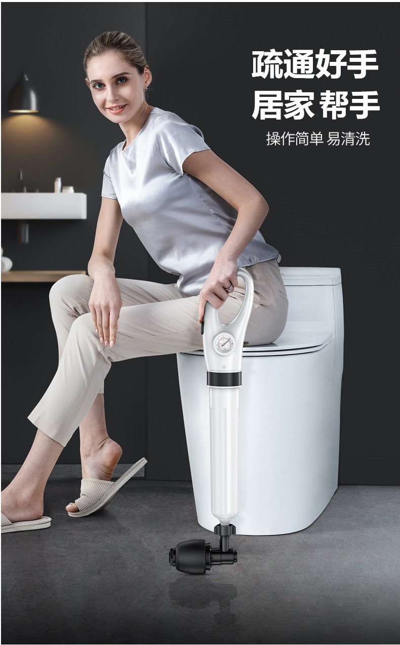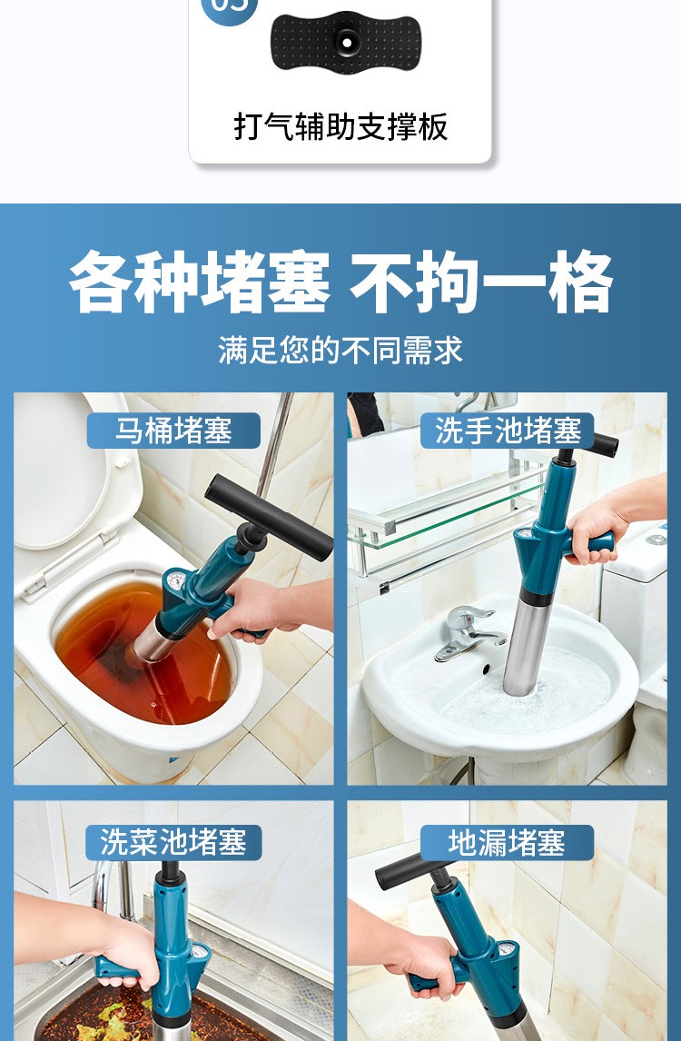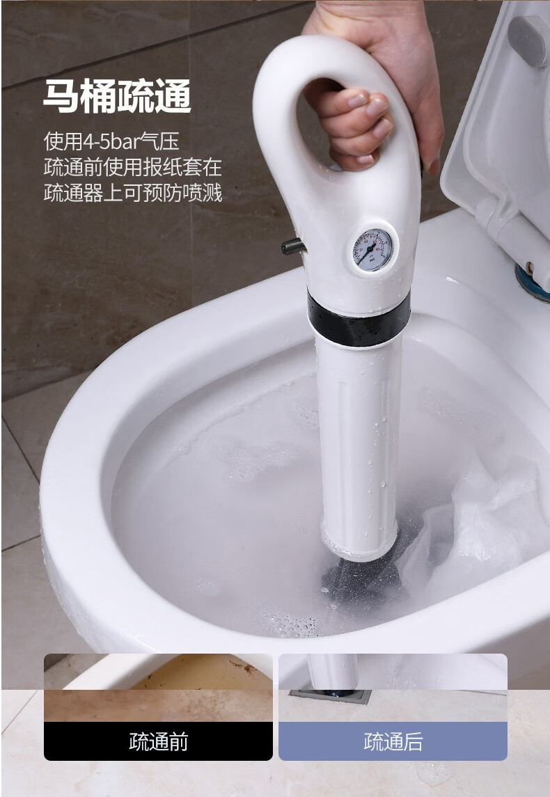 艾森林马桶疏通器通厕所通马桶神器下水道管道疏通器一体充打一炮通 新款28代不锈钢一体式