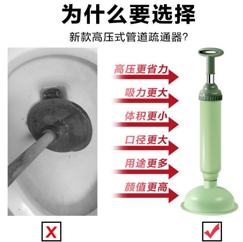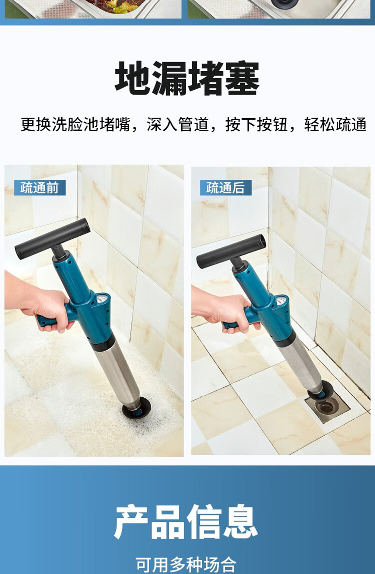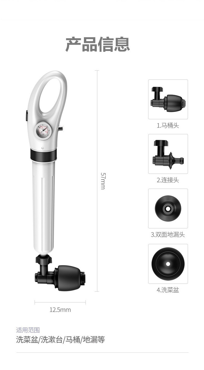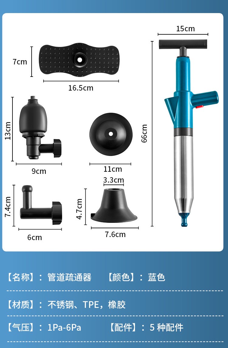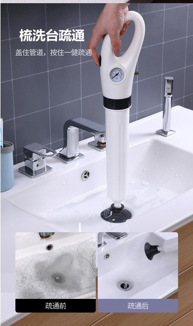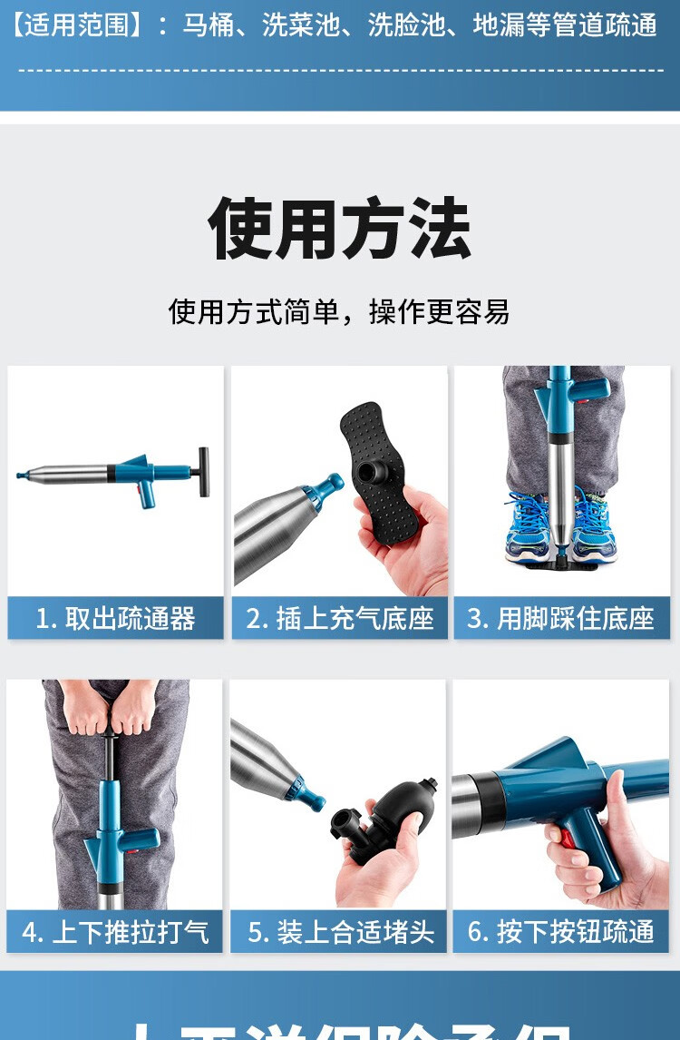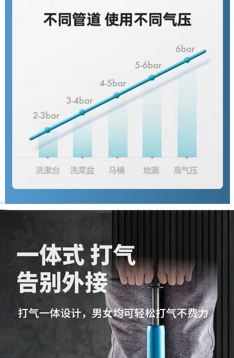 艾森林马桶疏通器通厕所通马桶神器下水道管道疏通器一体充打一炮通 新款28代不锈钢一体式