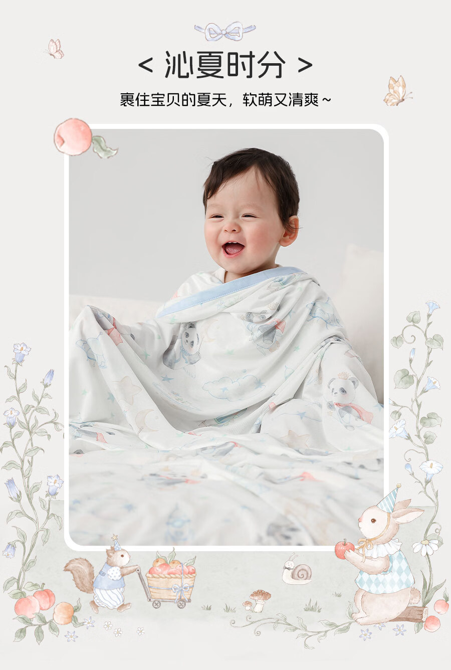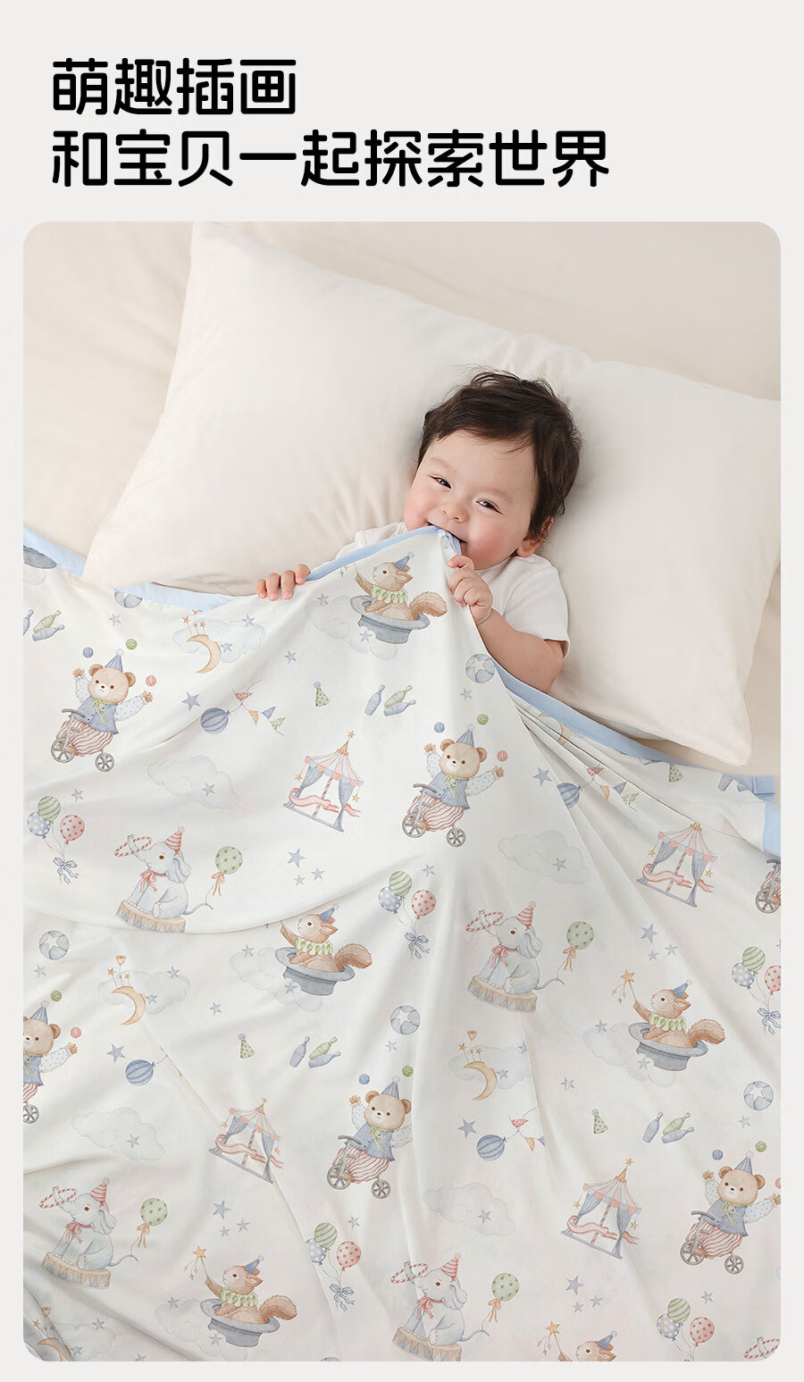 瑞福贝贝(Ruifubeibei)瑞福贝贝婴儿盖毯宝宝冰丝毯夏季薄款儿童空调被新生儿午睡毯凉被 马戏乐园-抗菌透气-凉而不冰-可机洗 120*150