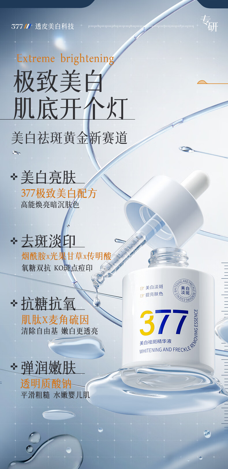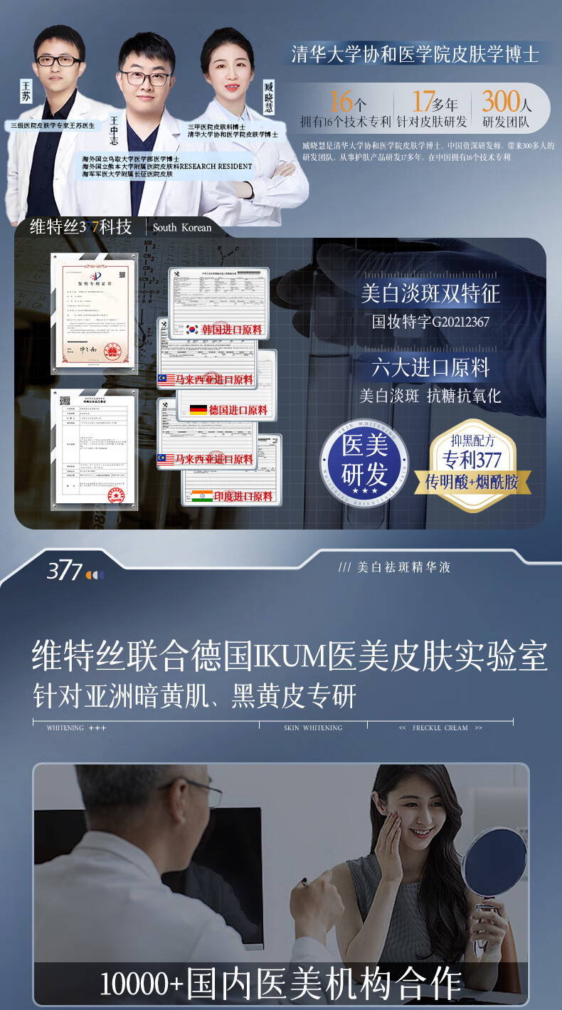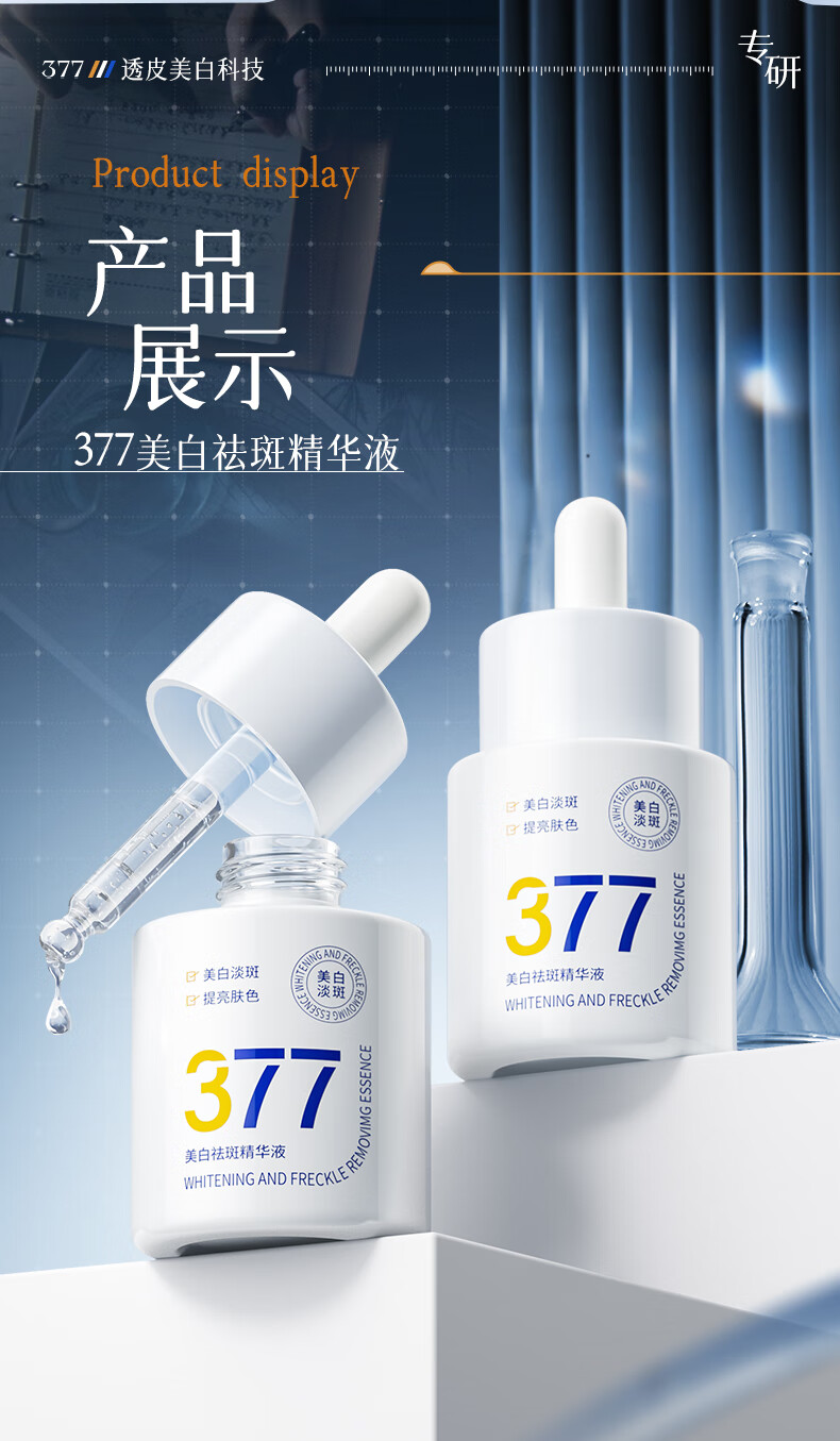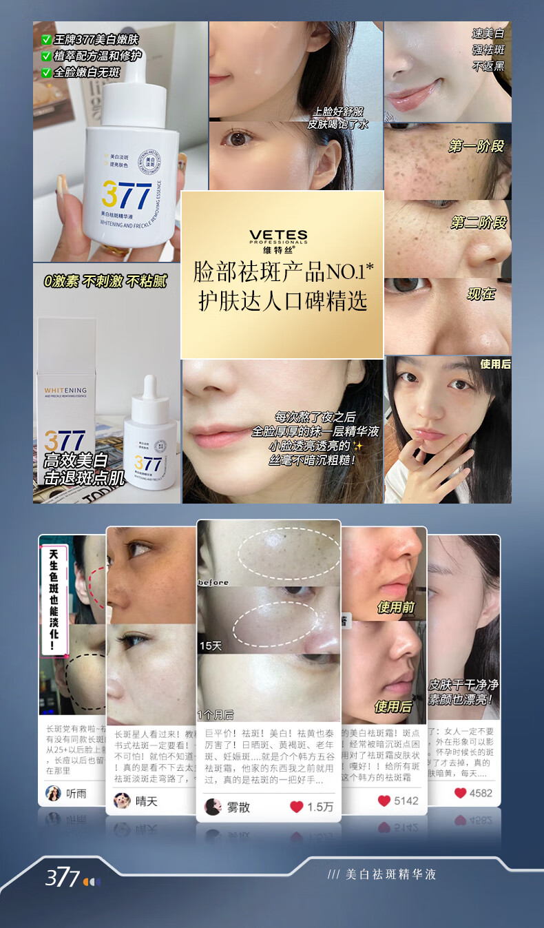 维特丝377精华美白祛斑提亮肤色淡化黑色素抗氧化改善暗沉熬夜抗皱紧致 【告别黑黄皮斑点肌】1周抛光肌