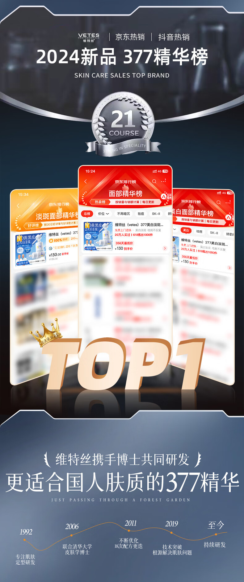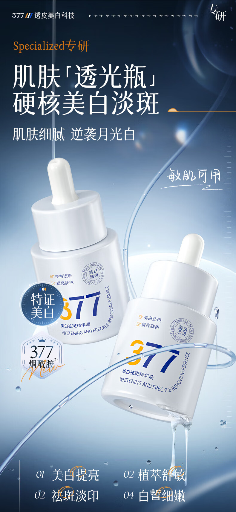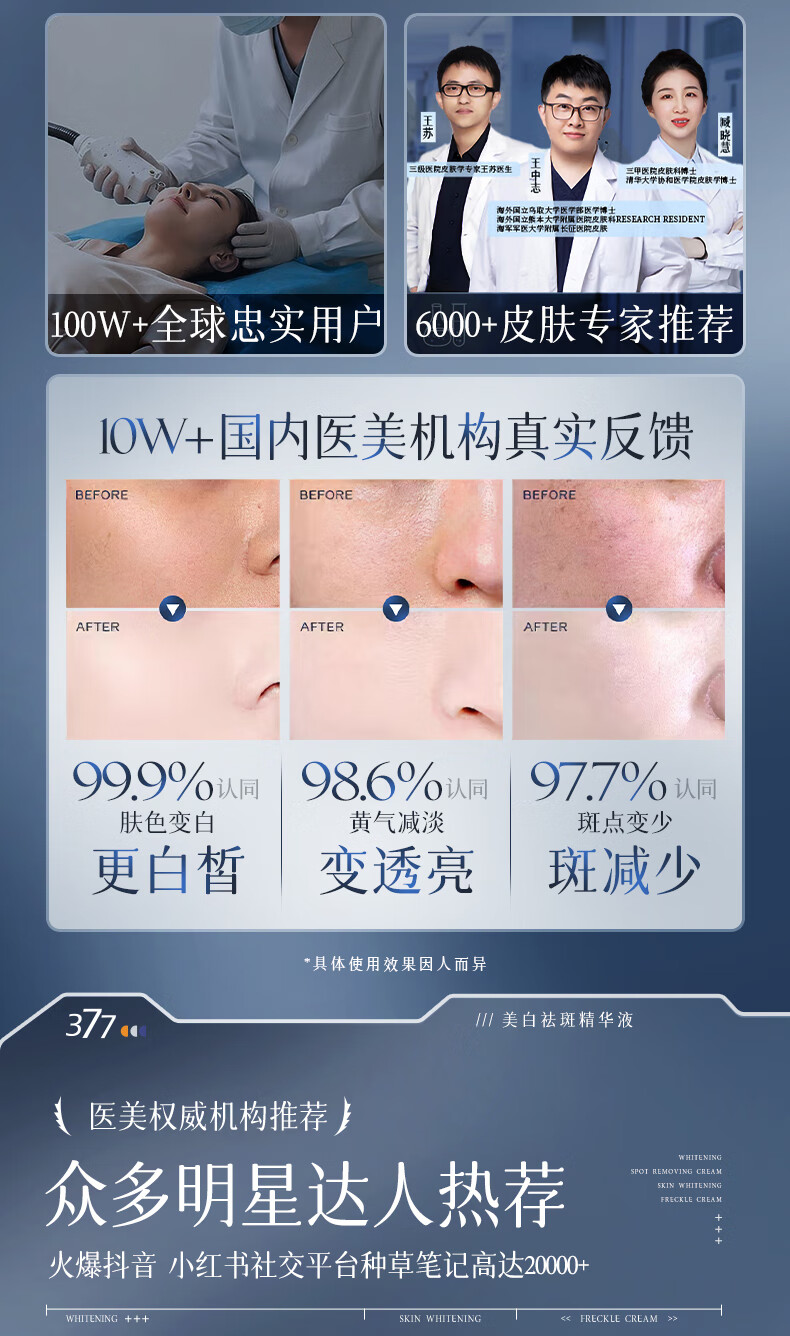 维特丝377精华美白祛斑提亮肤色淡化黑色素抗氧化改善暗沉熬夜抗皱紧致 【告别黑黄皮斑点肌】1周抛光肌