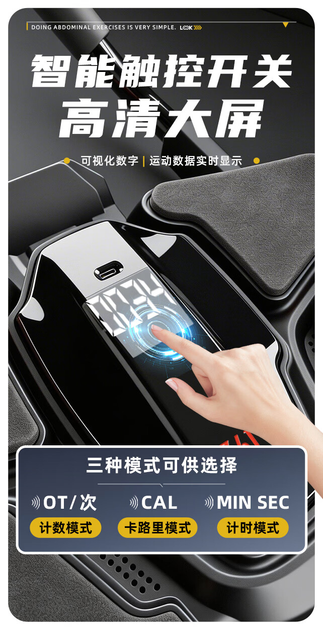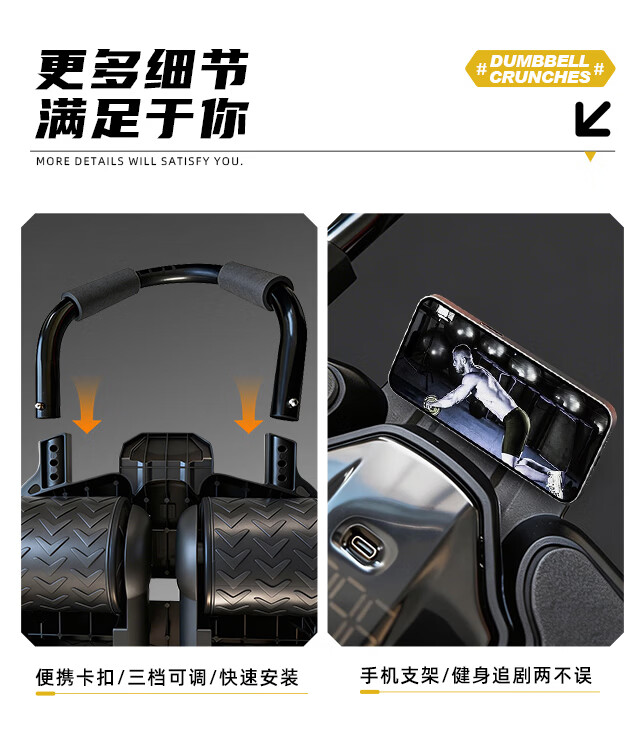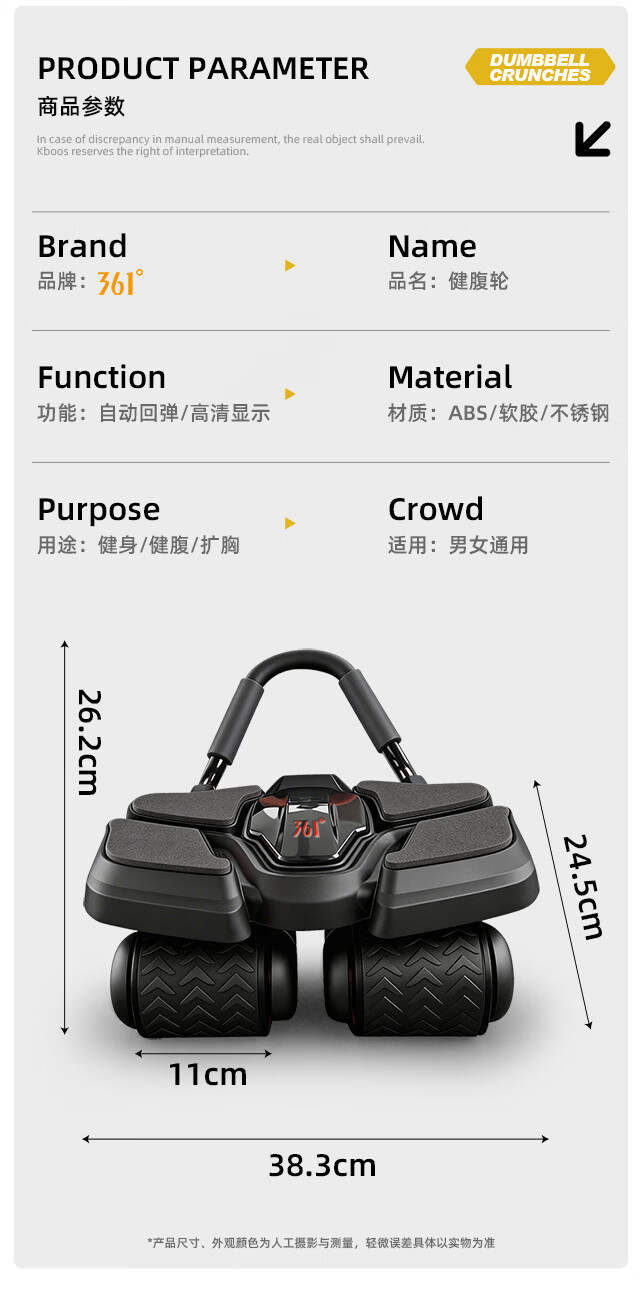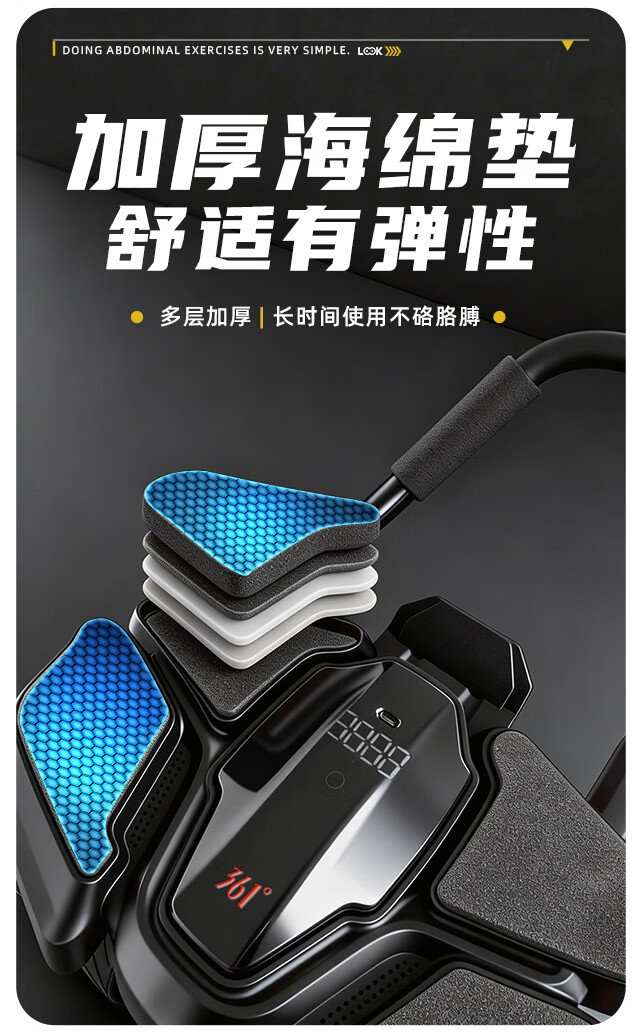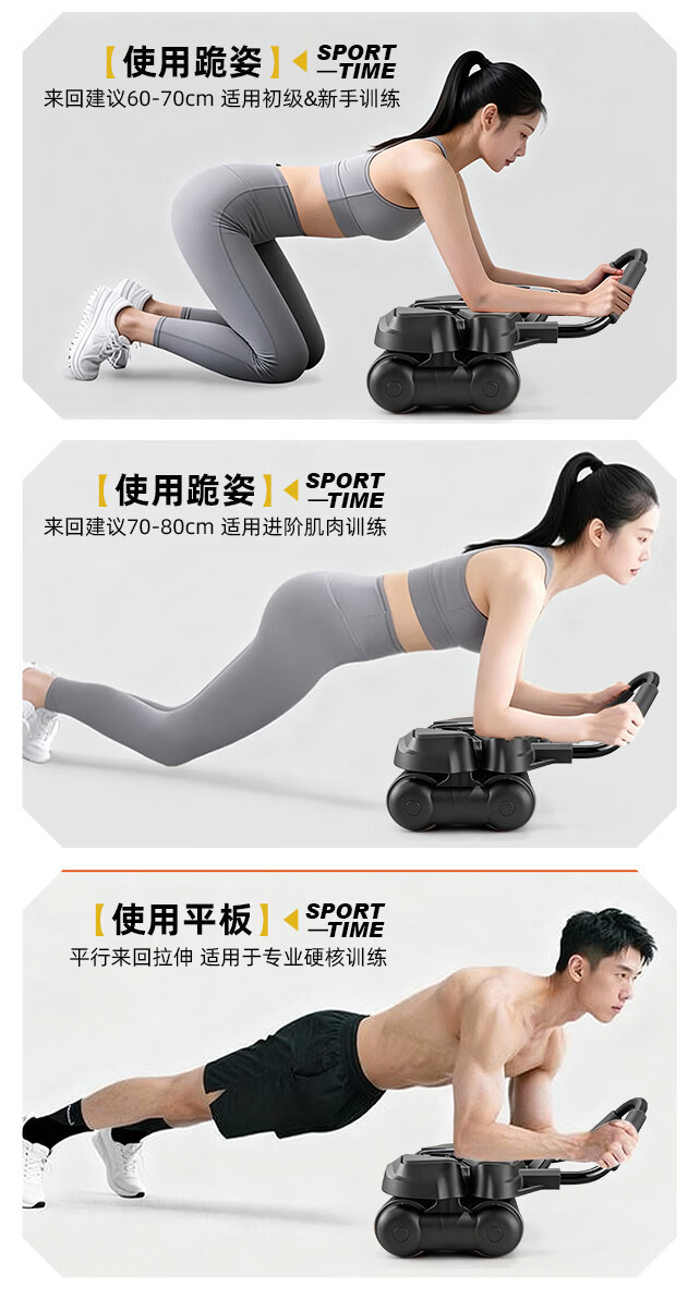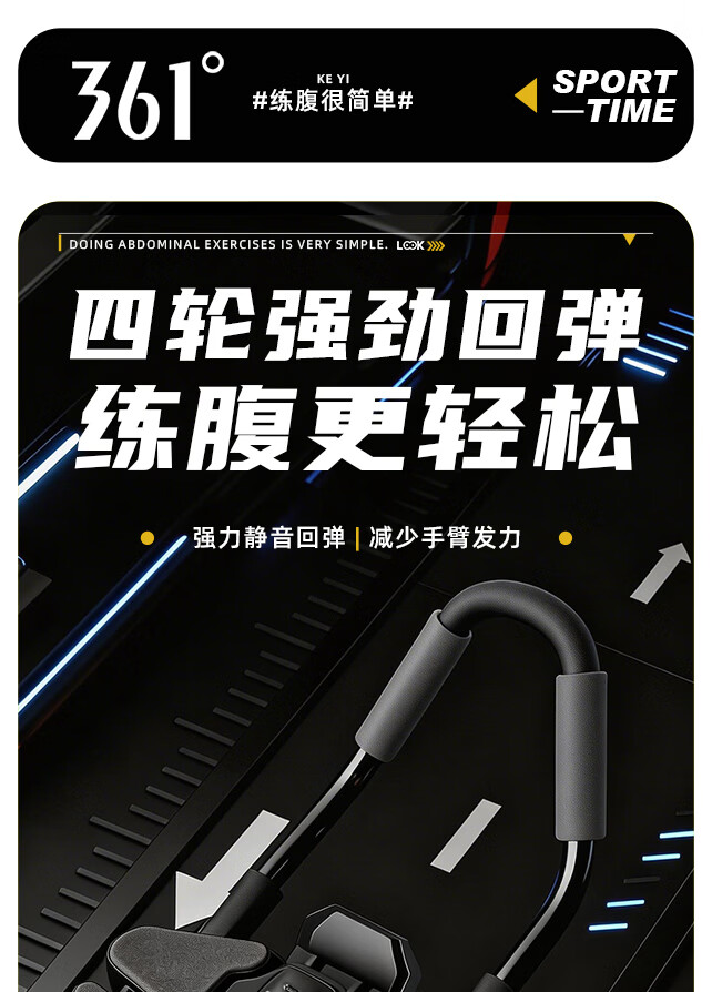 361°健腹轮自动回弹肘撑四轮健身运动器材腹肌训练器瘦肚子收腹练腹肌 特大黑色【智能数显+自动回弹】(送跪垫)