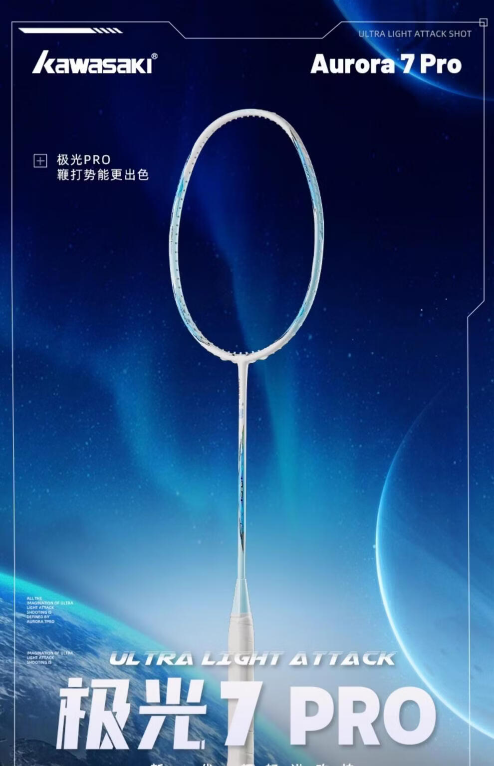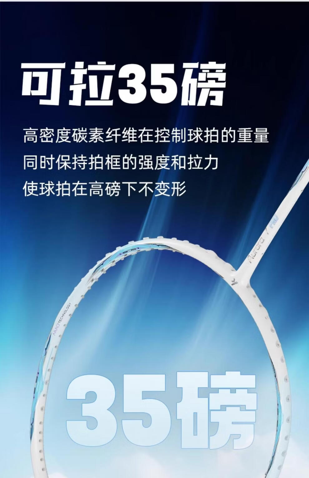 何佳功羽毛球拍碳素纤维5U超轻男女学生初学单拍训练拍 极光7白蓝【粉色线 线】 默认穿好川崎KS9高弹线 线