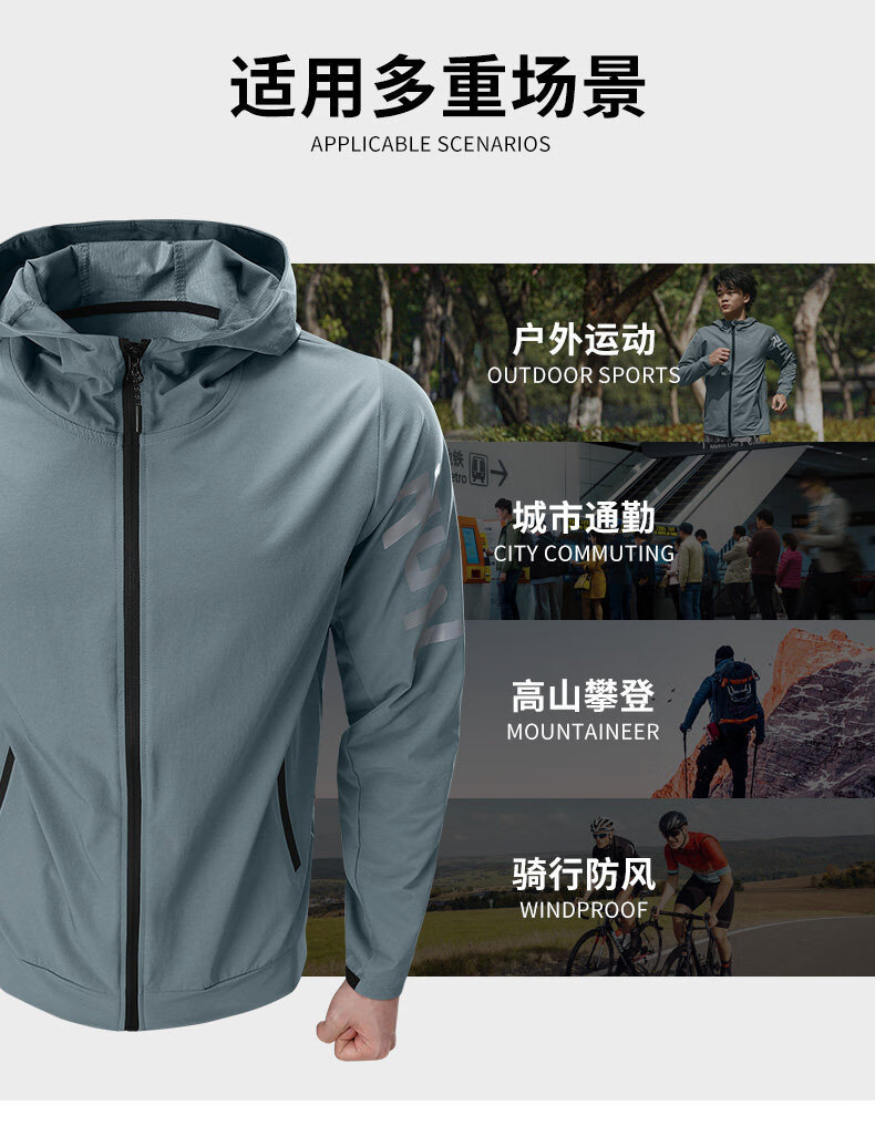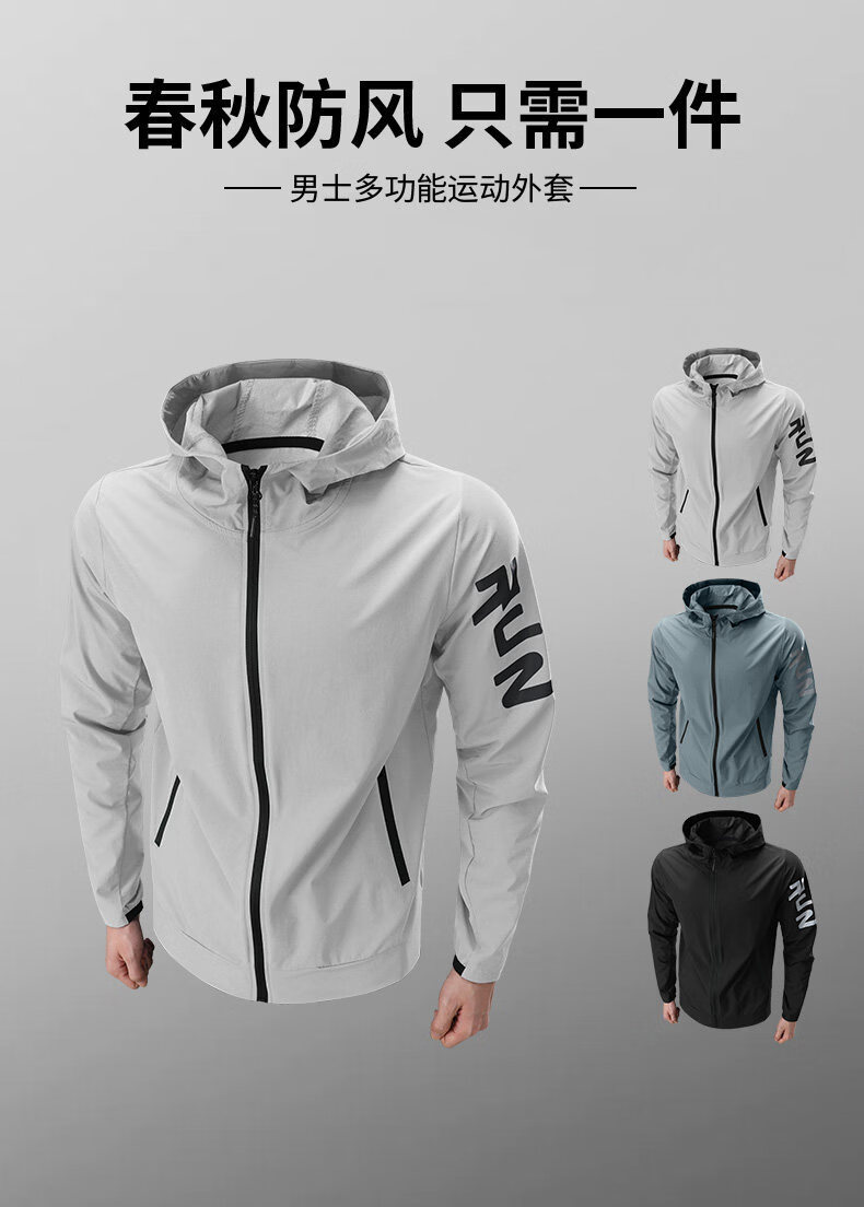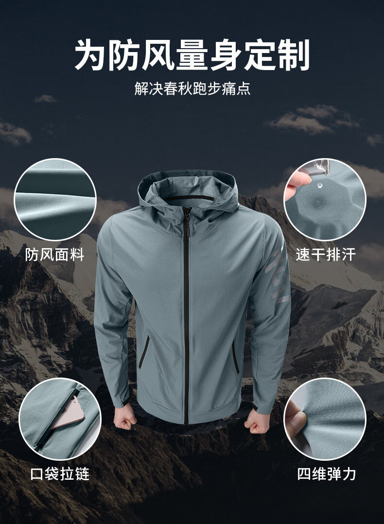 运动外套男薄款单层健身风衣防风训练上衣跑步服速干户外骑行新款 J91绿 【薄款防风】 XL 【120-140斤】
