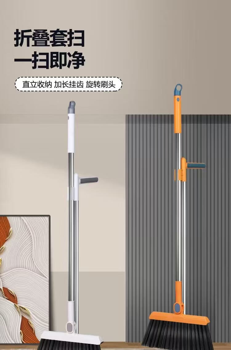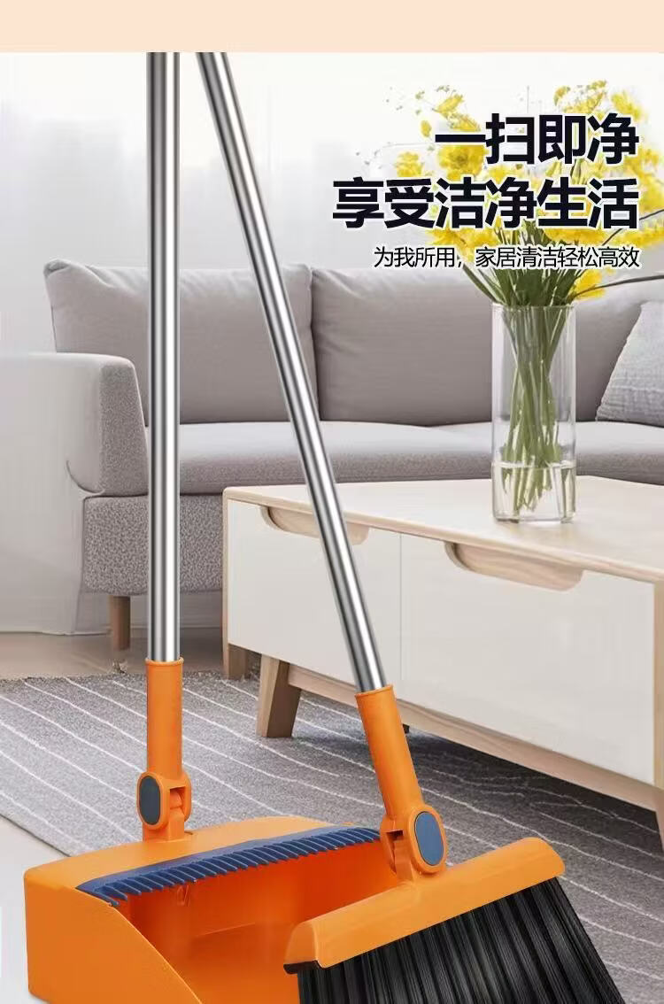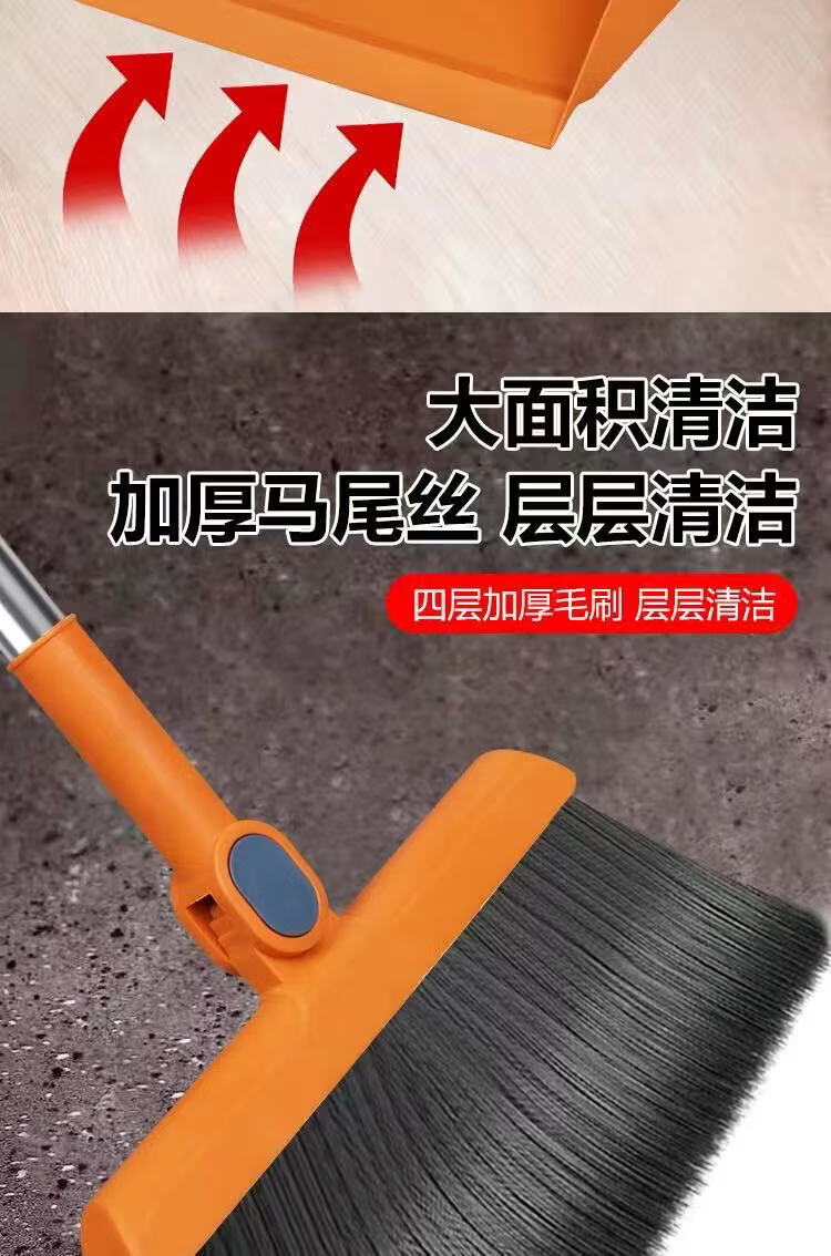 洋臣扫把加厚套装加大家用折叠笤帚扫帚簸箕组合旋转软毛头发扫地 扫把簸箕1套【颜色随机】