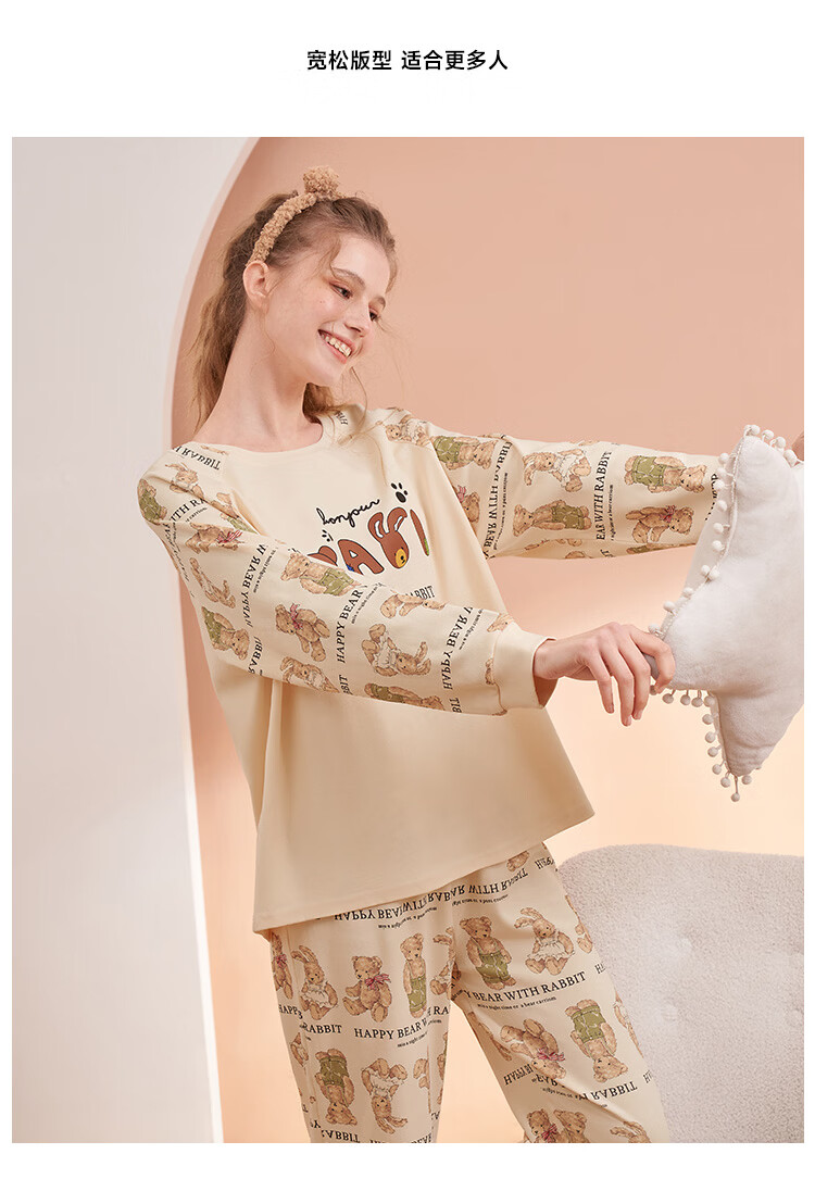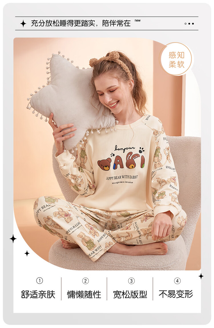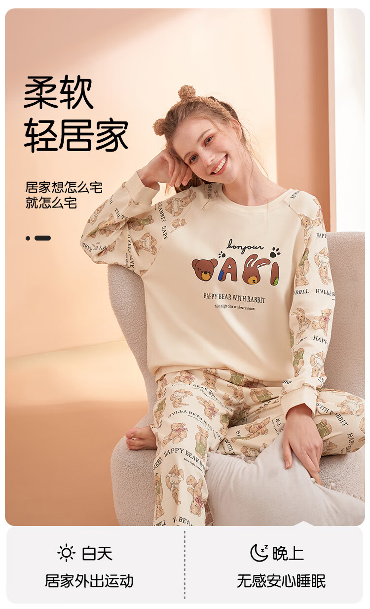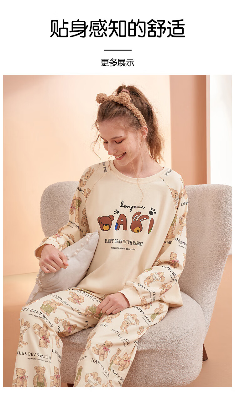 香蜜闺秀GOSO睡衣女舒适柔软棉质可外穿家居服女士亲肤睡衣套装 2333112蓝色 孕哺睡衣 XL 170