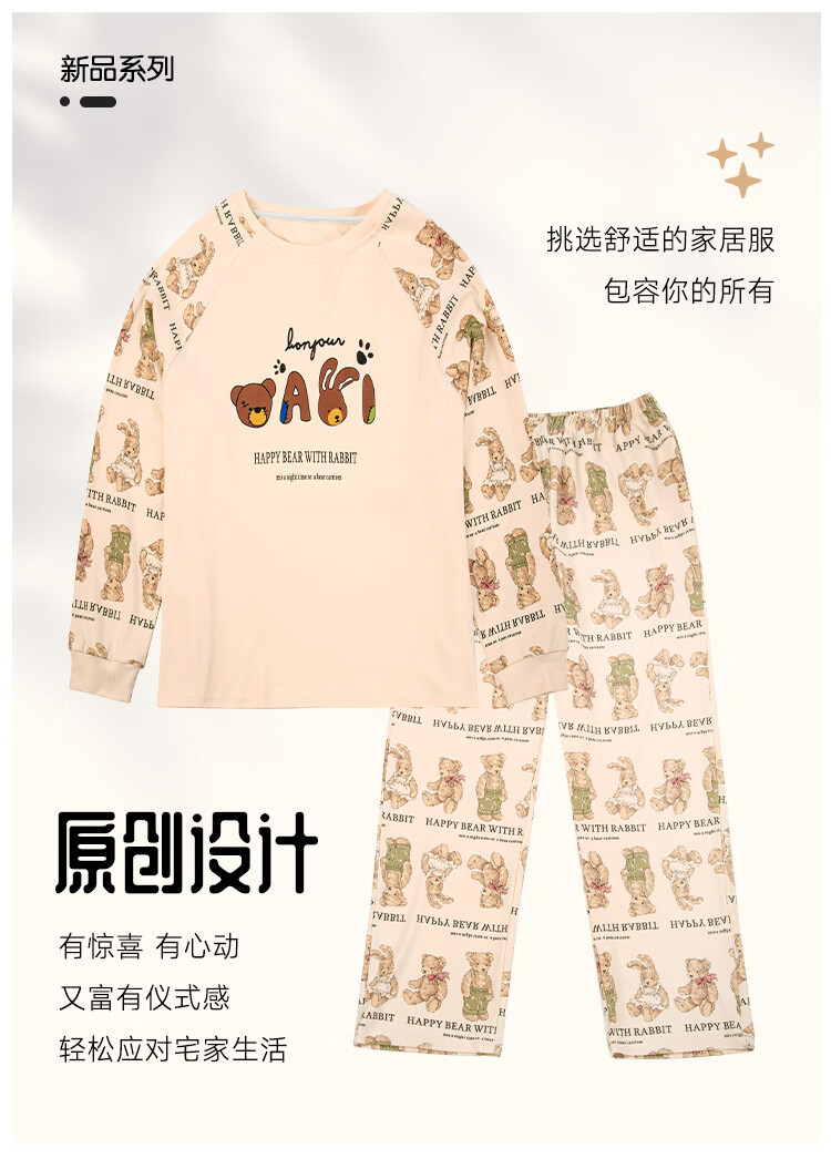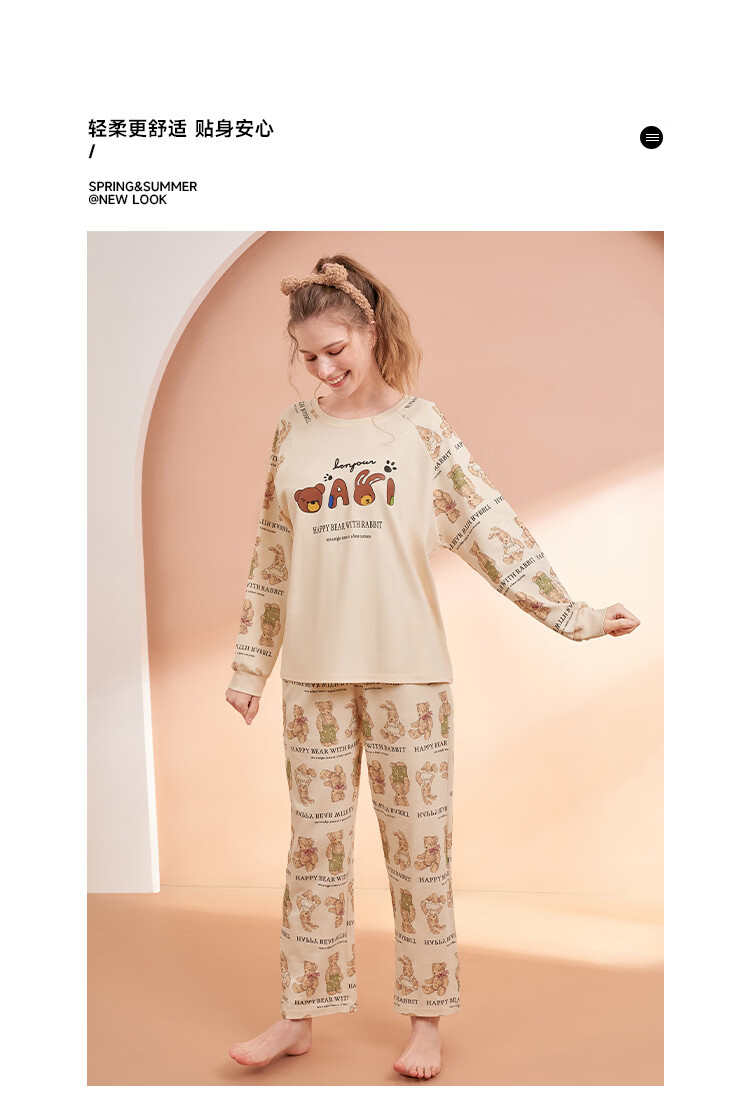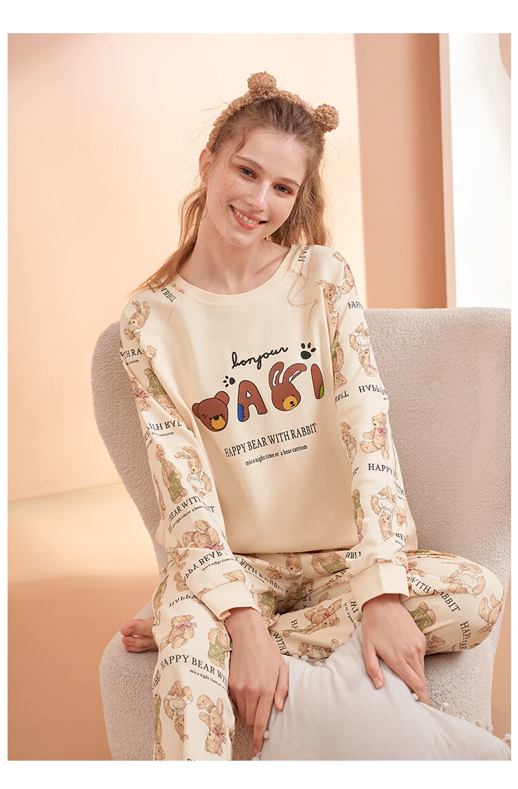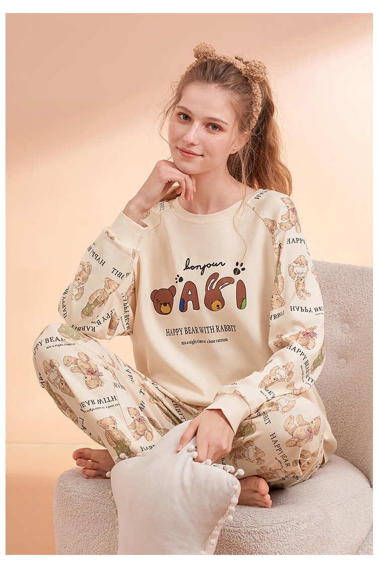香蜜闺秀GOSO睡衣女舒适柔软棉质可外穿家居服女士亲肤睡衣套装 2333112蓝色 孕哺睡衣 XL 170