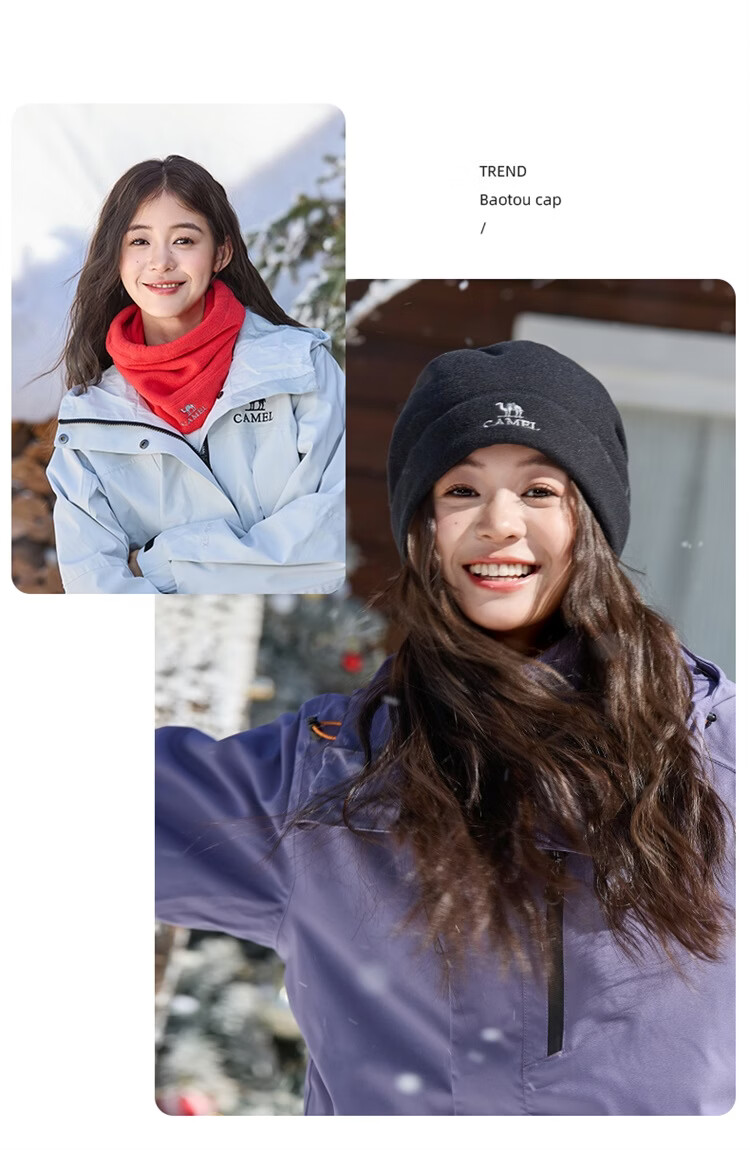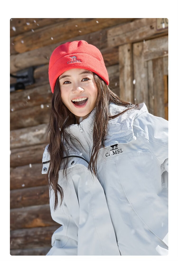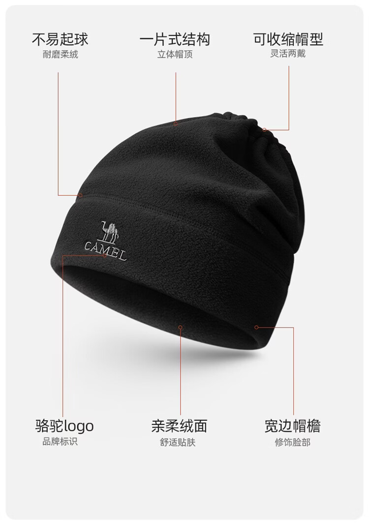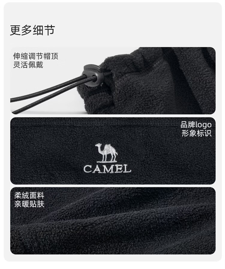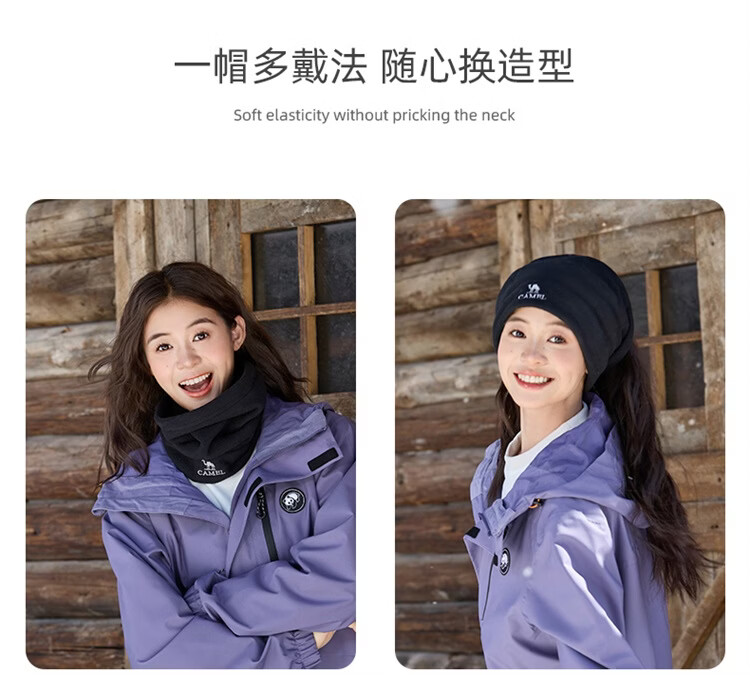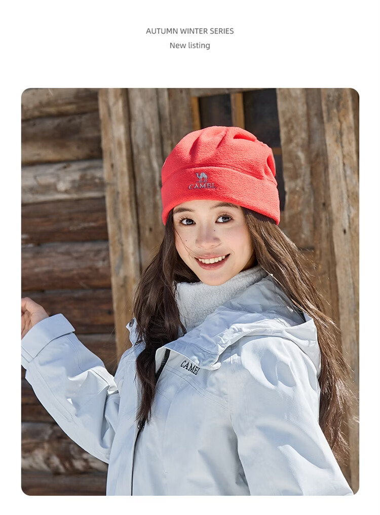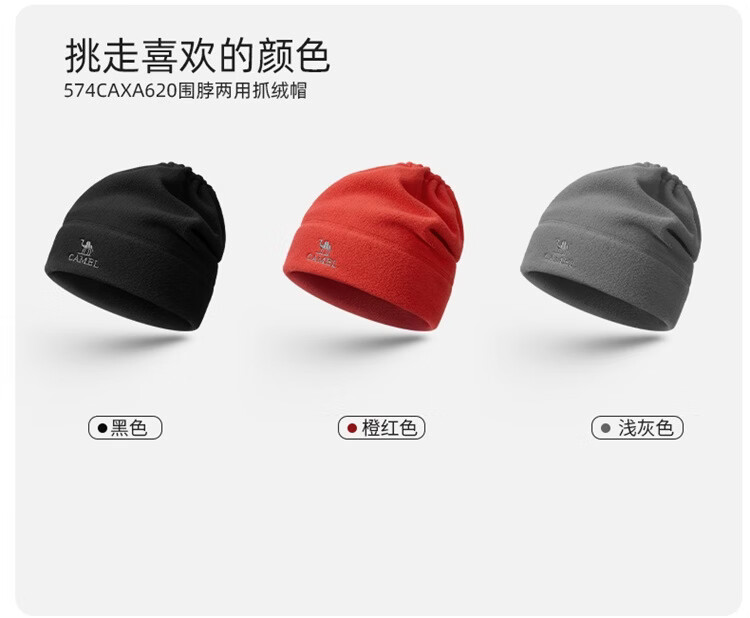 骆驼(CAMEL)抓绒帽子围脖两用秋冬新款加厚保暖防风冷帽大头围包头帽 574CAXA620-橙红色