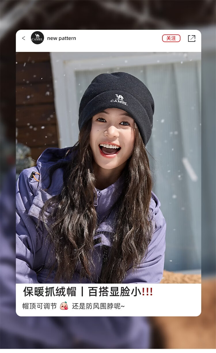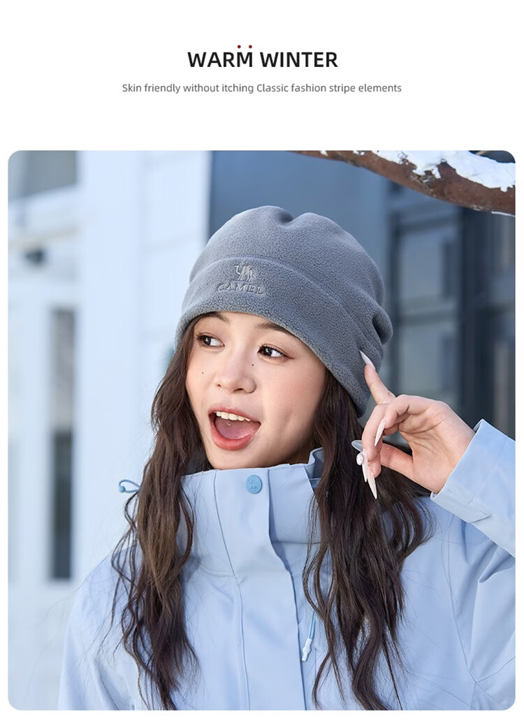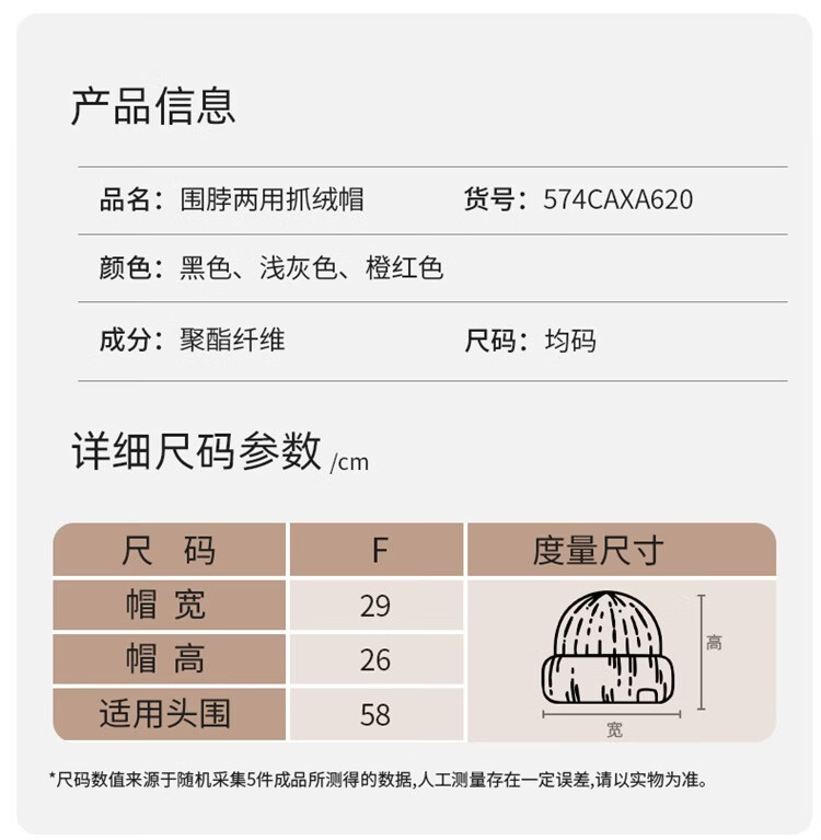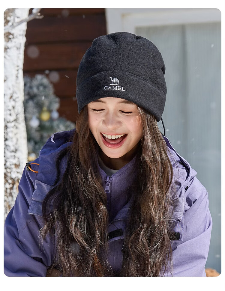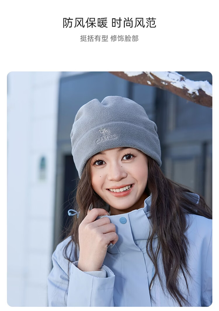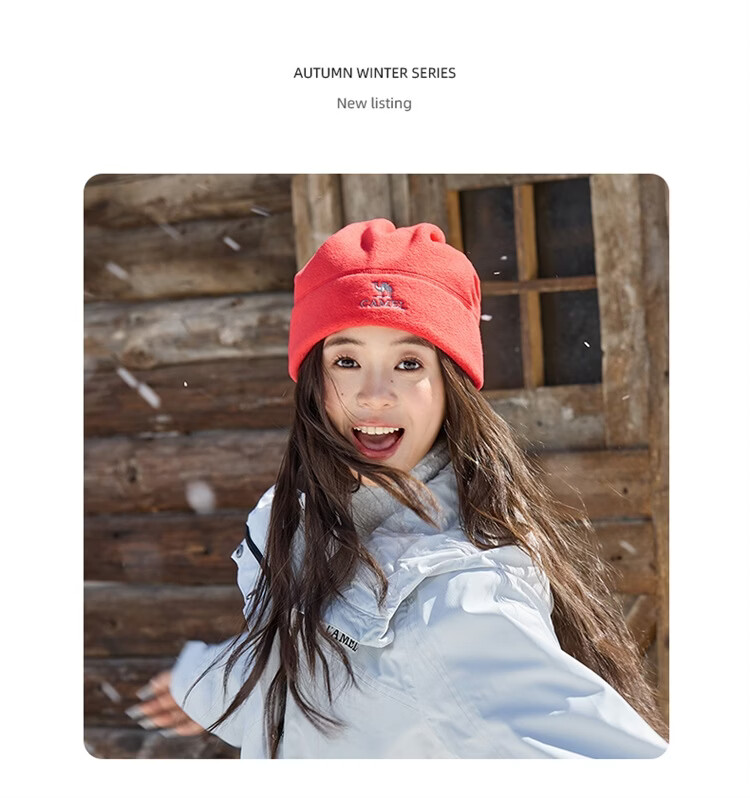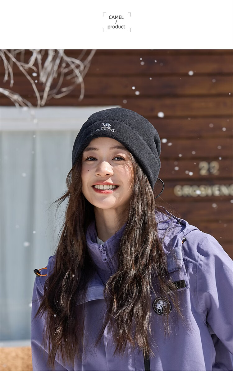 骆驼(CAMEL)抓绒帽子围脖两用秋冬新款加厚保暖防风冷帽大头围包头帽 574CAXA620-橙红色