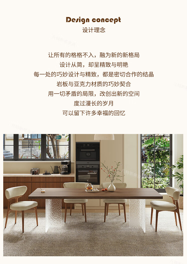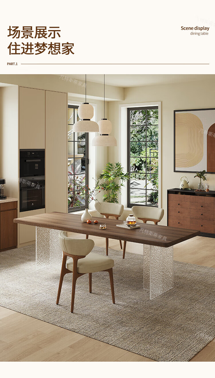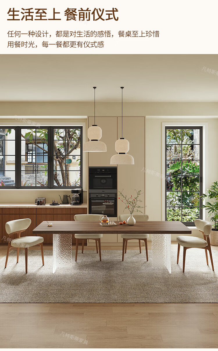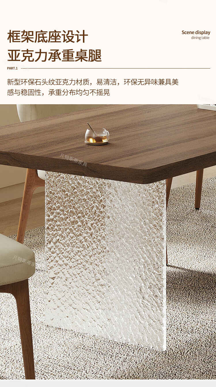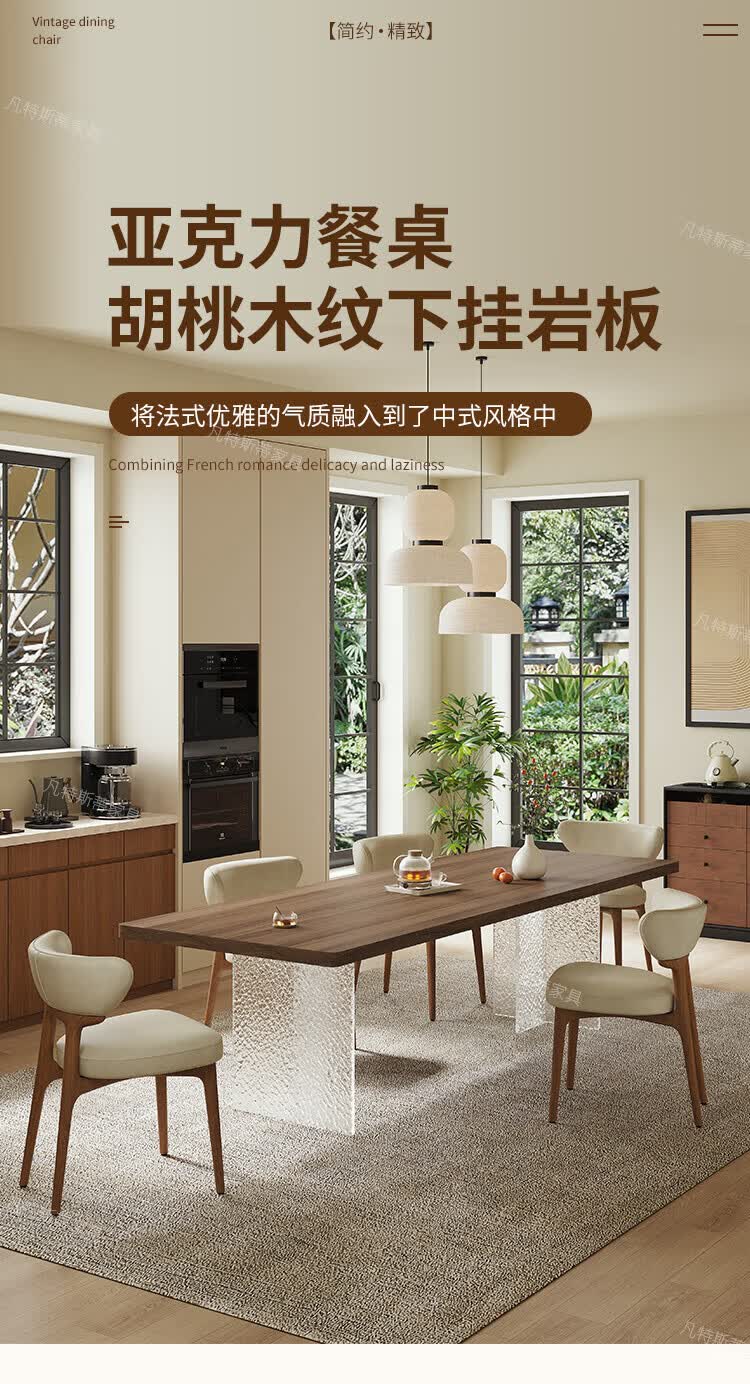 凡特斯蒂法式中古风悬浮实木餐桌家用小户型水波纹亚克力长方形岩板饭桌子 单餐桌 180cm *90cm*75cm