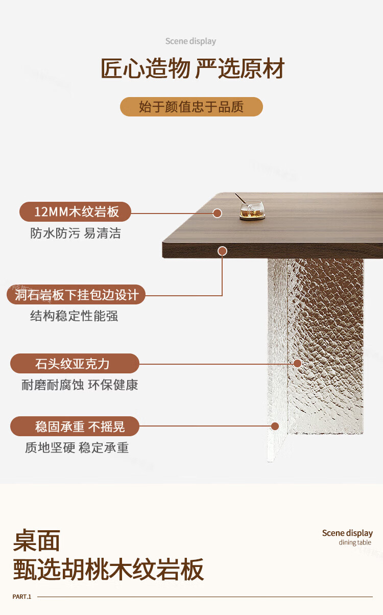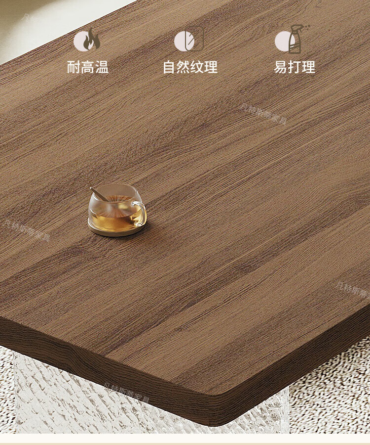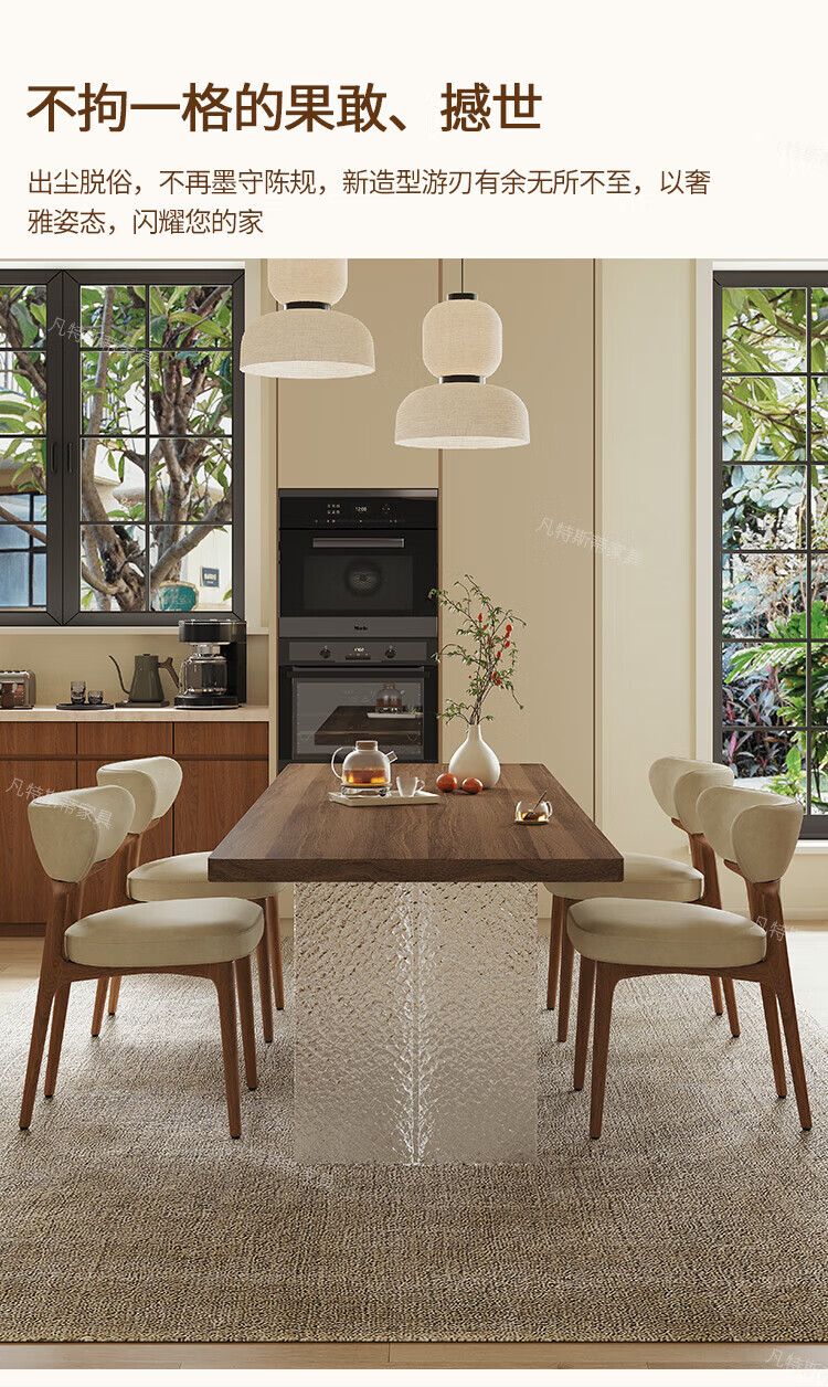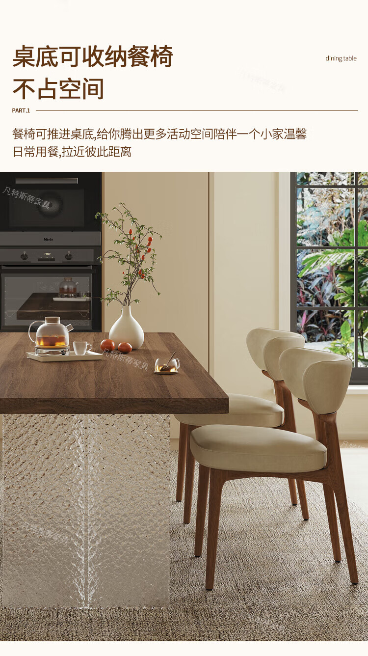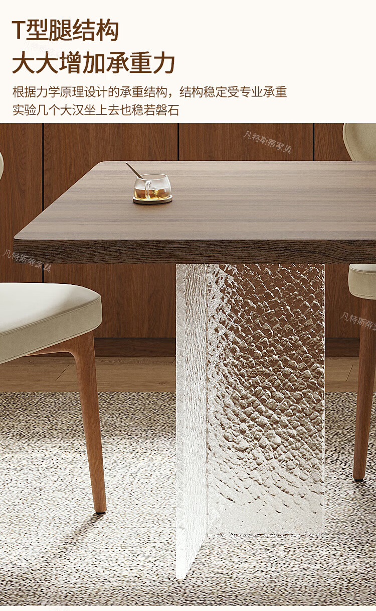 凡特斯蒂法式中古风悬浮实木餐桌家用小户型水波纹亚克力长方形岩板饭桌子 单餐桌 180cm *90cm*75cm
