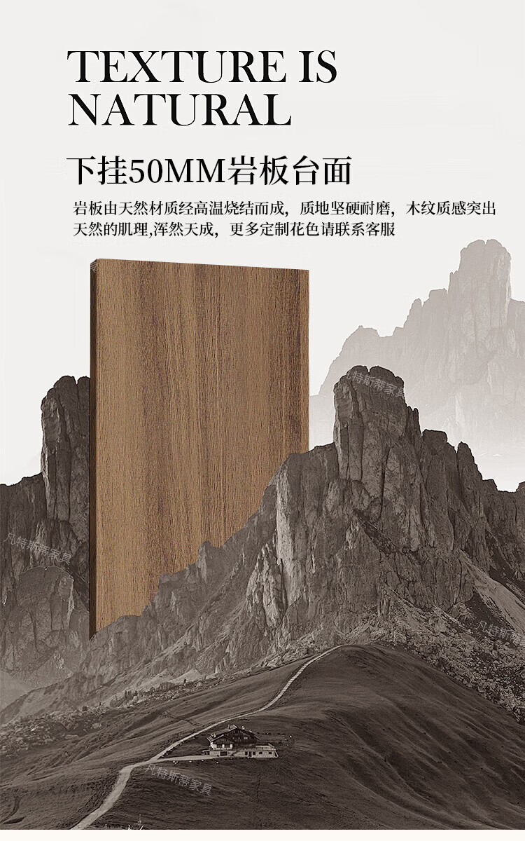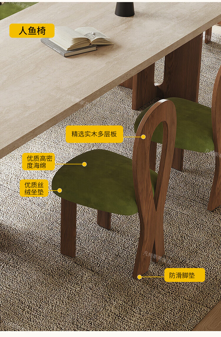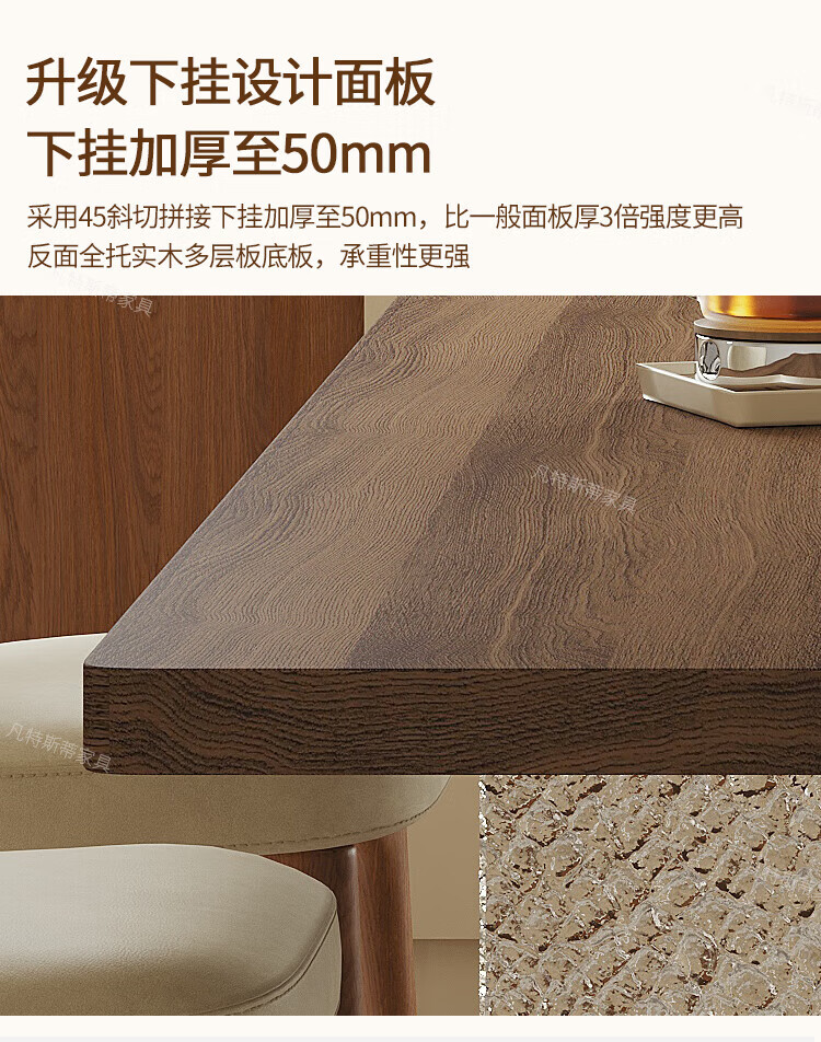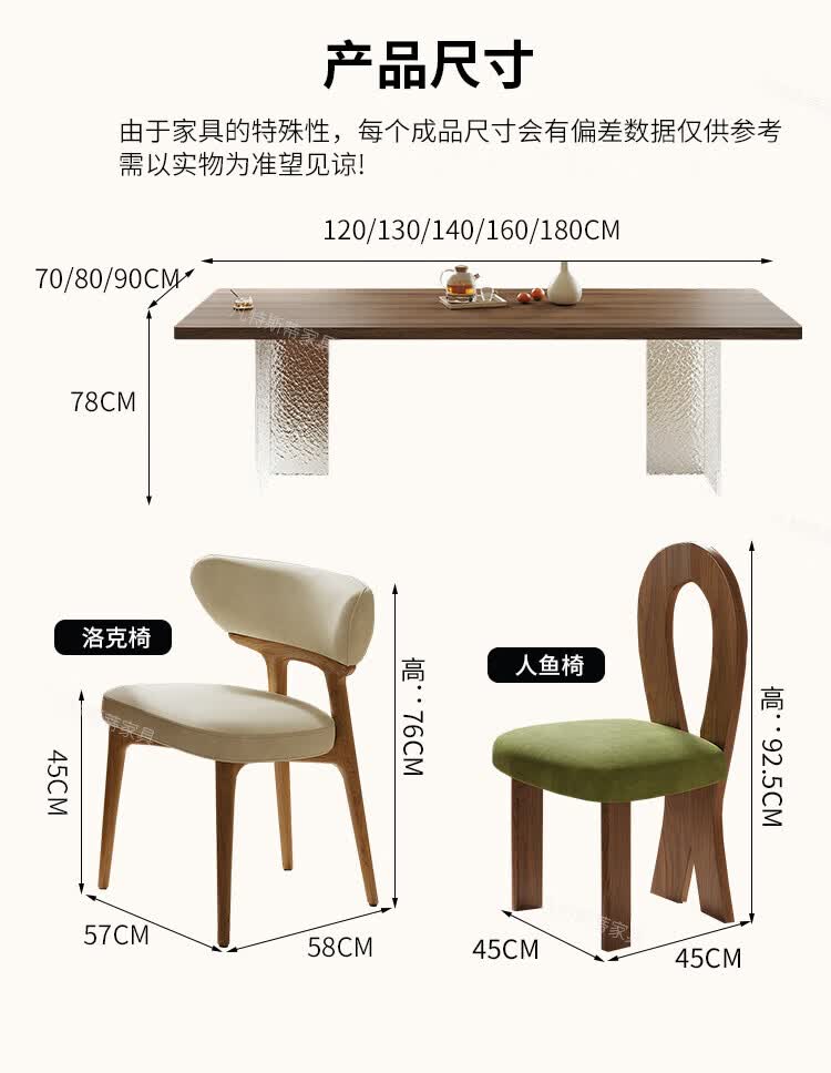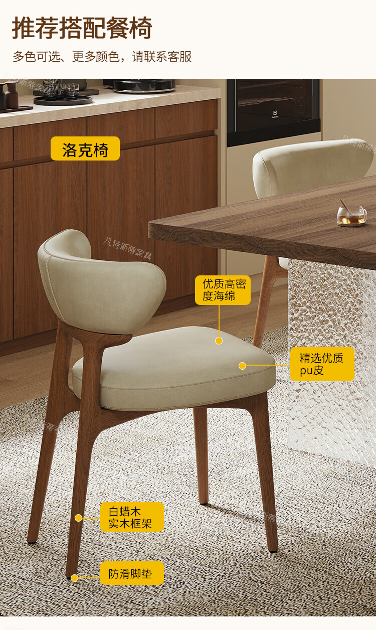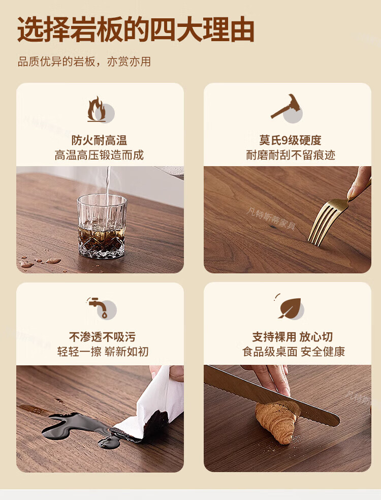 凡特斯蒂法式中古风悬浮实木餐桌家用小户型水波纹亚克力长方形岩板饭桌子 单餐桌 180cm *90cm*75cm