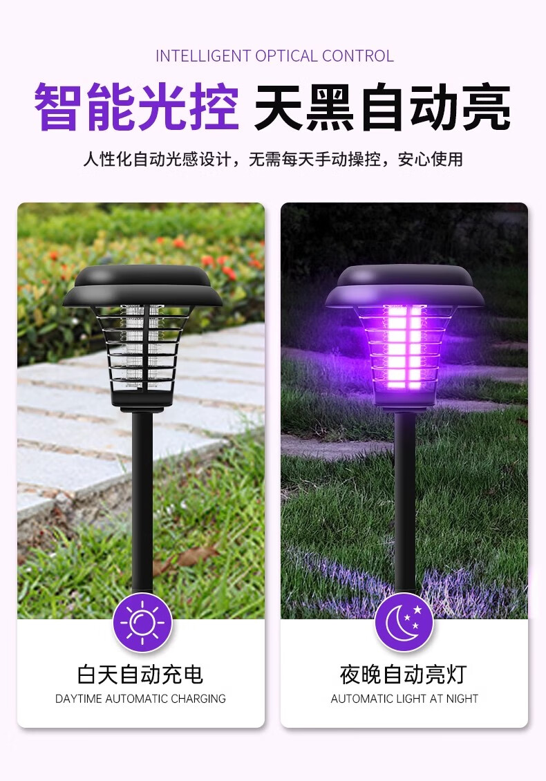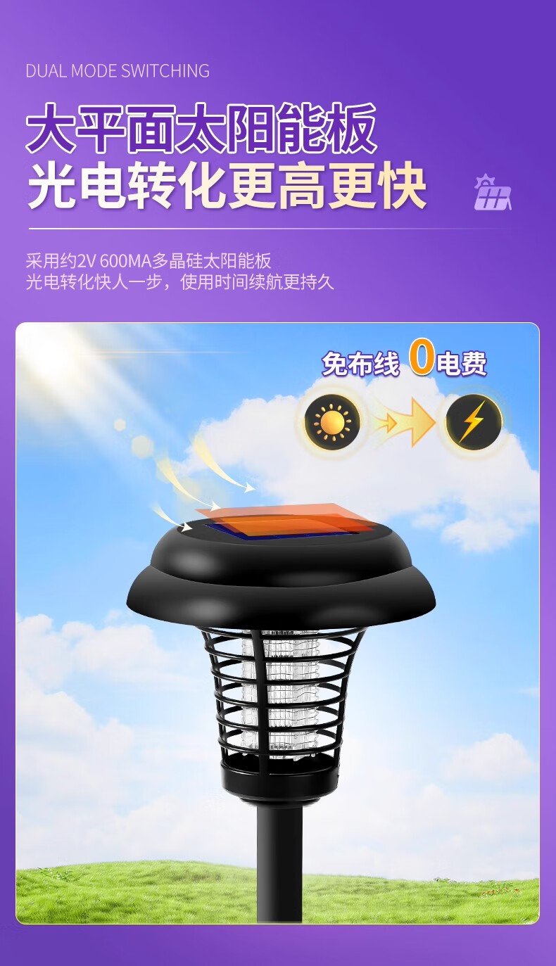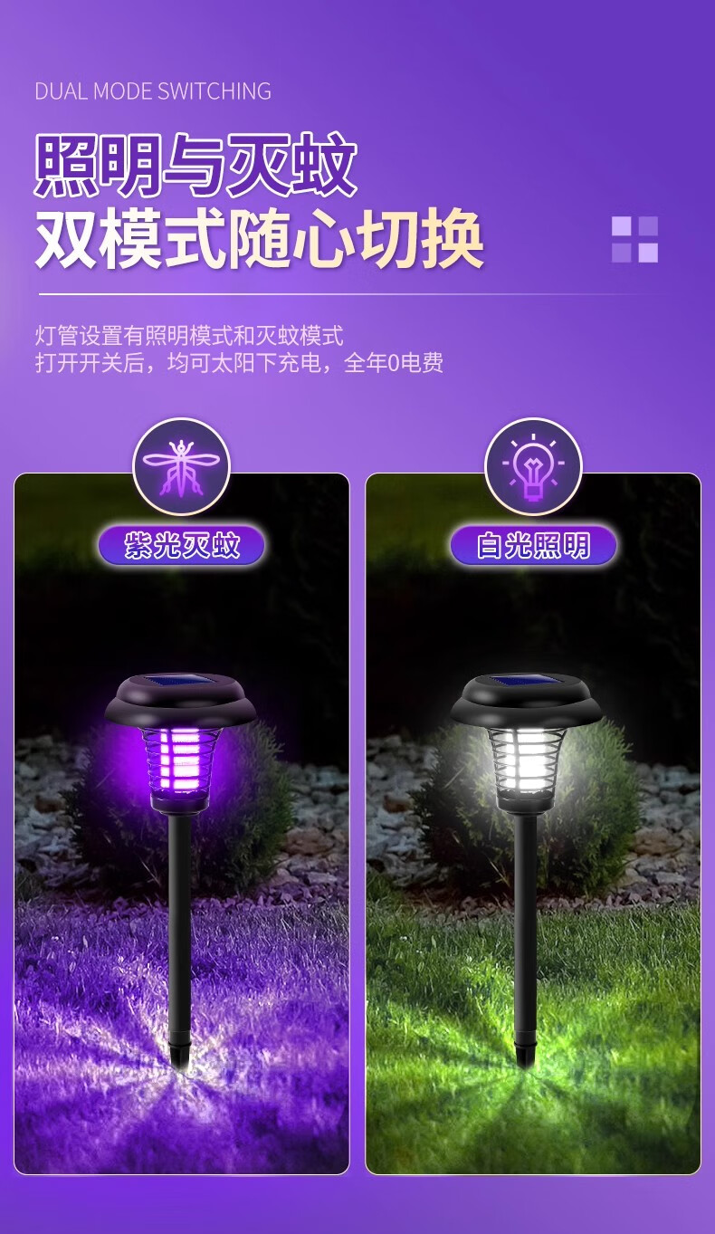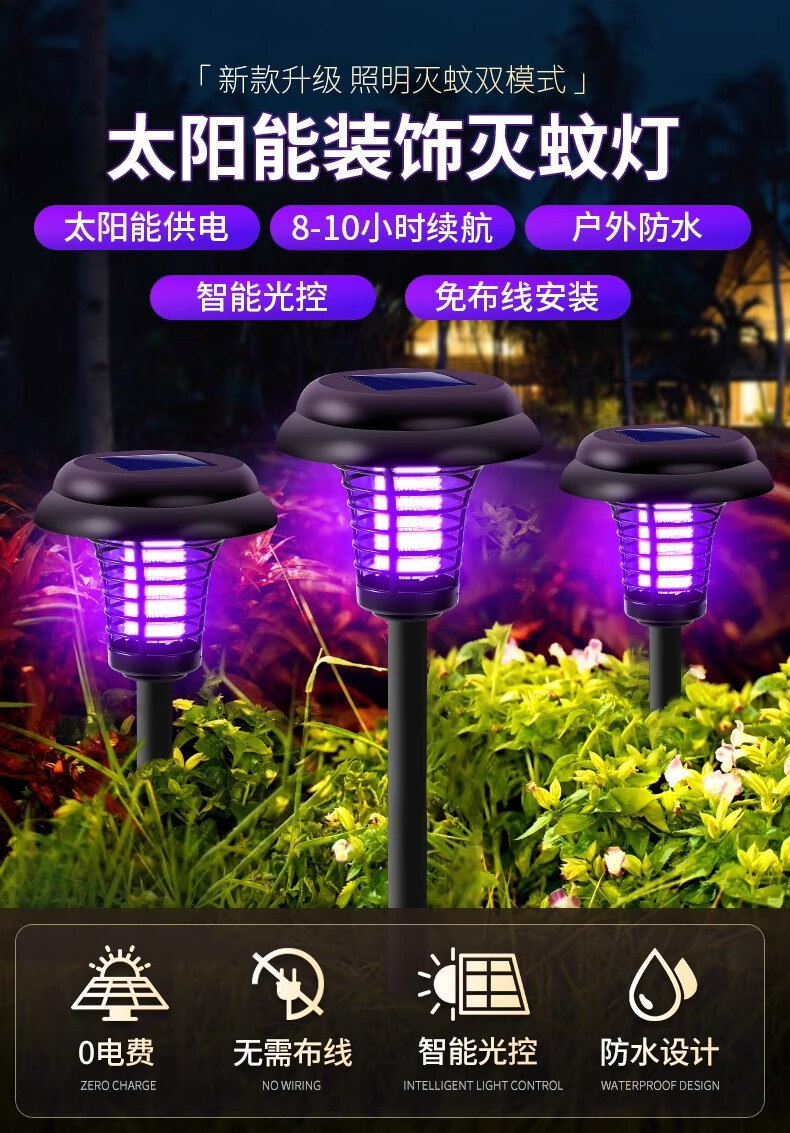 锐洲2026新款太阳能灭蚊灯蚊子诱捕神器室外驱蚊灯庭院花园户外灭虫灯 太阳能灭蚊灯【超值2个装】