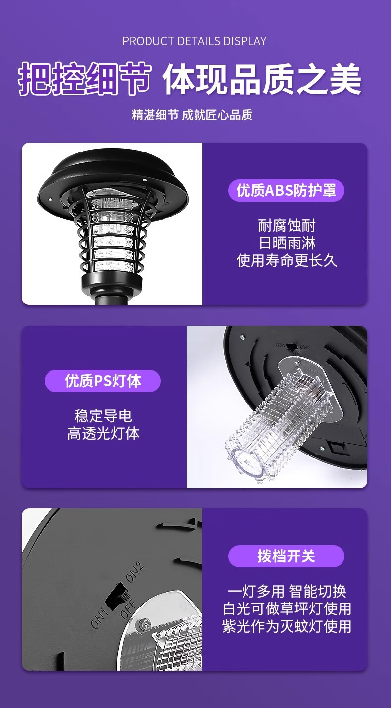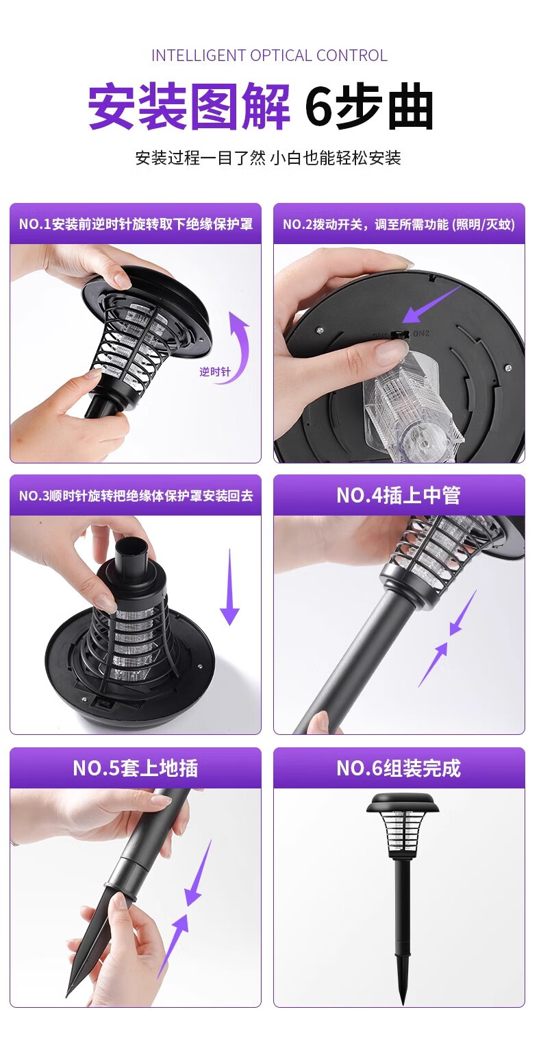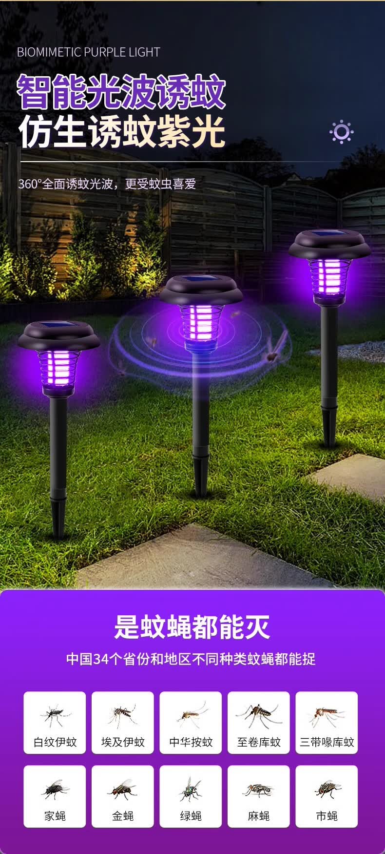 锐洲2026新款太阳能灭蚊灯蚊子诱捕神器室外驱蚊灯庭院花园户外灭虫灯 太阳能灭蚊灯【超值2个装】