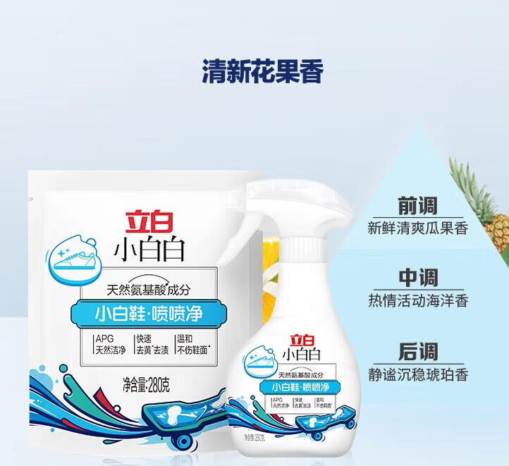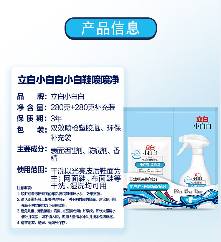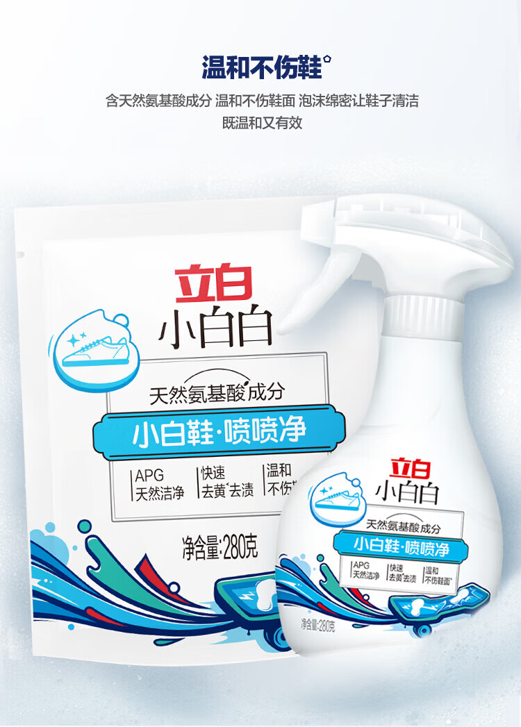 立白小白白小白鞋清洁剂干洗剂 免水洗洗鞋刷鞋神器 去黄去污清洗剂 【天然洁净】小白鞋喷喷净1瓶