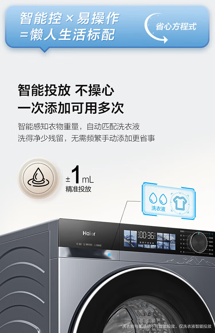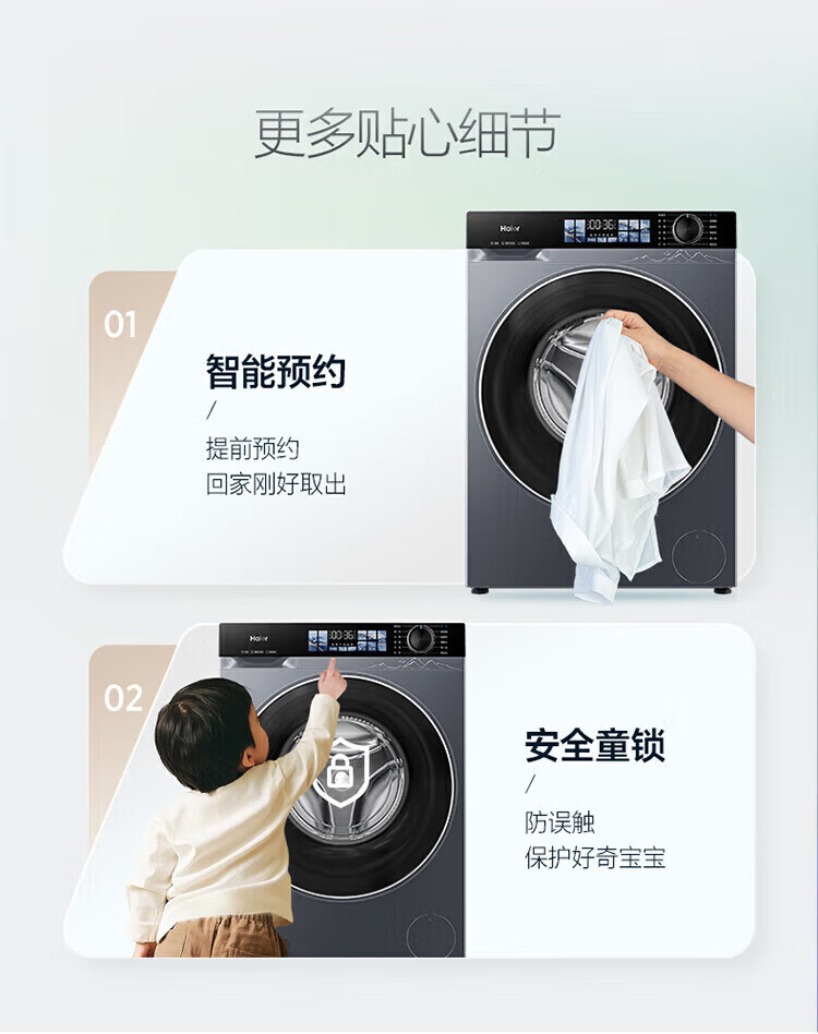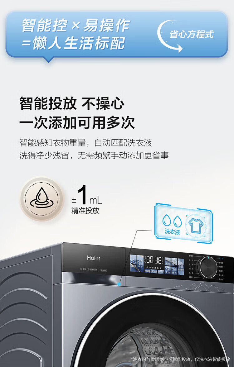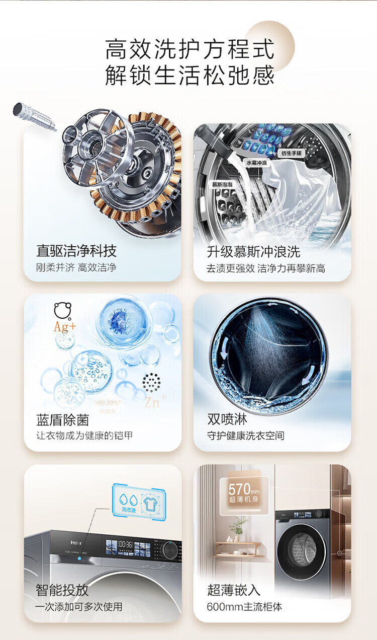 海尔(Haier)云溪4.0滚筒洗衣机全自动10公斤超薄直驱变频滚筒洗烘一体带烘干大容量活水冲浪洗除菌螨 国家补贴 蓝盾除菌+慕斯冲浪洗+智能投放 滚筒洗烘 10kg