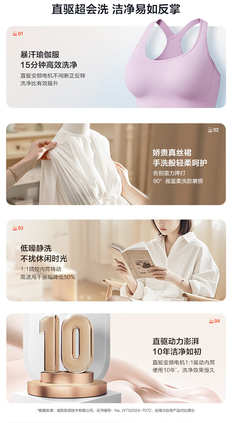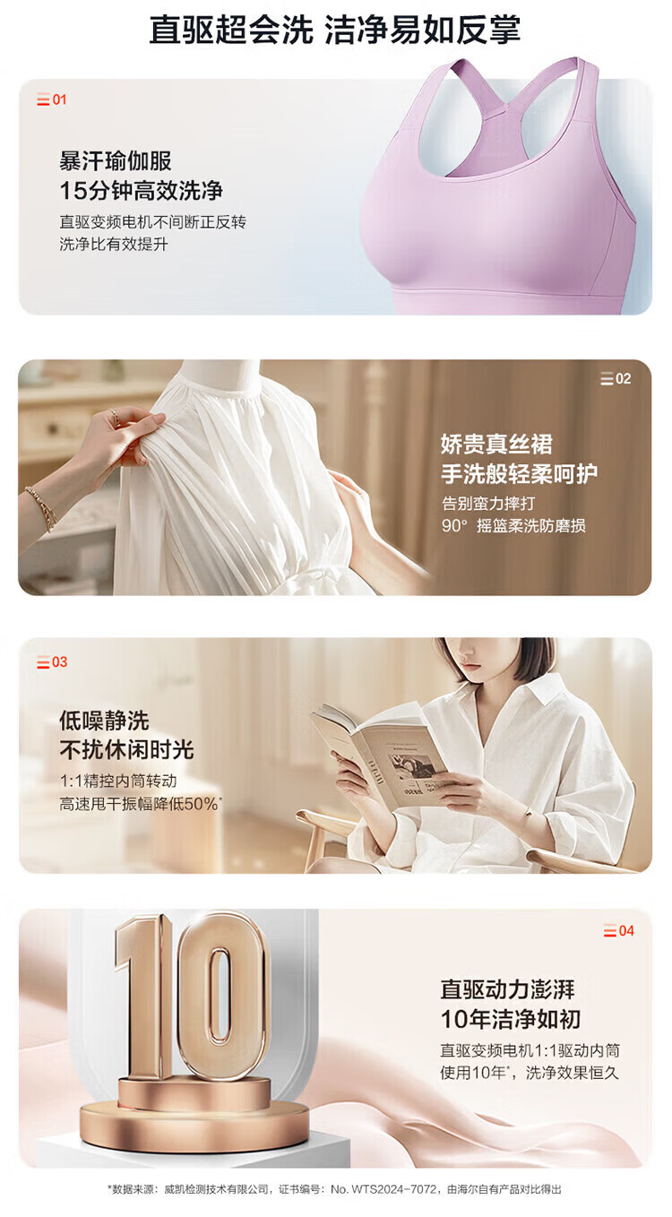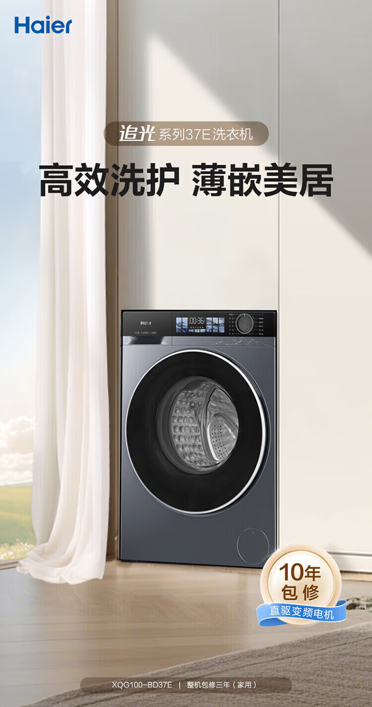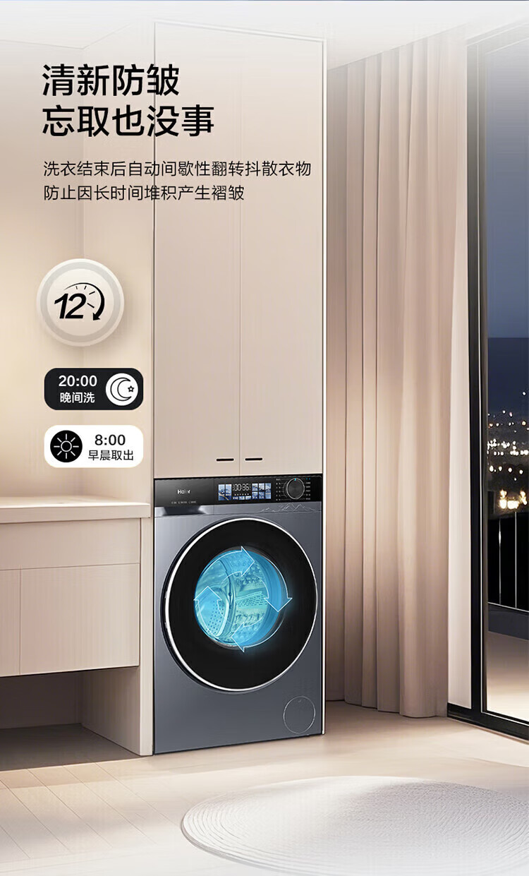 海尔(Haier)云溪4.0滚筒洗衣机全自动10公斤超薄直驱变频滚筒洗烘一体带烘干大容量活水冲浪洗除菌螨 国家补贴 蓝盾除菌+慕斯冲浪洗+智能投放 滚筒洗烘 10kg