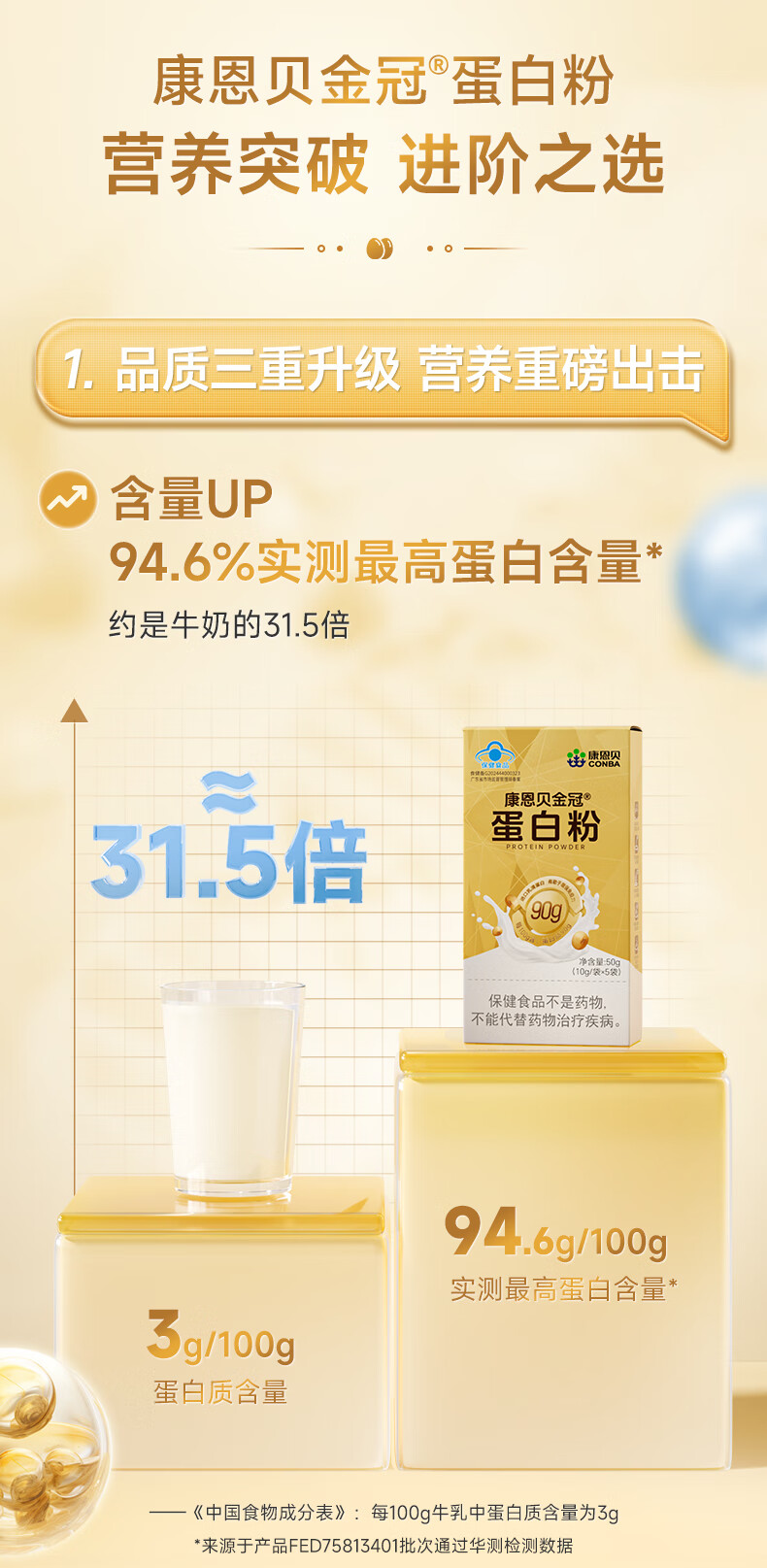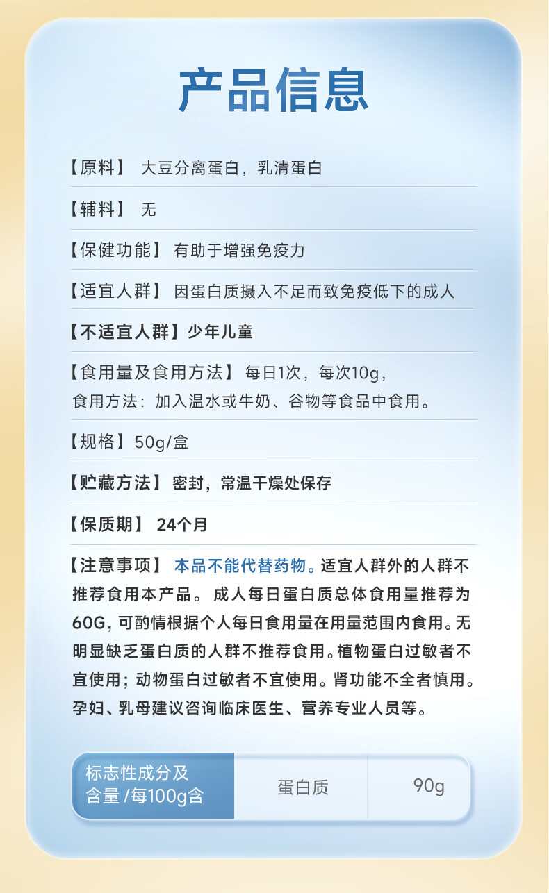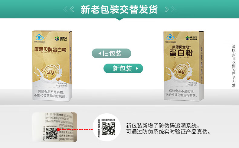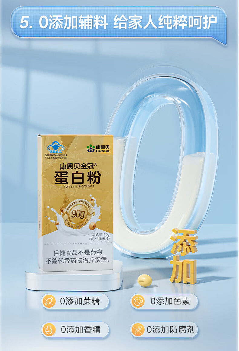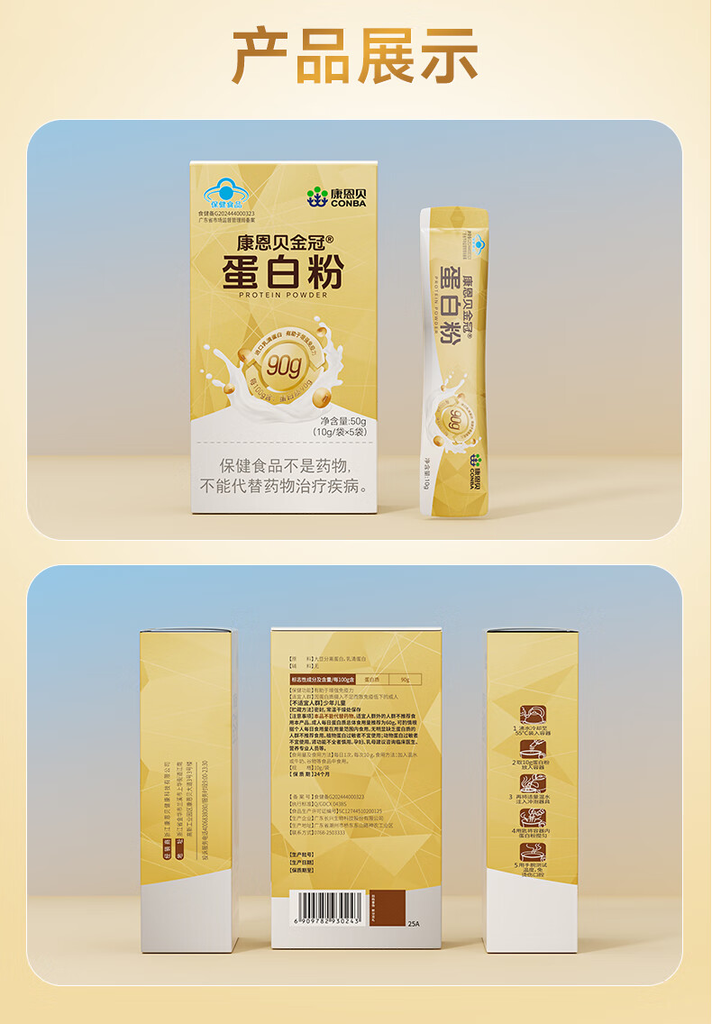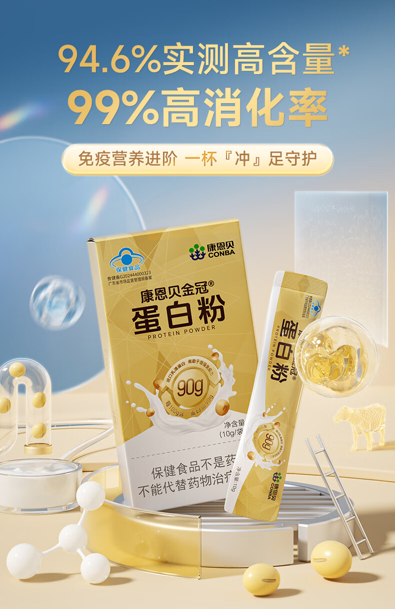 康恩贝金冠蛋白粉50g 乳清蛋白有助于增强免疫力双蛋白成人营养90%含量