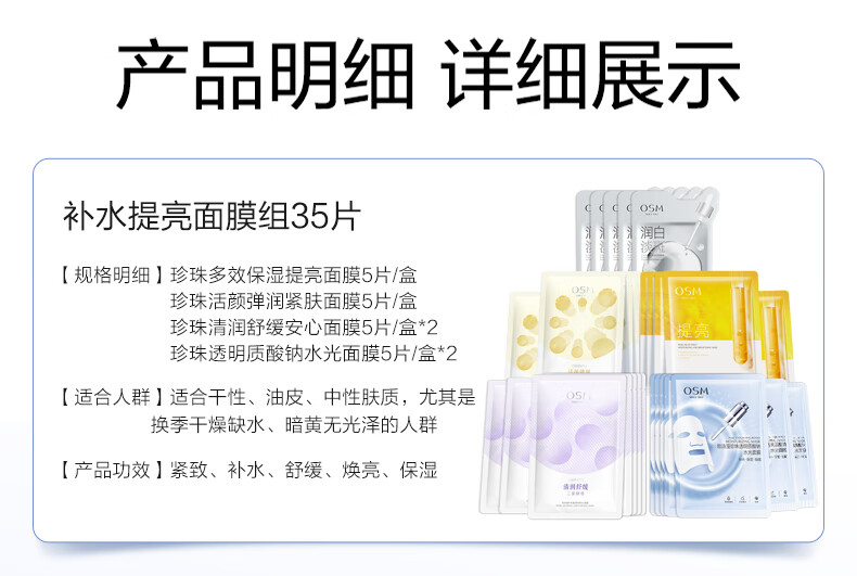 欧诗漫(OSM)面膜组合35片补水提亮保湿舒缓护肤品 生日礼物