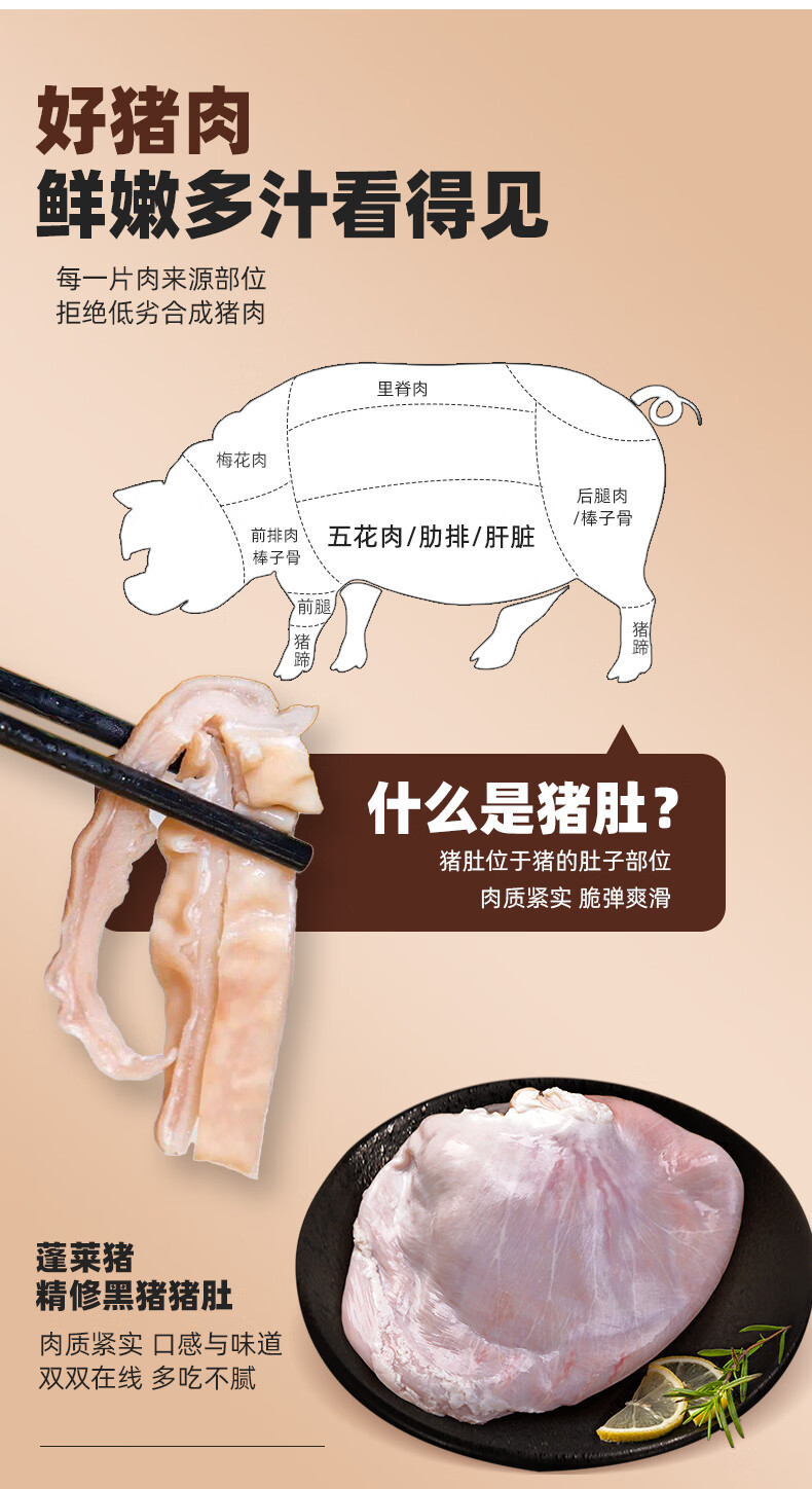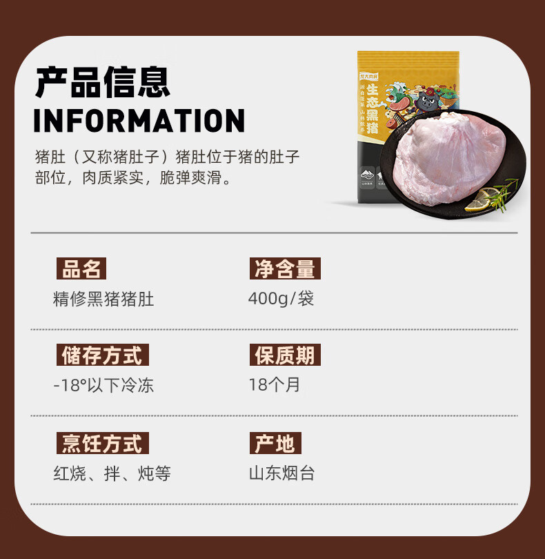 龙大肉食黑猪猪肚400g 蓬莱生态黑猪肉生鲜 猪肚鸡猪肚丸猪肚烧烤食材